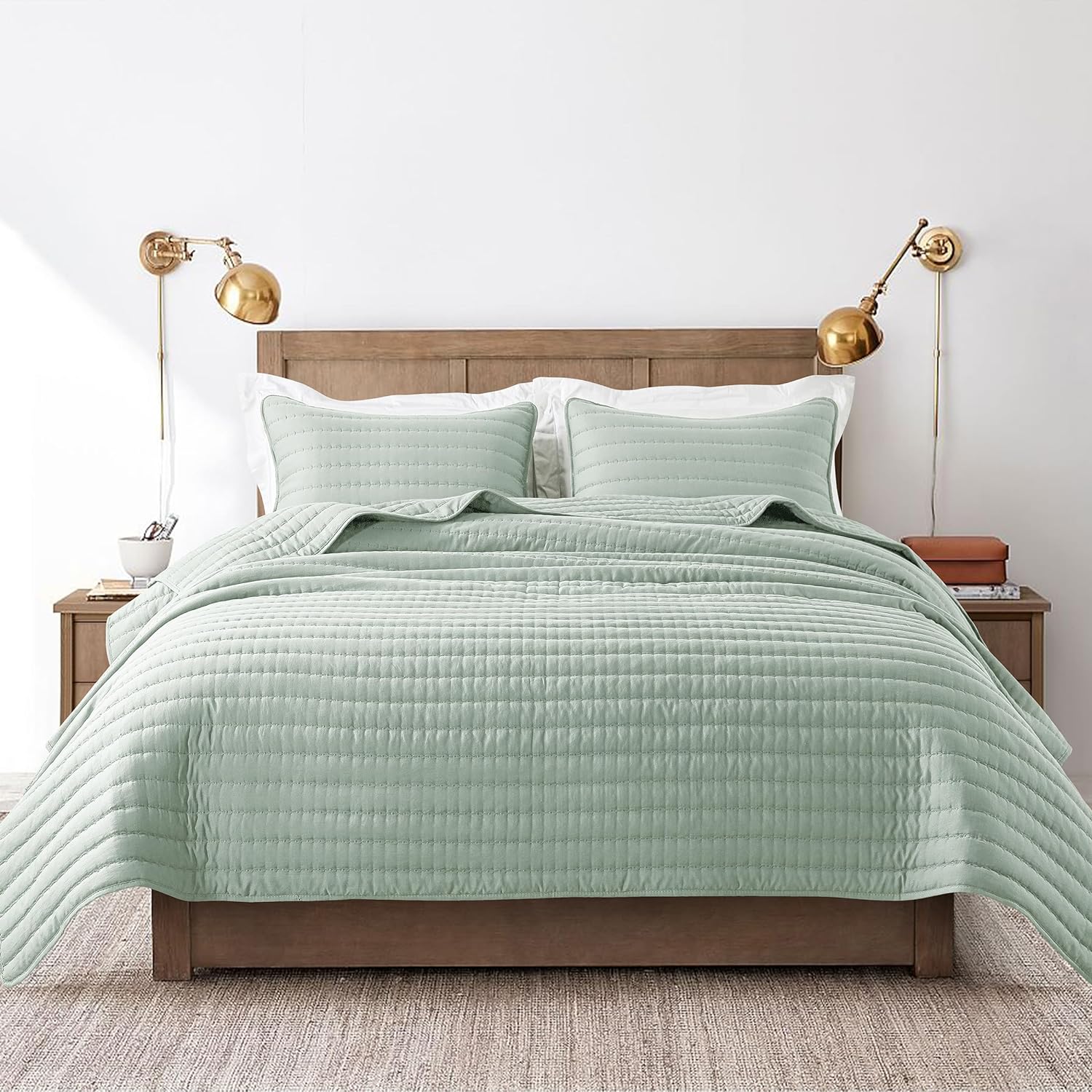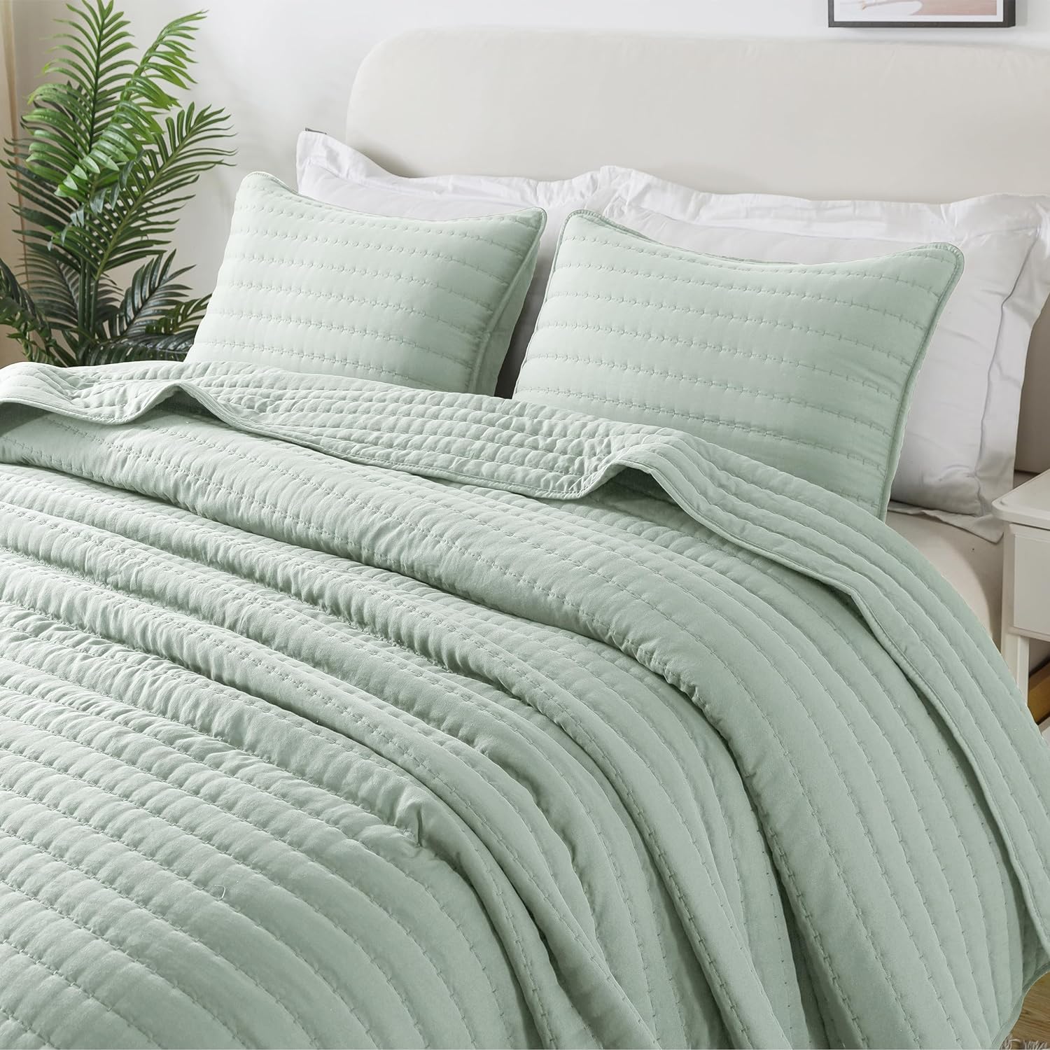 Green 100% Cotton Quilt King Size Bedding Sets with Pillow Shams, Olive Lightweight Soft Bedspread Coverlet, Sage Quilted Comforter Bed Cover for All Season, 3 Pieces, 106x96 inches