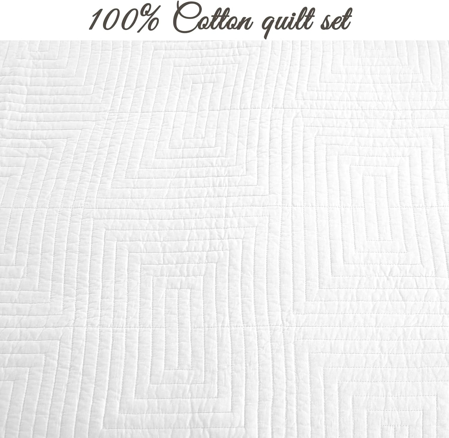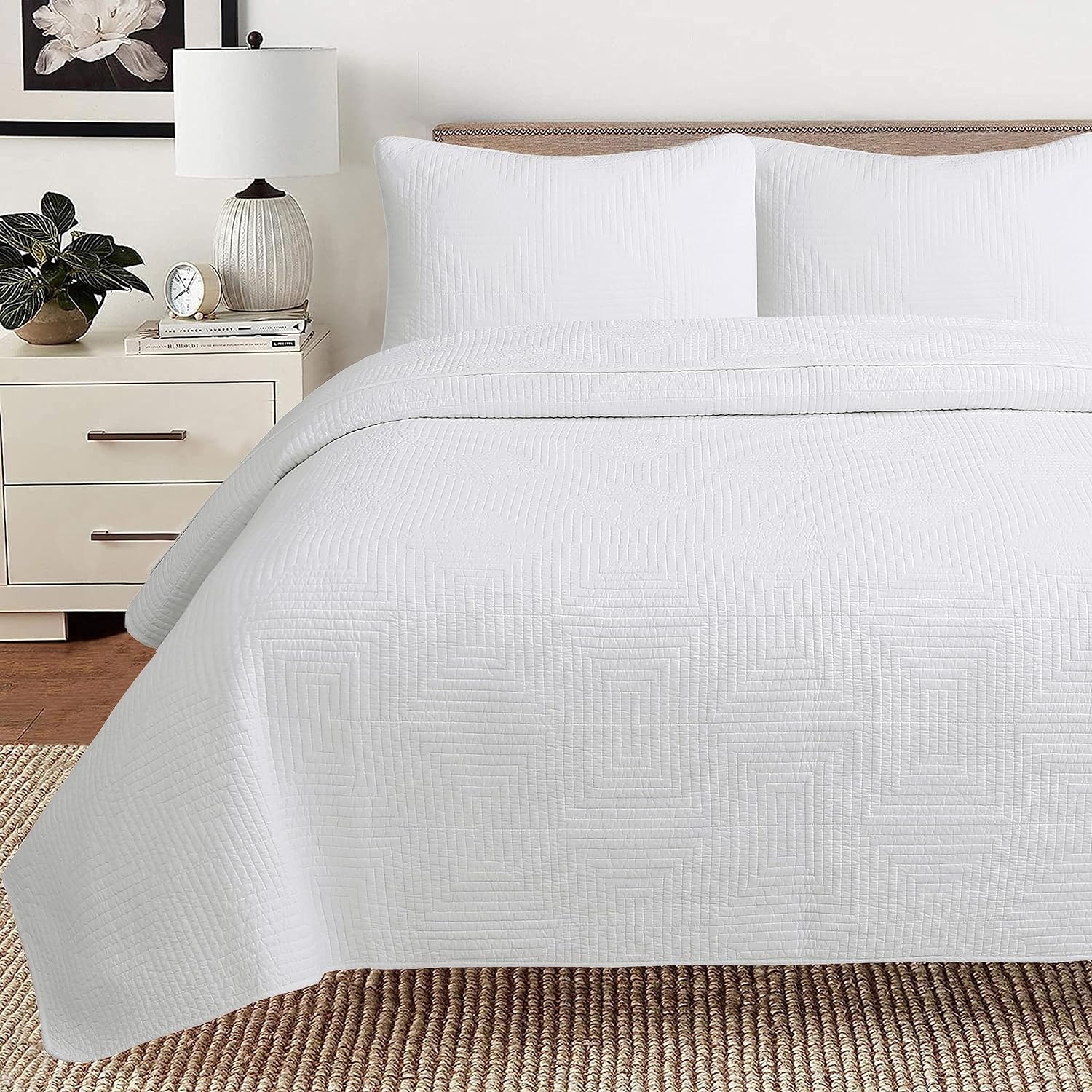 Maple&Stone White Quilt Set Queen Size, Lightweight Bedspread Ultrasonic Chevron Pattern Light Coverlet for All Season Comforter Bedding Decor - 3 Piece Full Bed Cover Sets