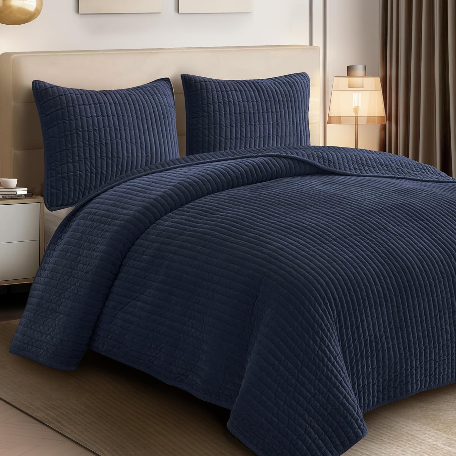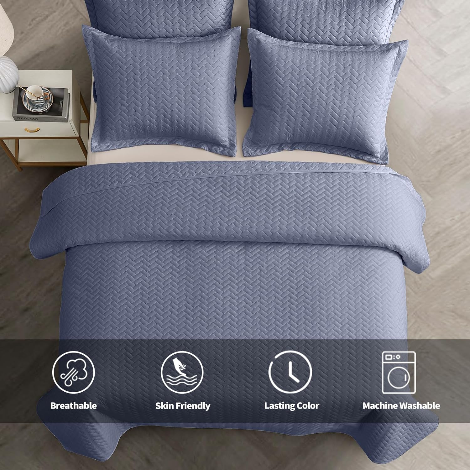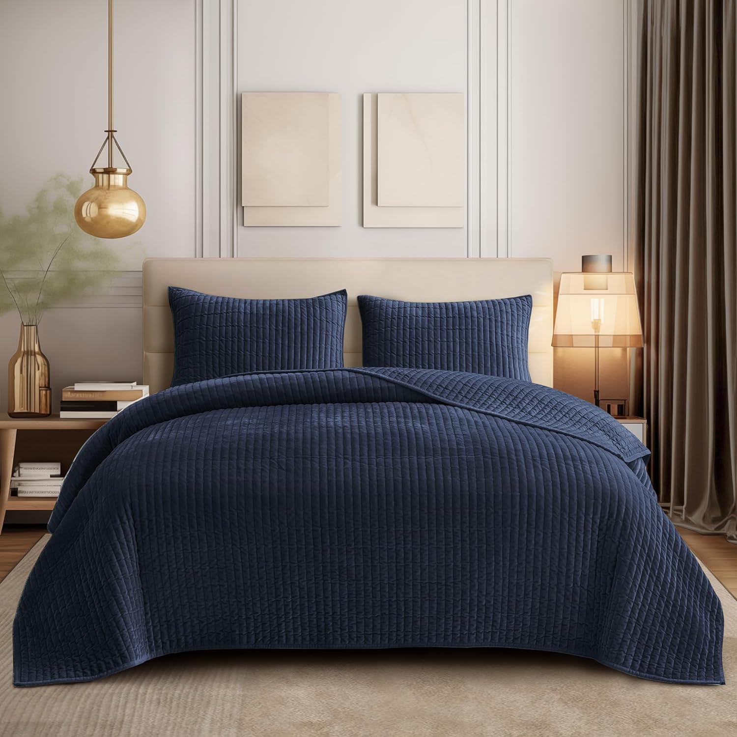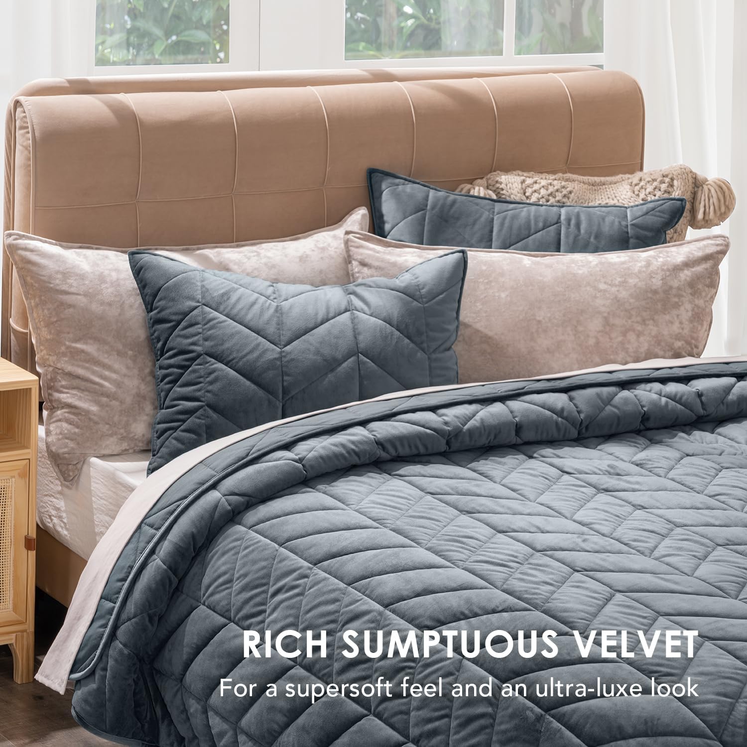 EVERGRACE 3 Pieces Luxurious Velvet King Quilts, Ultra Soft Lightweight Velvet Comforter Set, Matelasse Oversized Bedspread Coverlet for All Season with 2 Shams, Stormy Blue, 108"x96"
