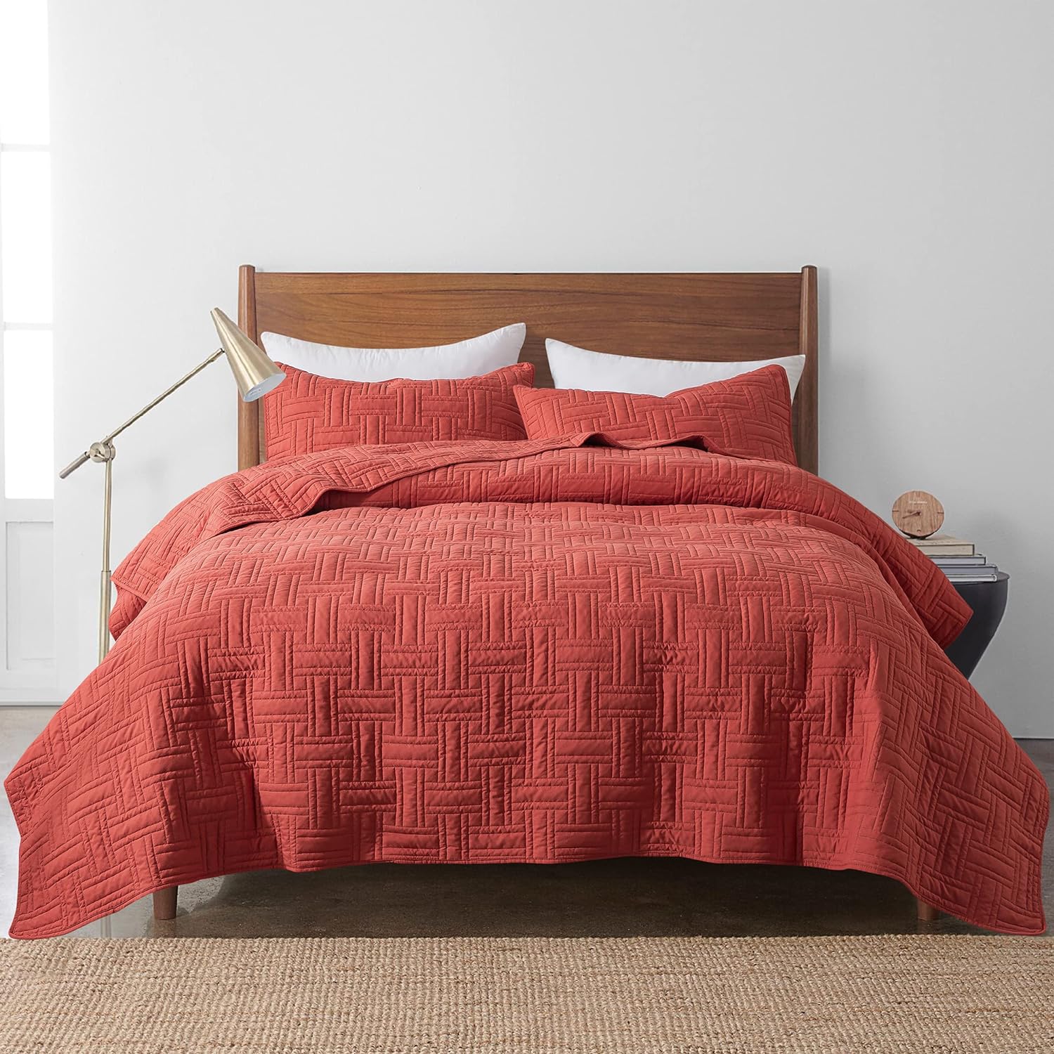 Genuine Patchwork Quilt Sets 100% Cotton Queen Size Bedspread Reversible Vintage Plaid Floral Red Coverlet Bedding Sets 3 Piece