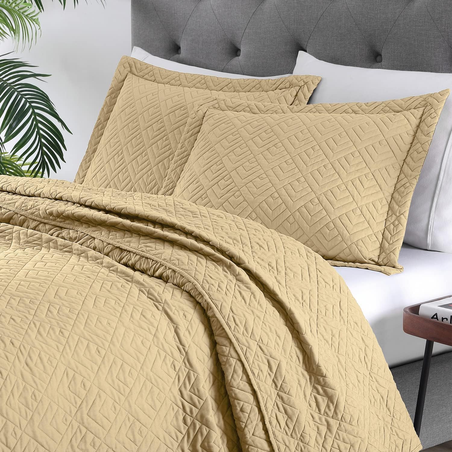 Bedsure Queen Quilt Bedding Set - Lightweight Summer Quilt Full/Queen - Beige Bedspreads Queen Size - Bedding Coverlets for All Seasons (Includes 1 Quilt, 2 Pillow Shams)