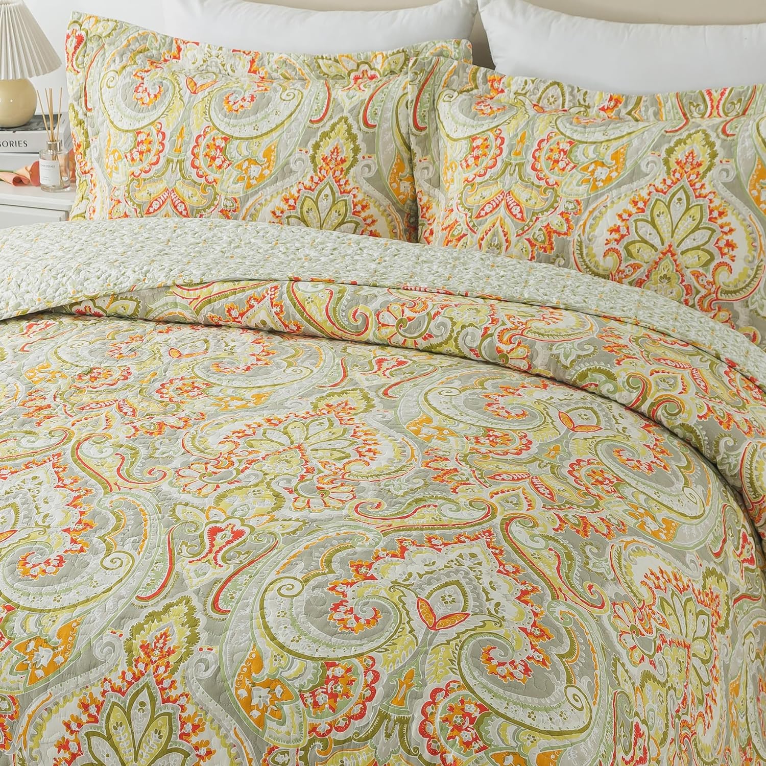 JANZAA Boho Bedding Bedspreads Queen Size,3 PCS Bohemian Quilt Set with Geometric Printed for All Season(Two Pillow Cases)