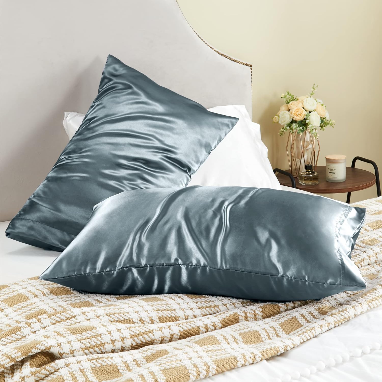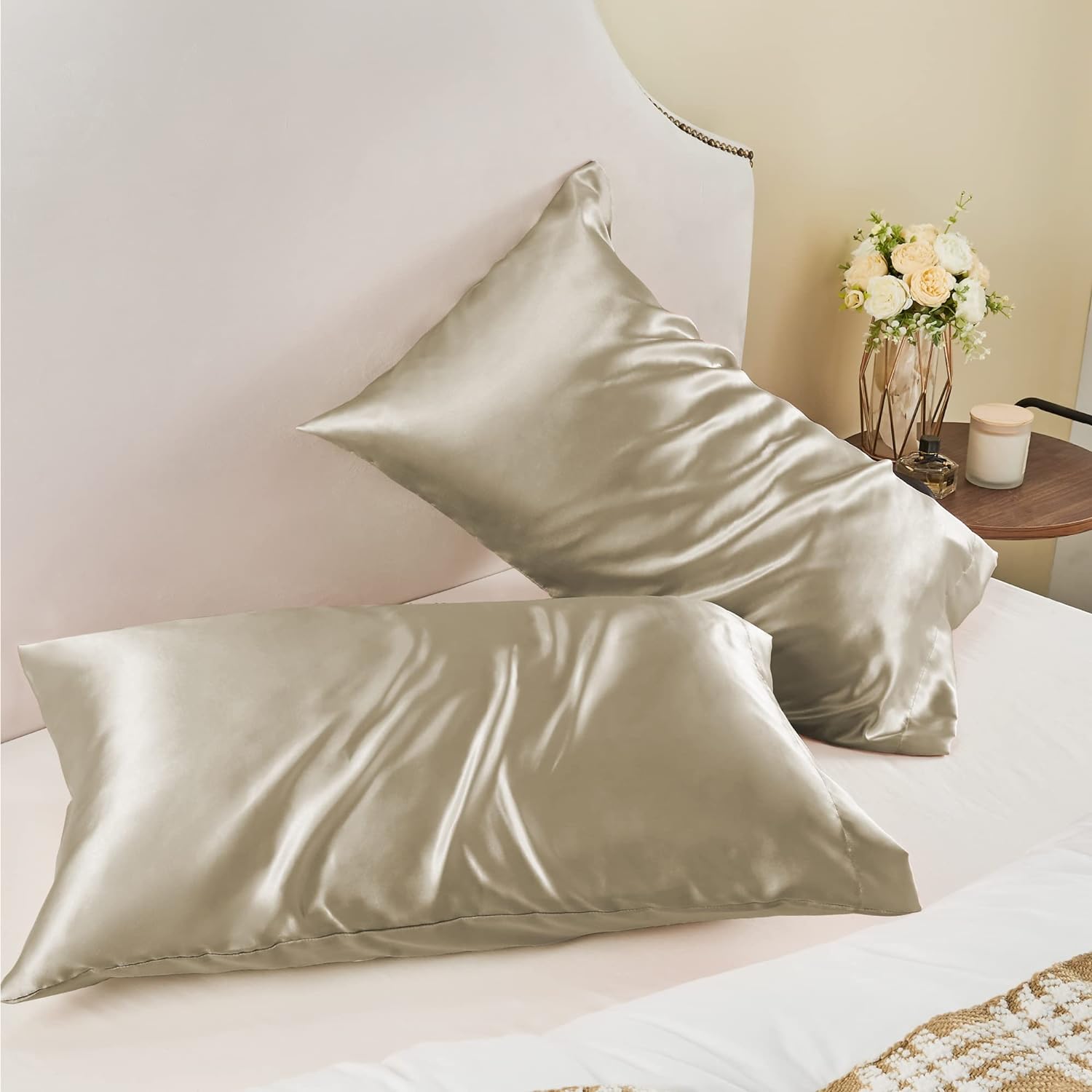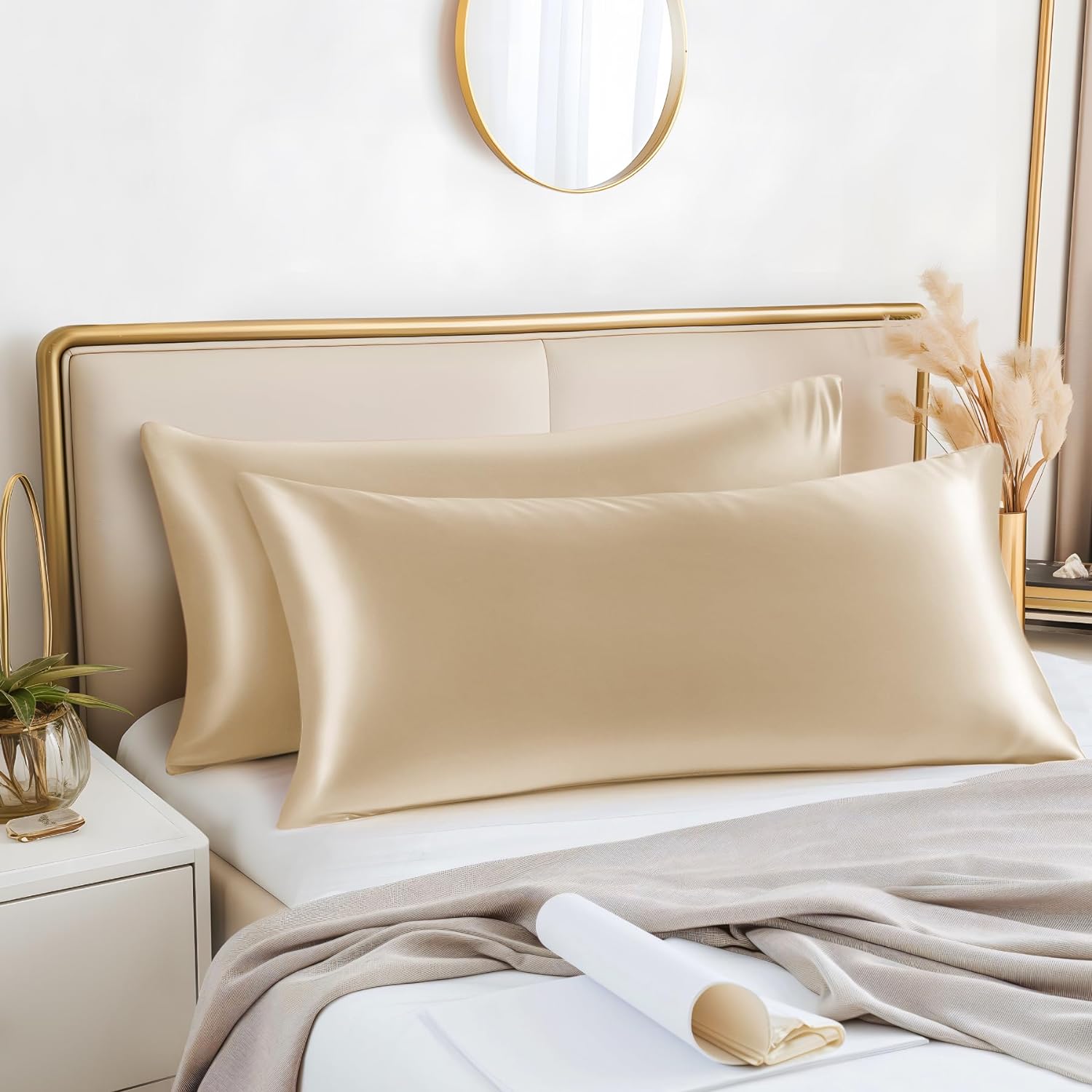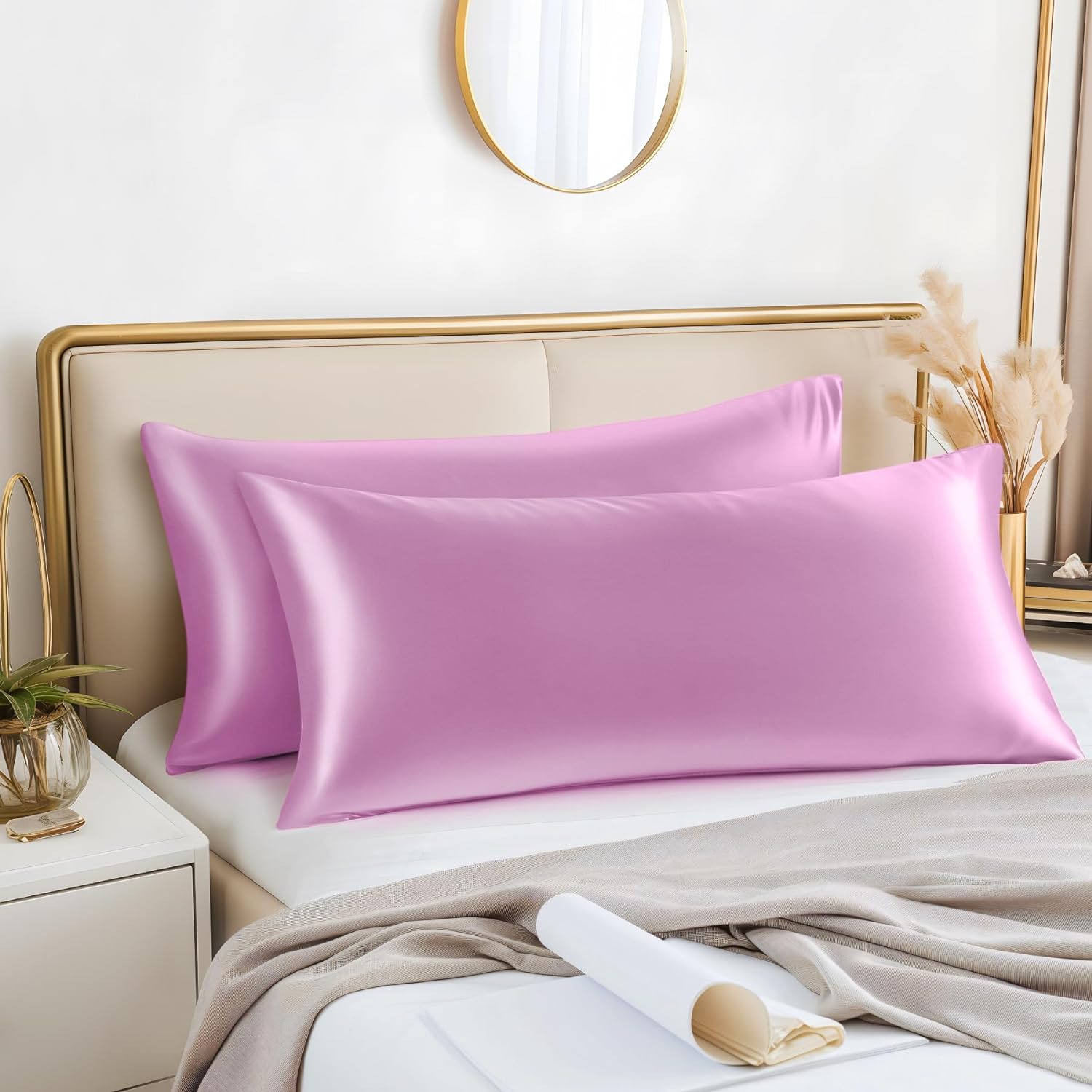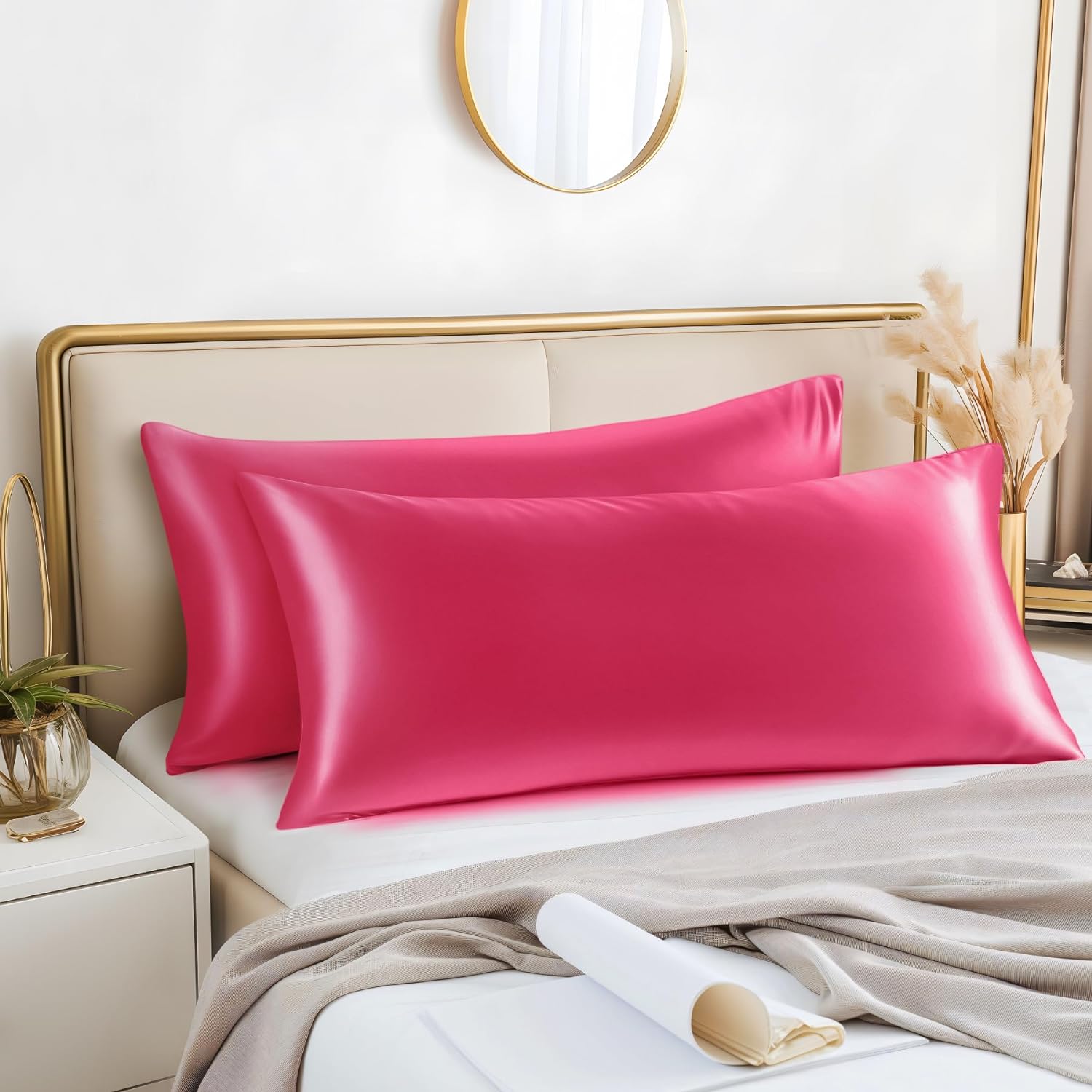 - 【Silky Soft Satin】: BEDELITE Satin Pillowcases are made of 100% satin polyester fabric for optimal softness and easy care used is as soft as a silk pillowcase. High-quality satin is more sturdy than silk pillowcases at a reasonable price - Glorious and luxurious satin pillowcase provides the smooth and resilient feeling to help you establish a sound sleep all night.