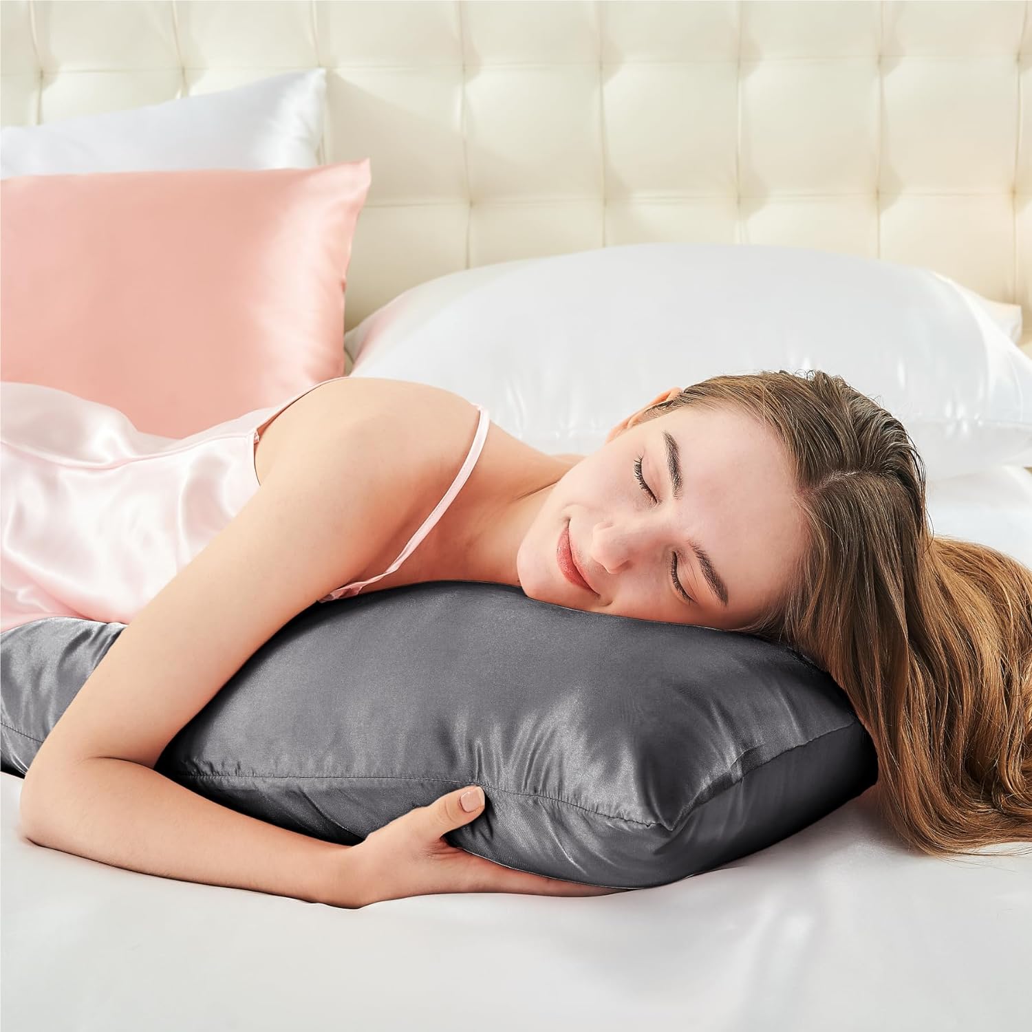 - 【The Easiest Way to Keep Beautiful Hairstyle】: BEDELITE Satin Pillowcase creates less friction for your curly hair and reduces hair breakage than sleeping on cotton pillowcases. She will not absorb moisture to help retain your shiny hair, perfect for curly hair. Sleep on satin pillowcases to keep your hair from turning into a bird's nest, NO KNOTS in the morning.