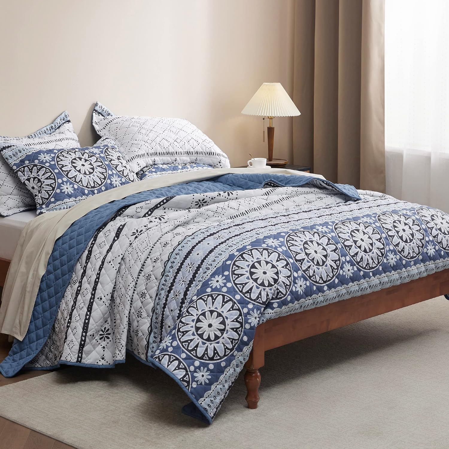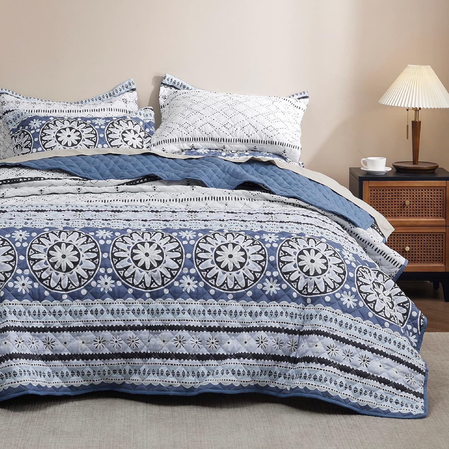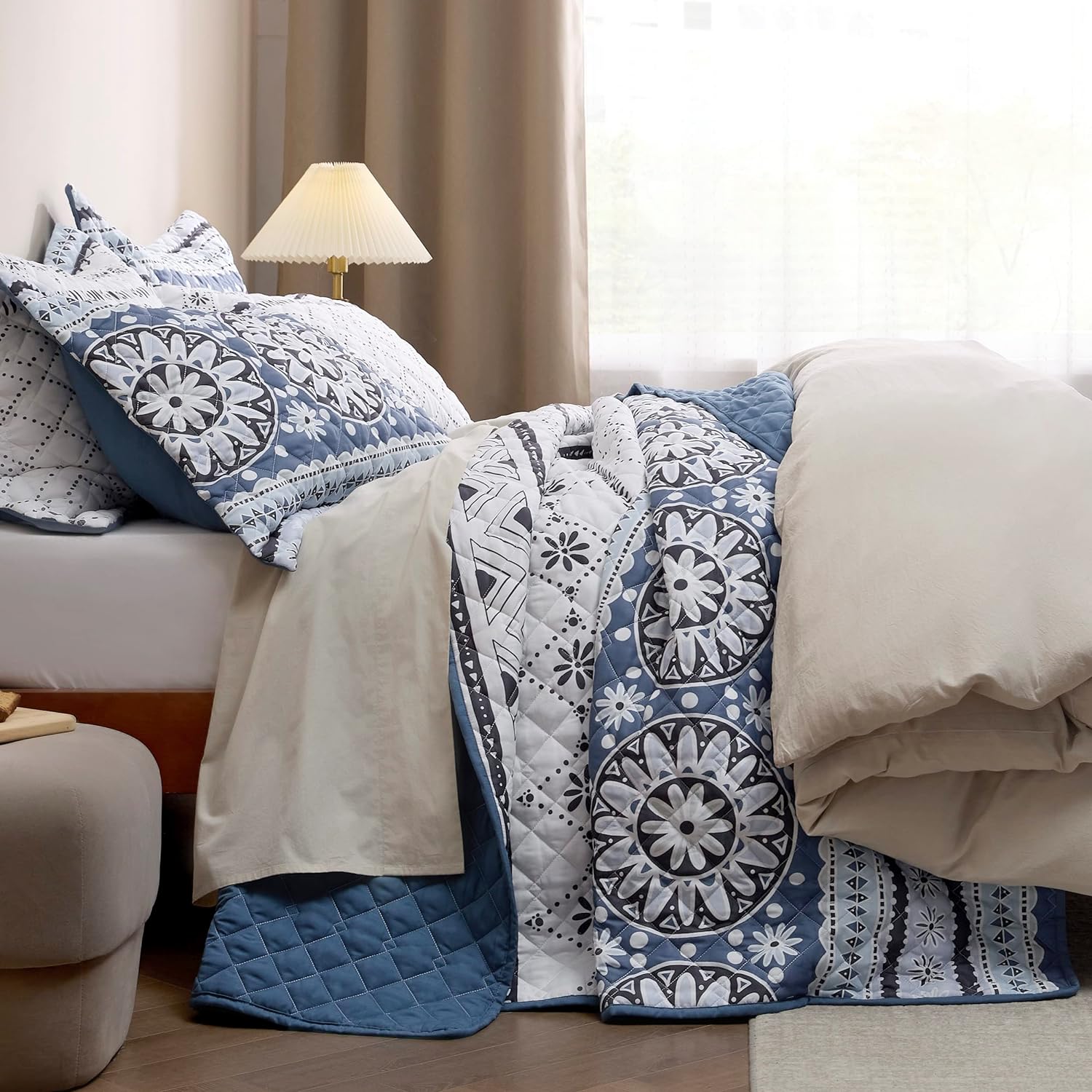 - Enhanced Durability: This premium quality quilt set is machine washable, featuring neat stitching construction that ensures a stronger connection at the seams and prevents the filling from shifting. The unique dyeing technique brings out the colors and prevents them from fading.