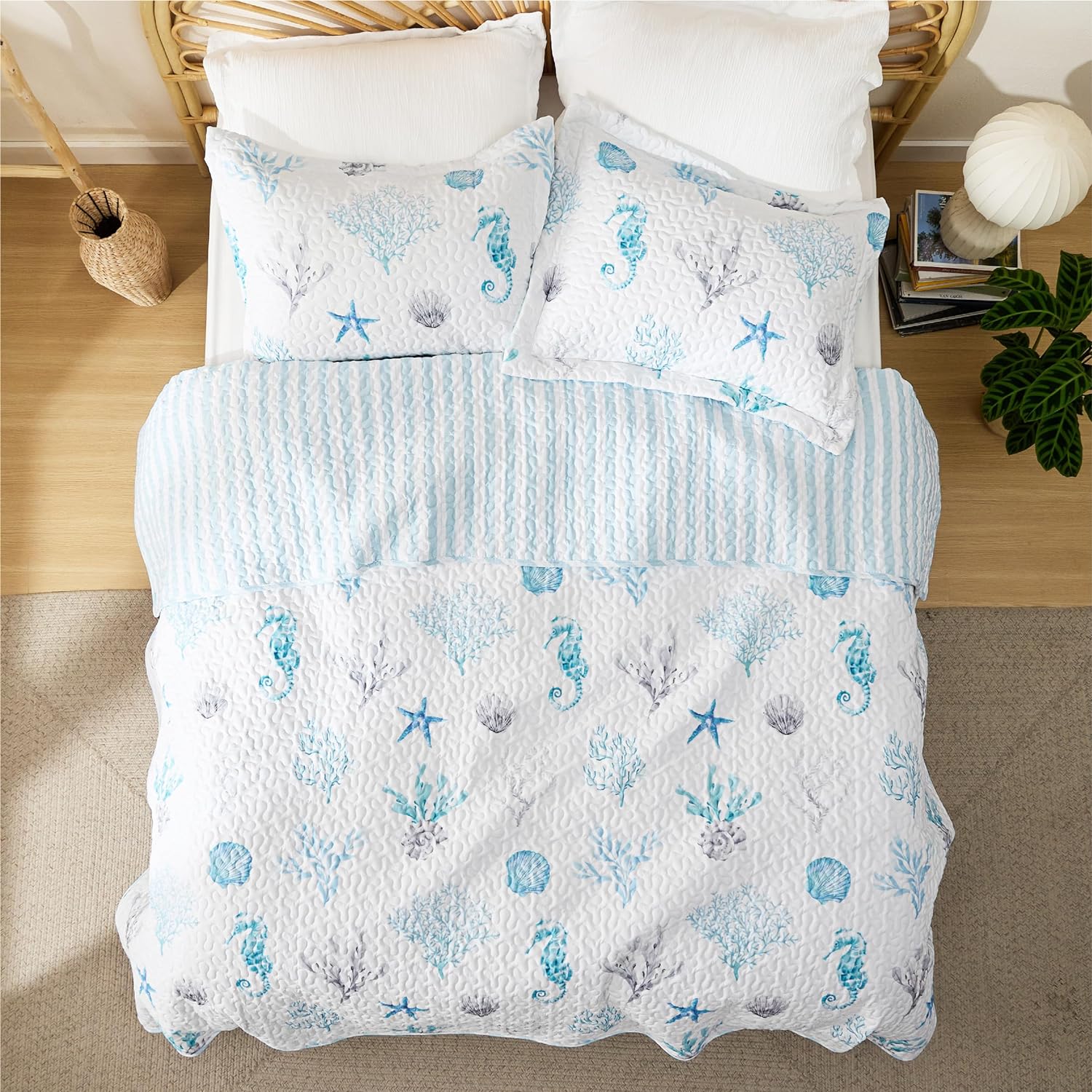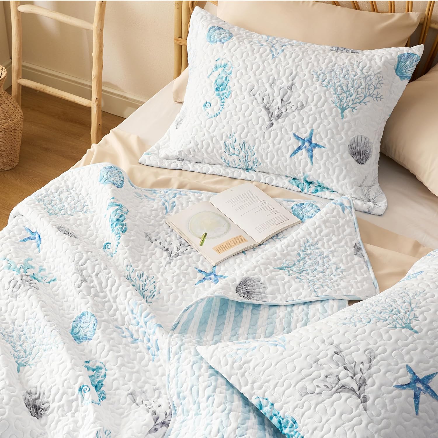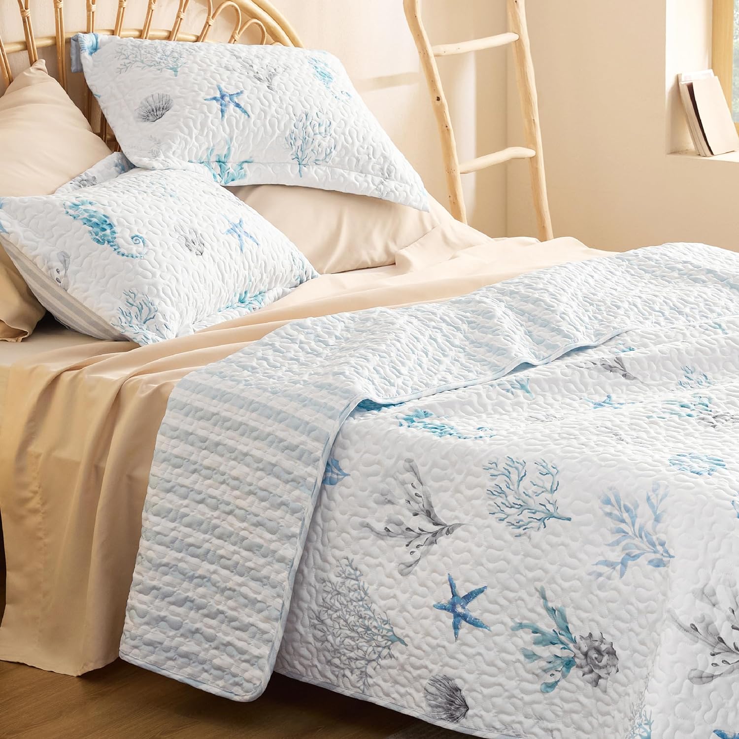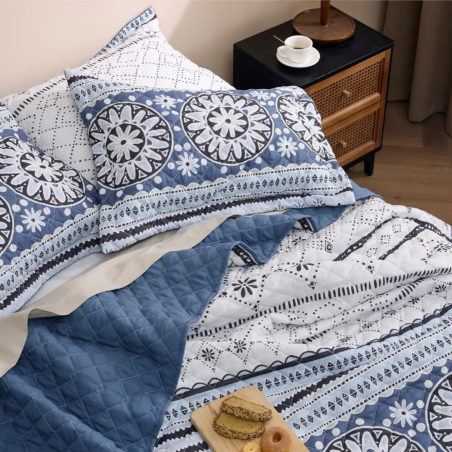 - Enhanced Durability: This premium quality quilt set is machine washable, featuring neat stitching construction that ensures a stronger connection at the seams and prevents the filling from shifting. The unique dyeing technique brings out the colors and prevents them from fading.