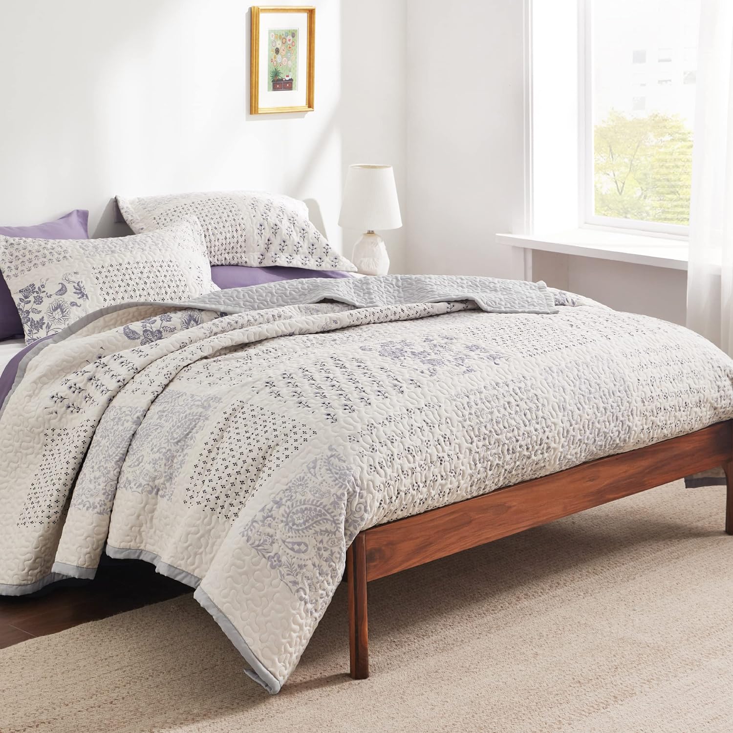 - All Season Use: This farmhouse quilt set is suitable for year-round use. The heavier-than-average microfiber filling covered in the 85 GSM brushed polyester shell gives this quilt the right amount of weight. This warm yet lightweight quilt set is suitable for hot summer eves and delivers essential supplementary warmth during cold winter days.