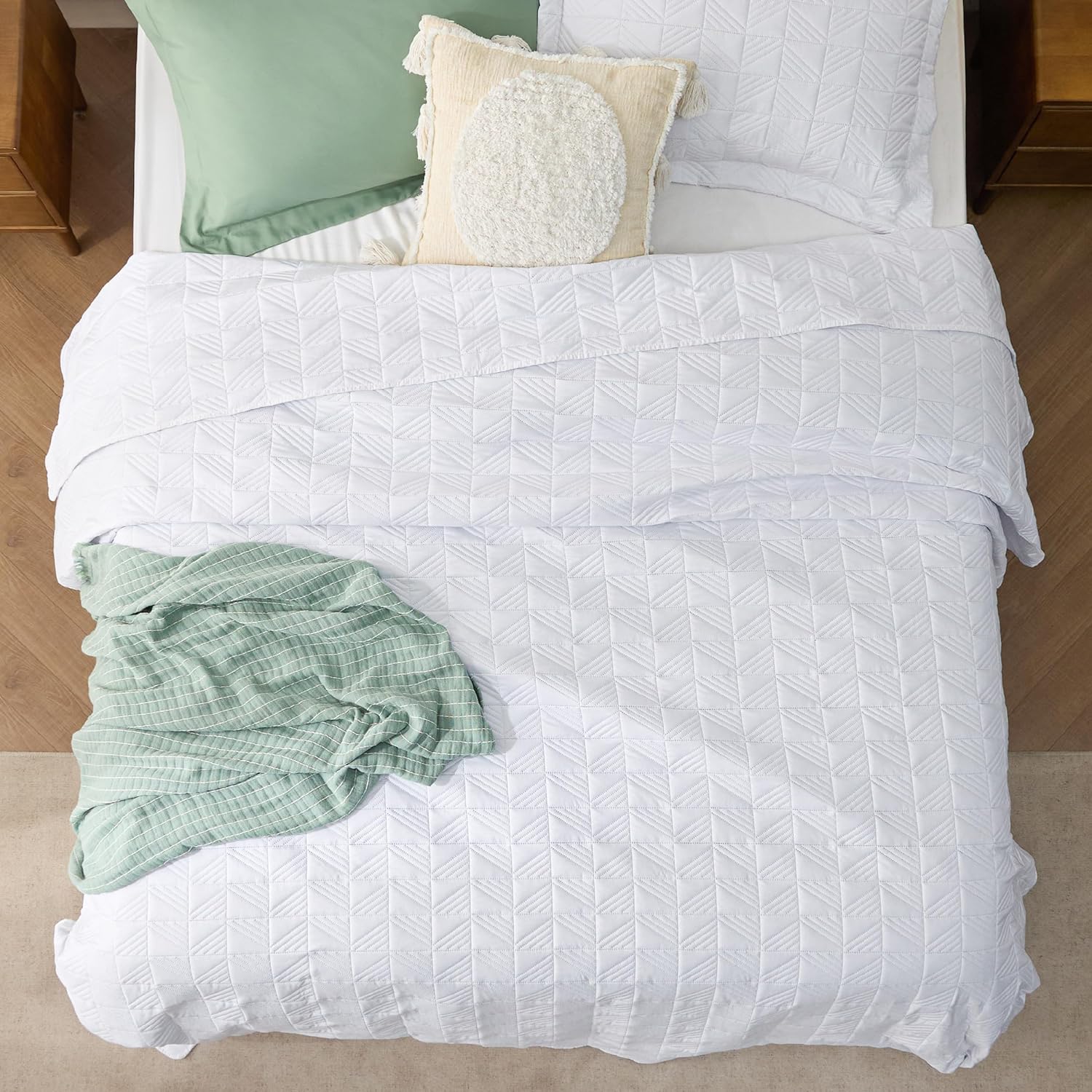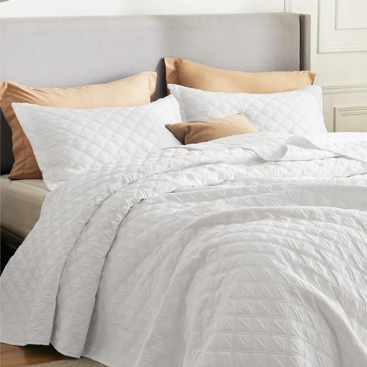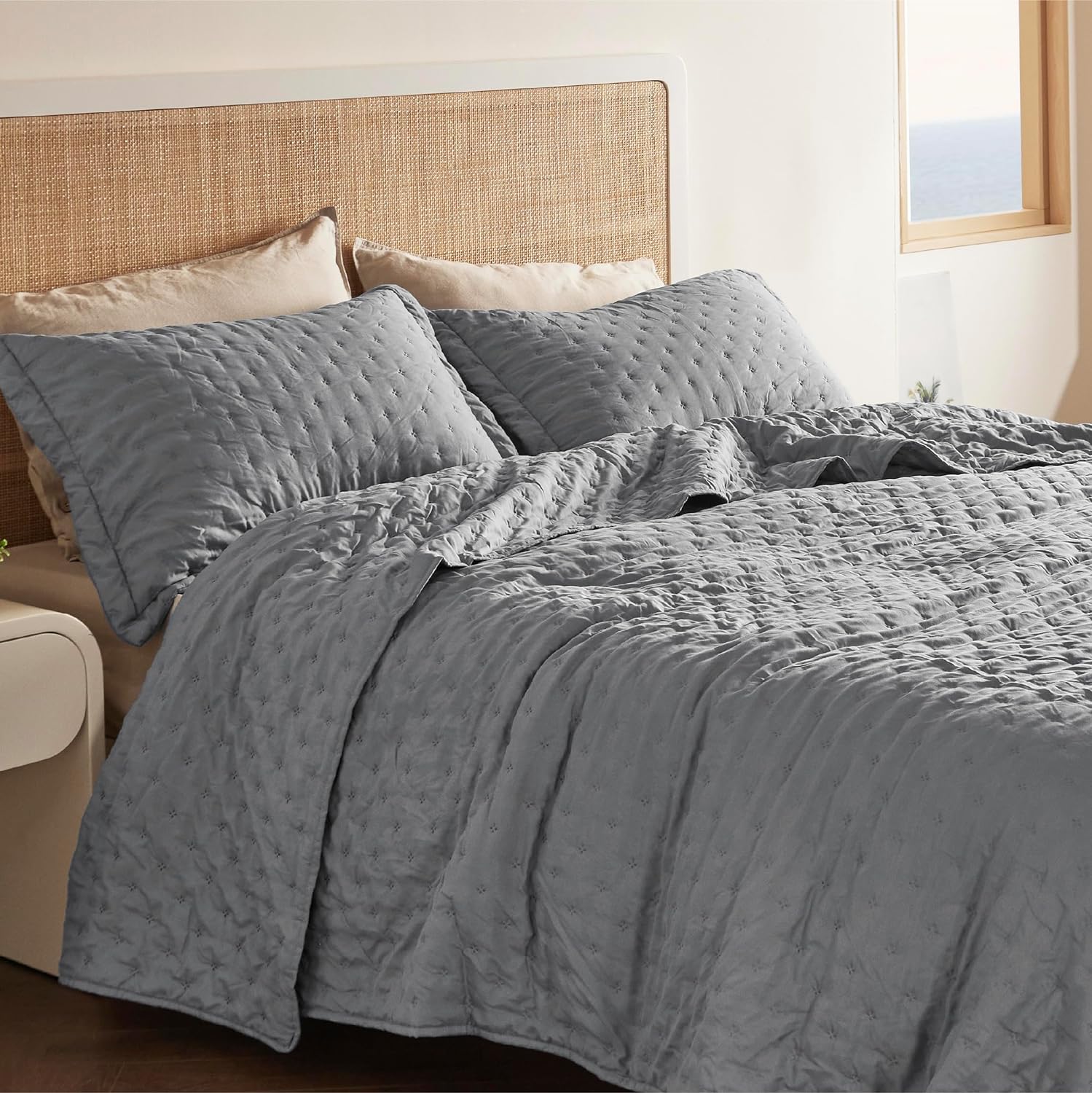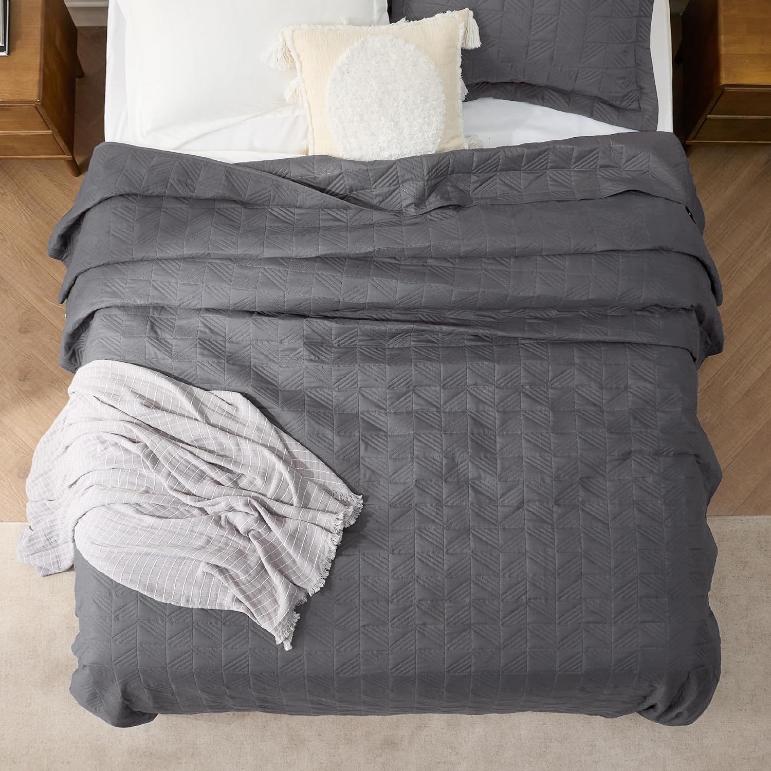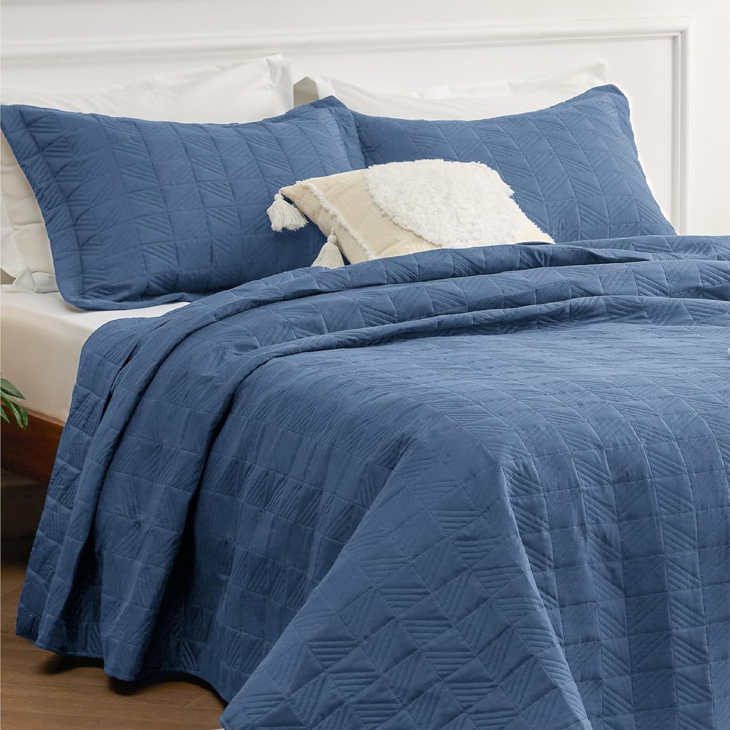 - Elevated Classic Texture: This quilt set embraces a classic and minimalist aesthetic, adding personality and visual highlight to your sleep haven with a unique embossed pattern.