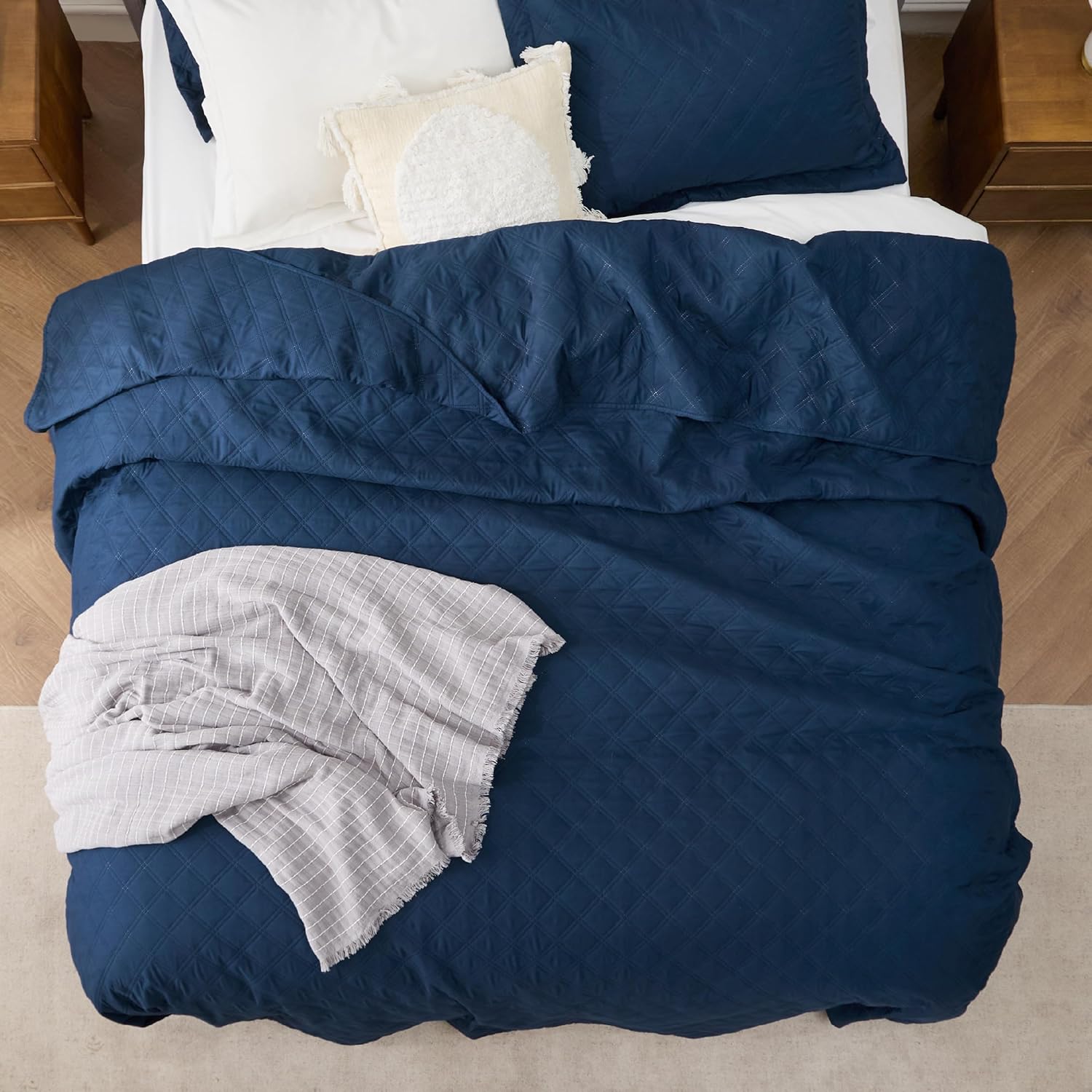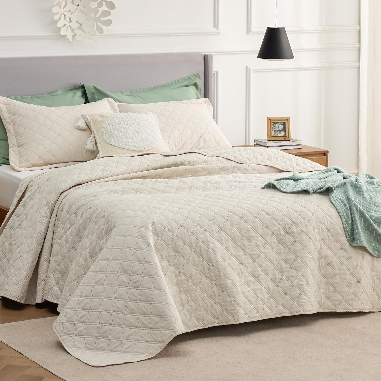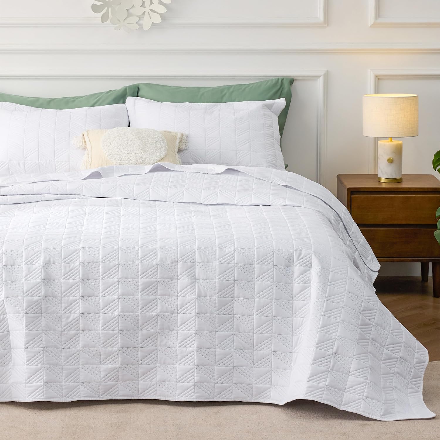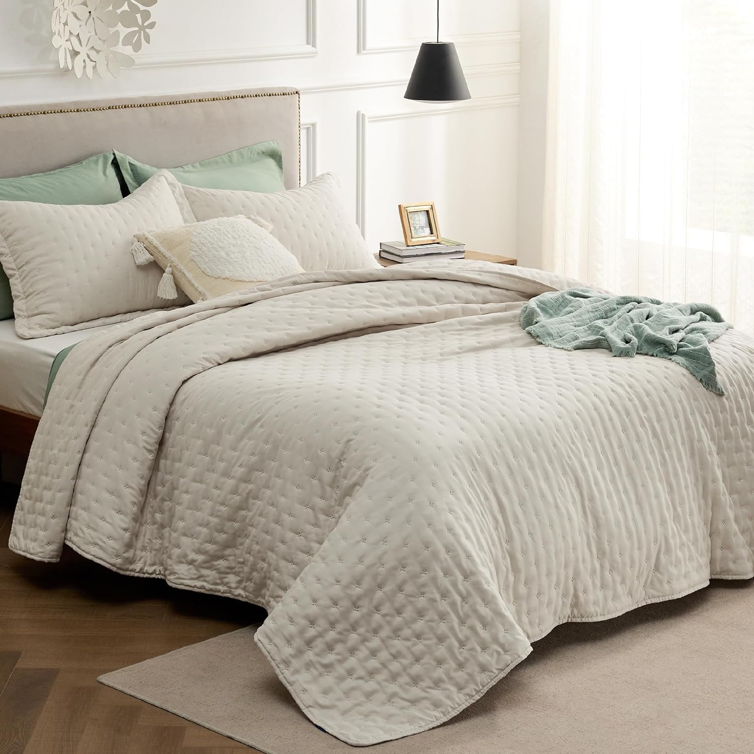 - Elevated Classic Texture: This quilt set embraces a classic and minimalist aesthetic, adding personality and visual highlight to your sleep haven with a unique embossed pattern.