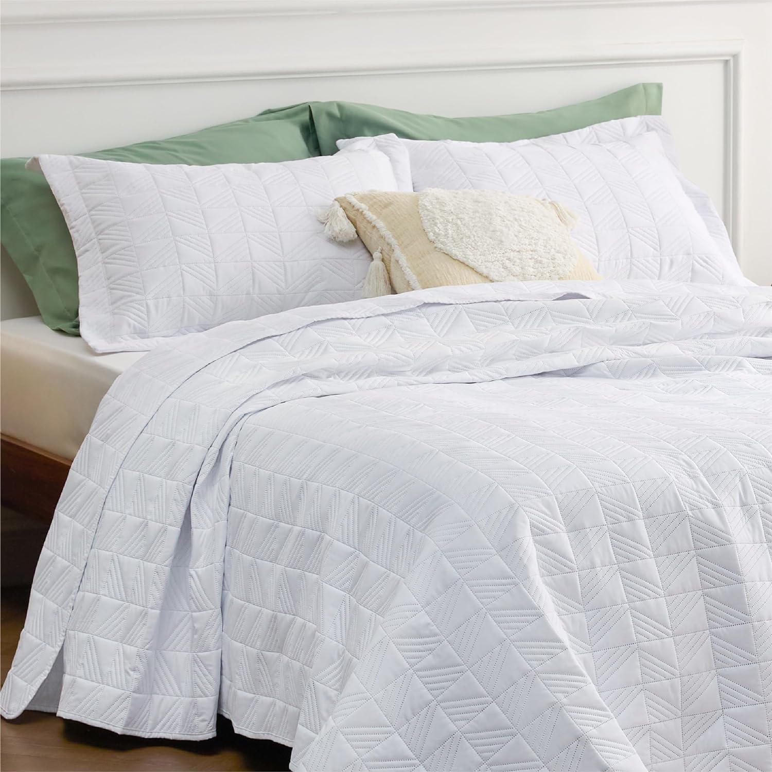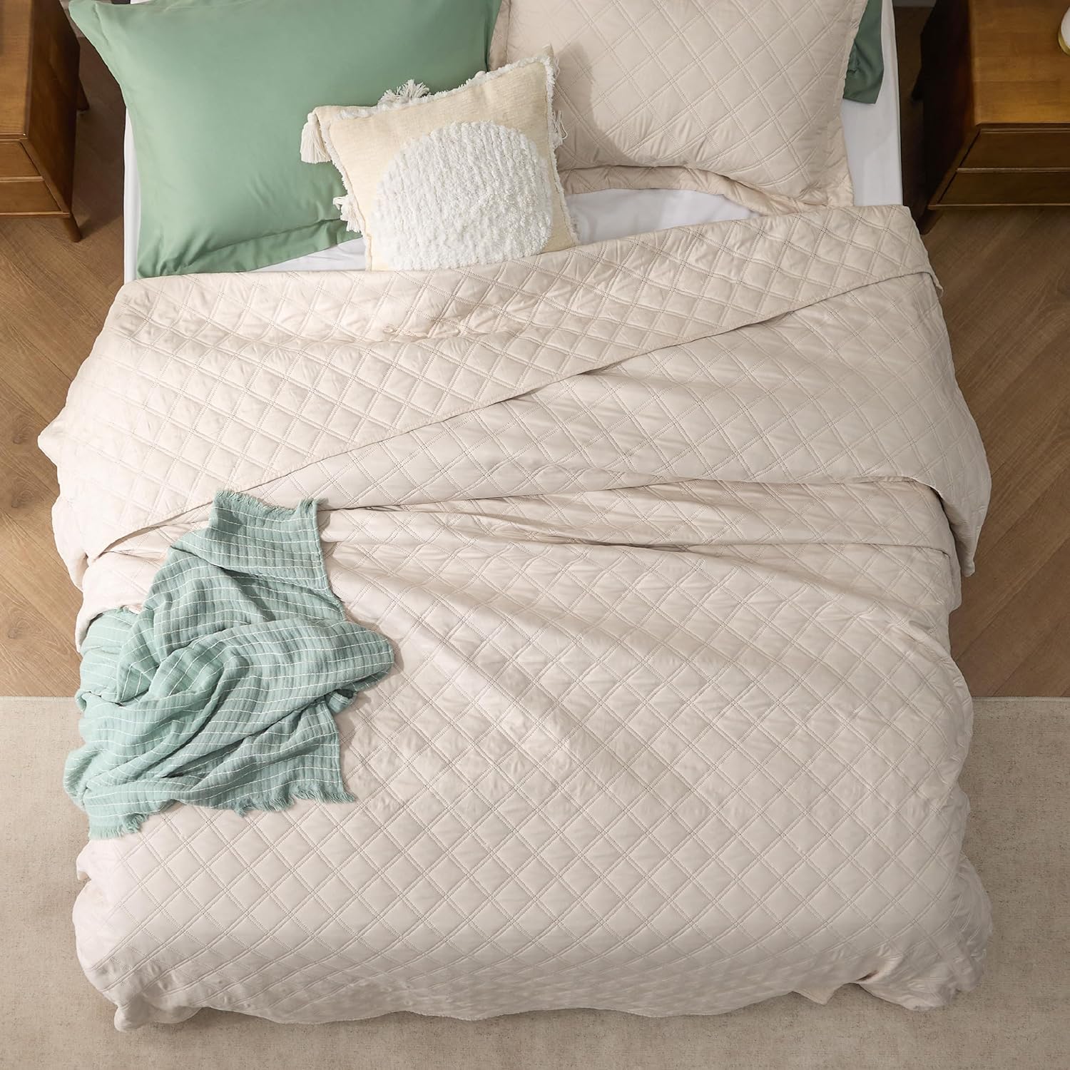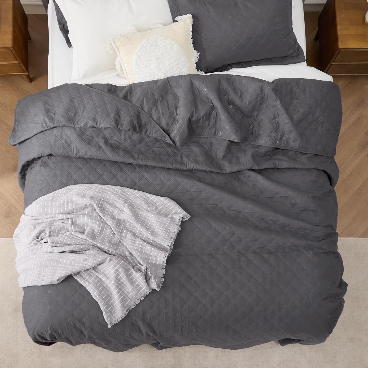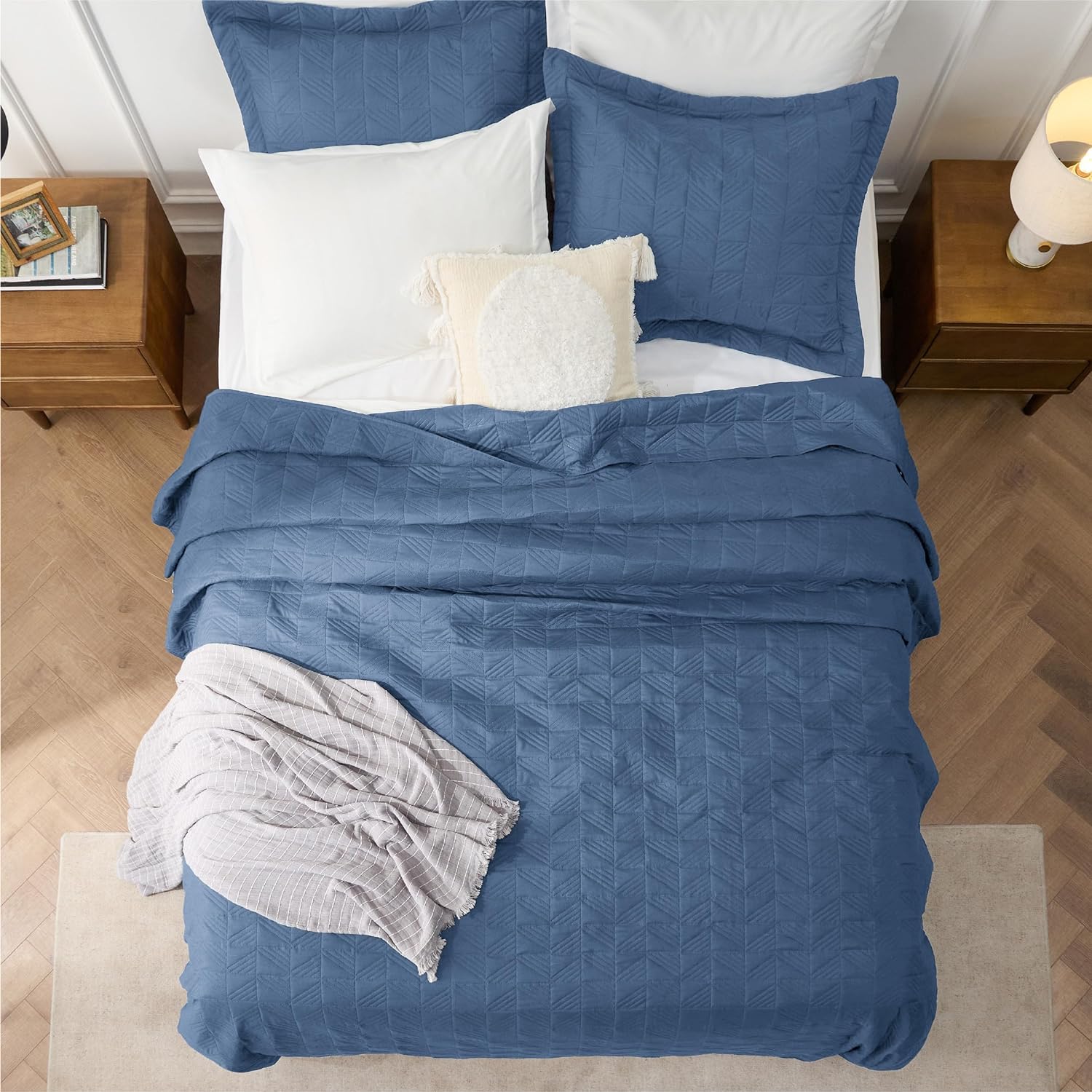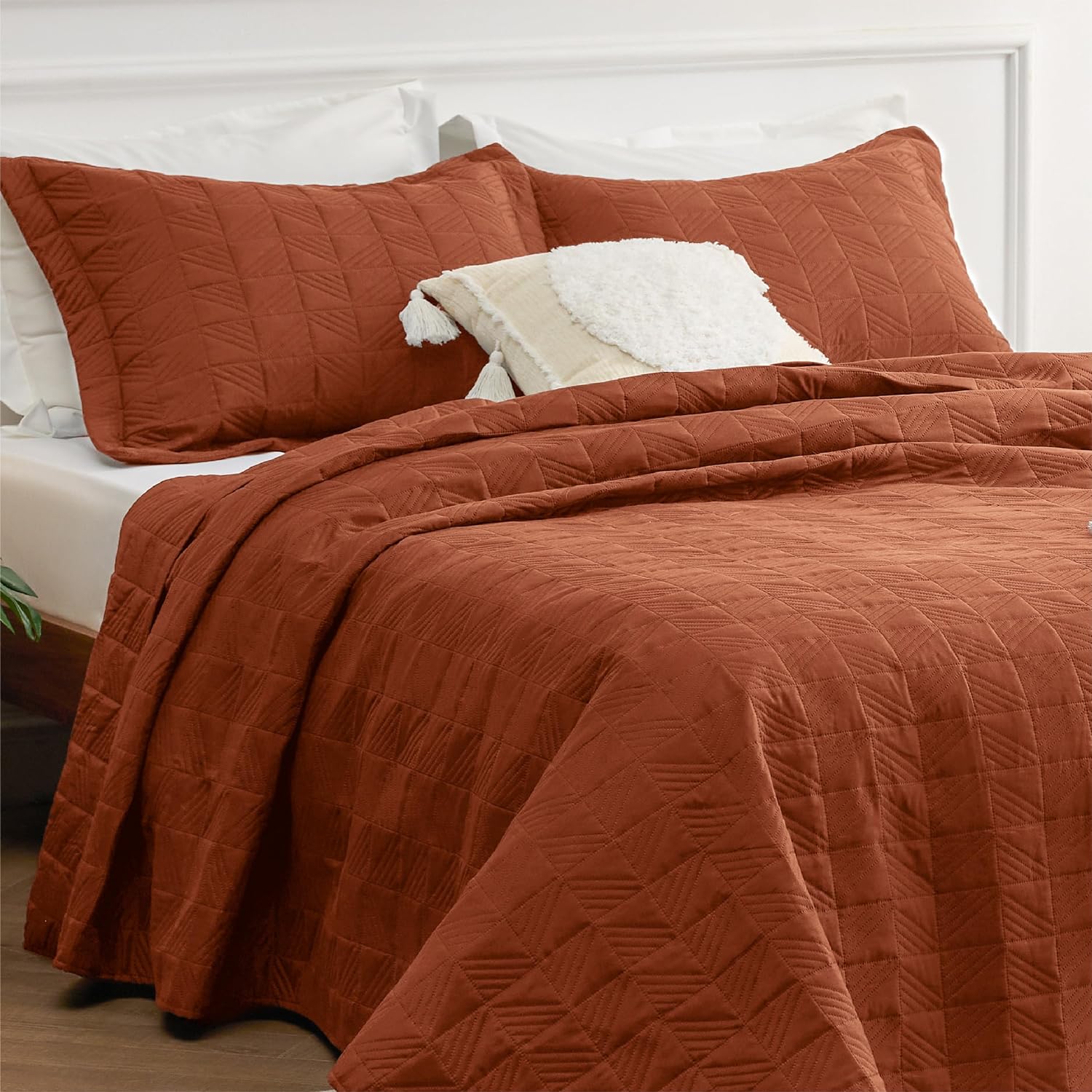 - Elevated Classic Texture: This quilt set embraces a classic and minimalist aesthetic, adding personality and visual highlight to your sleep haven with a unique embossed pattern.