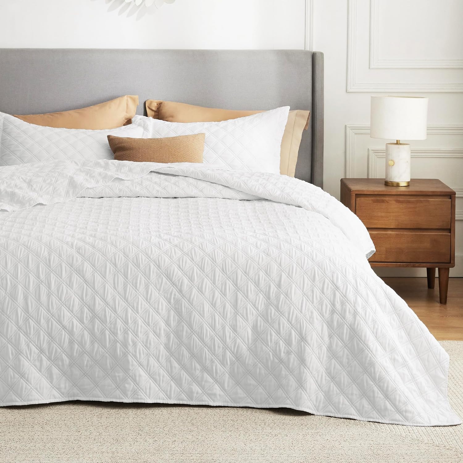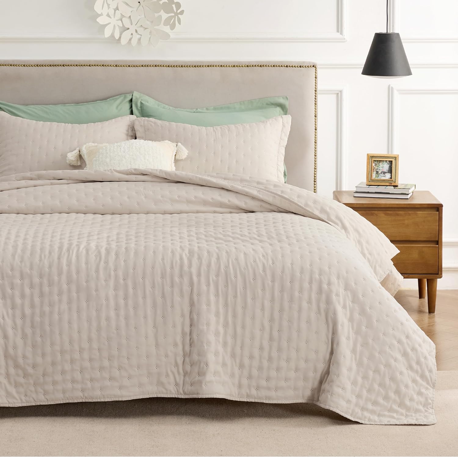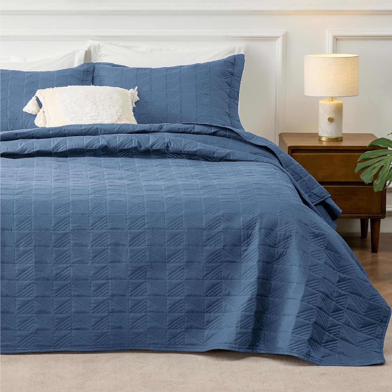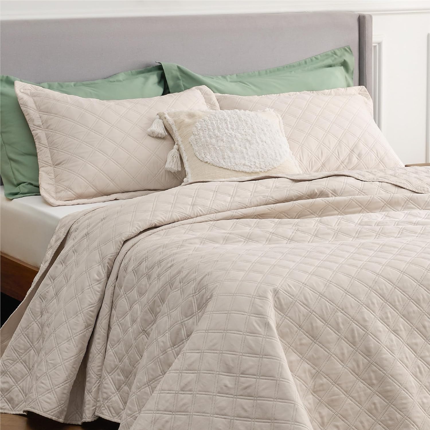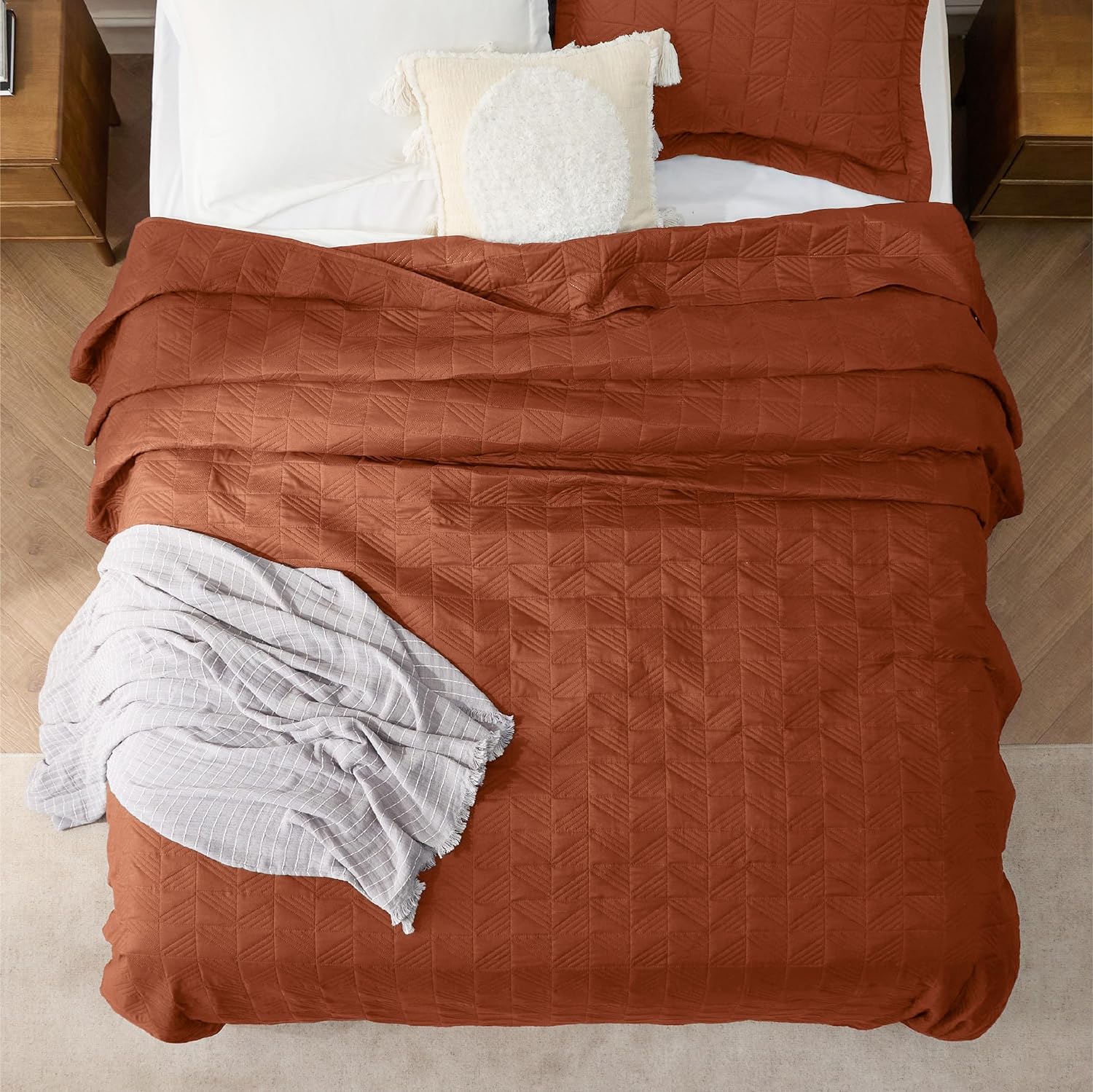 - Elevated Classic Texture: This quilt set embraces a classic and minimalist aesthetic, adding personality and visual highlight to your sleep haven with a unique embossed pattern.
