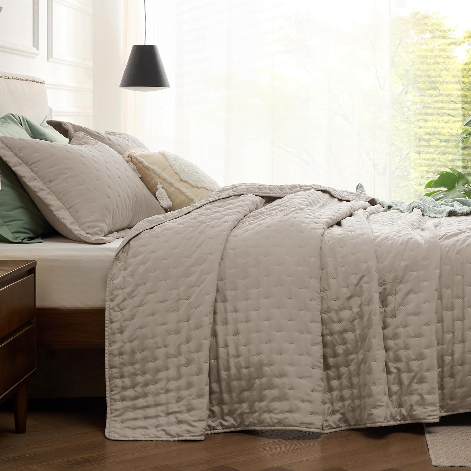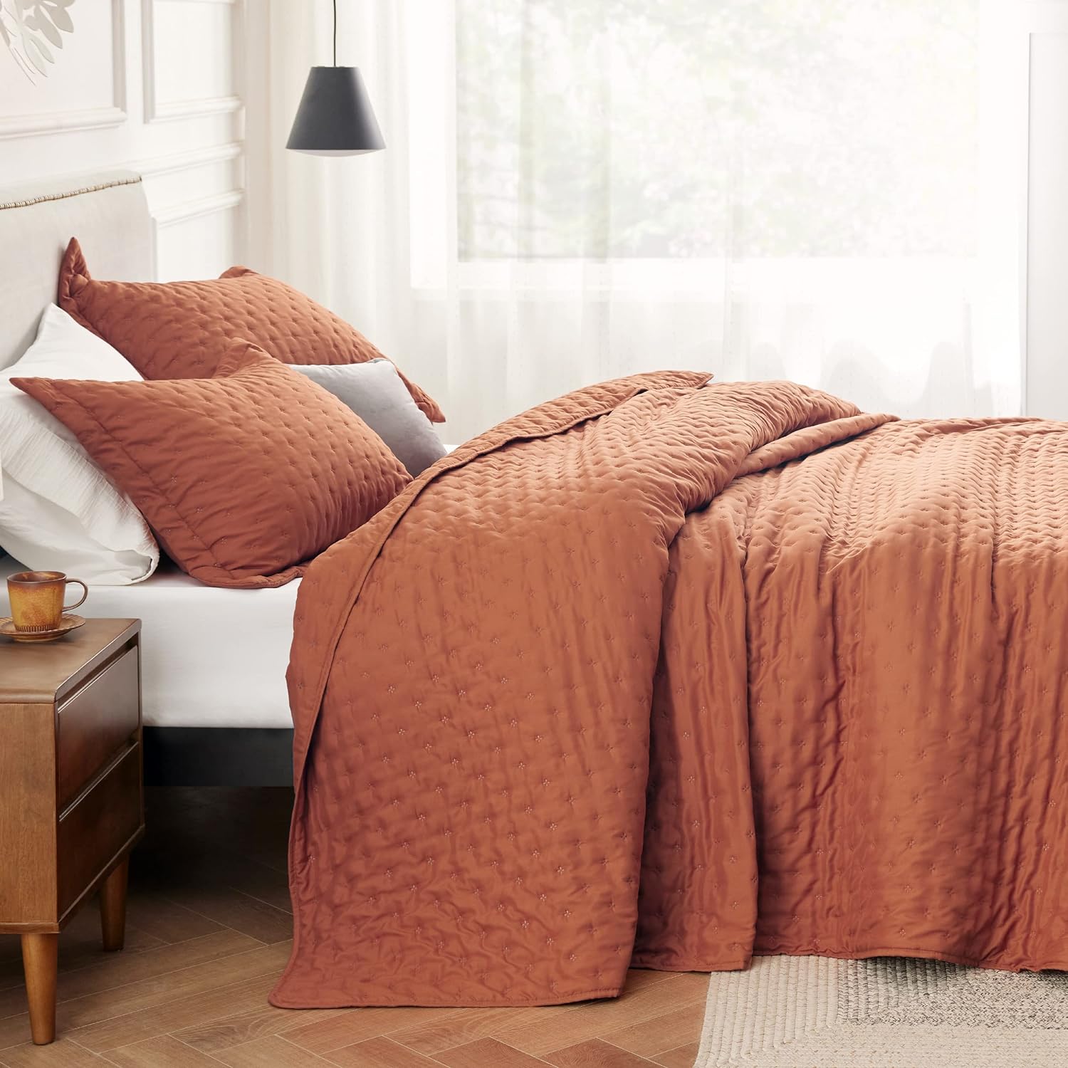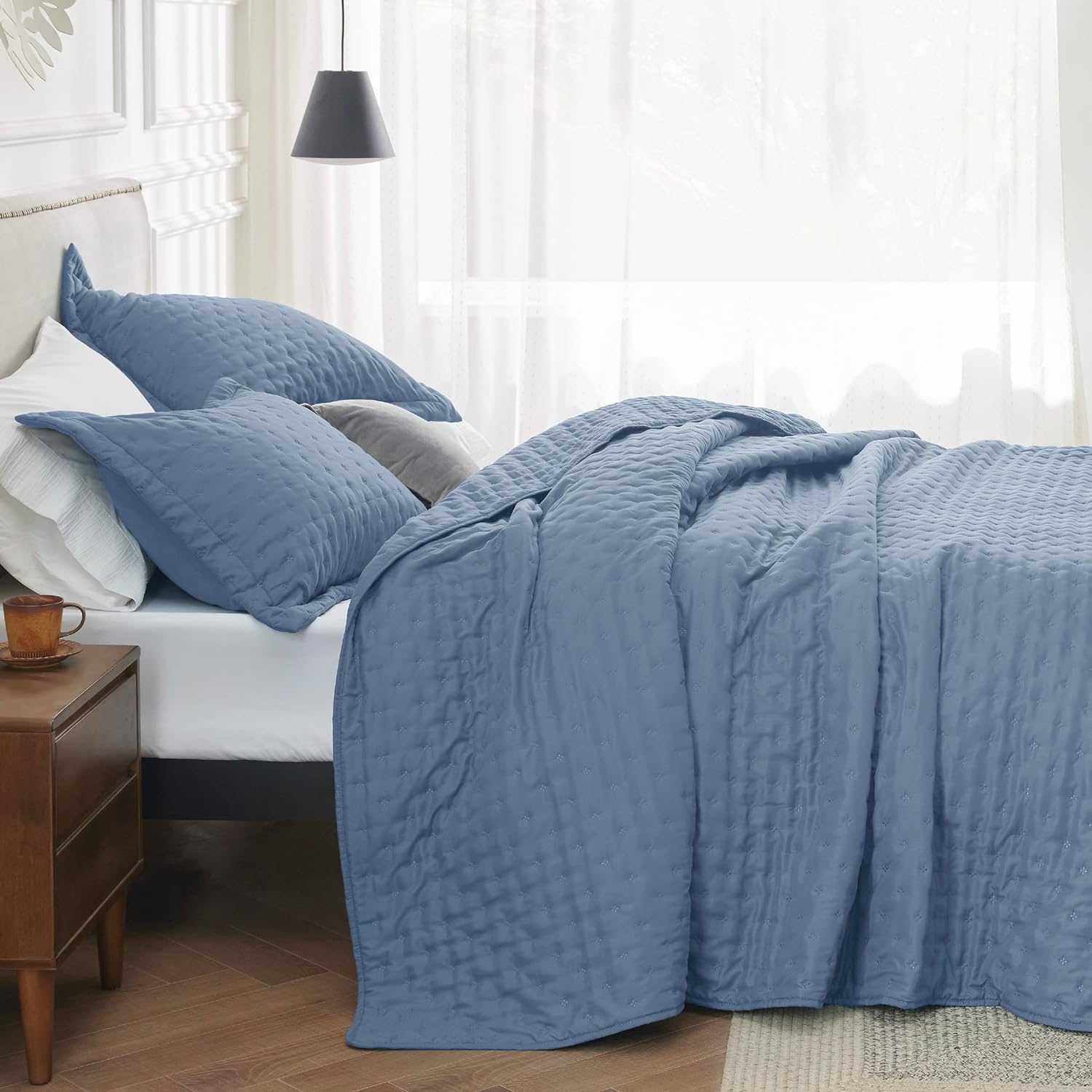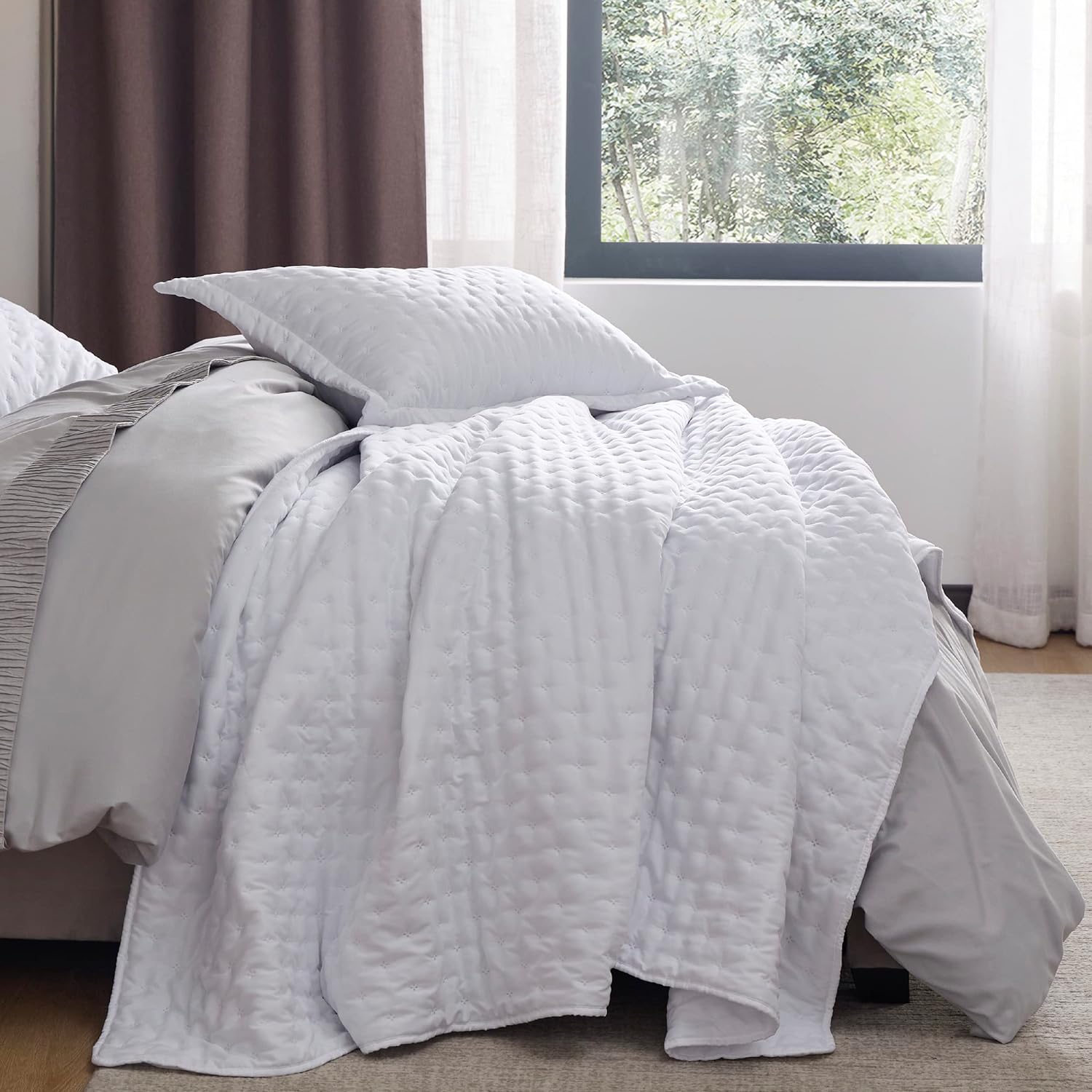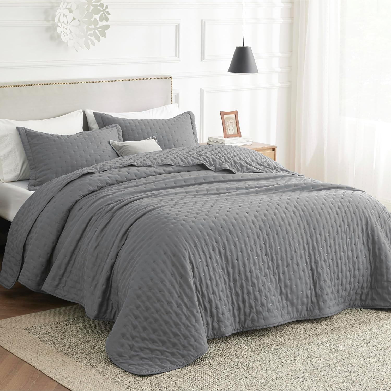 - Softness That Lasts: This brushed polyester microfiber quilt set is exceptionally soft, so you can enjoy a restful night's sleep. Its anti-static and breathable fabric gets softer after washes, providing the maximum comfort without any rustling noise.