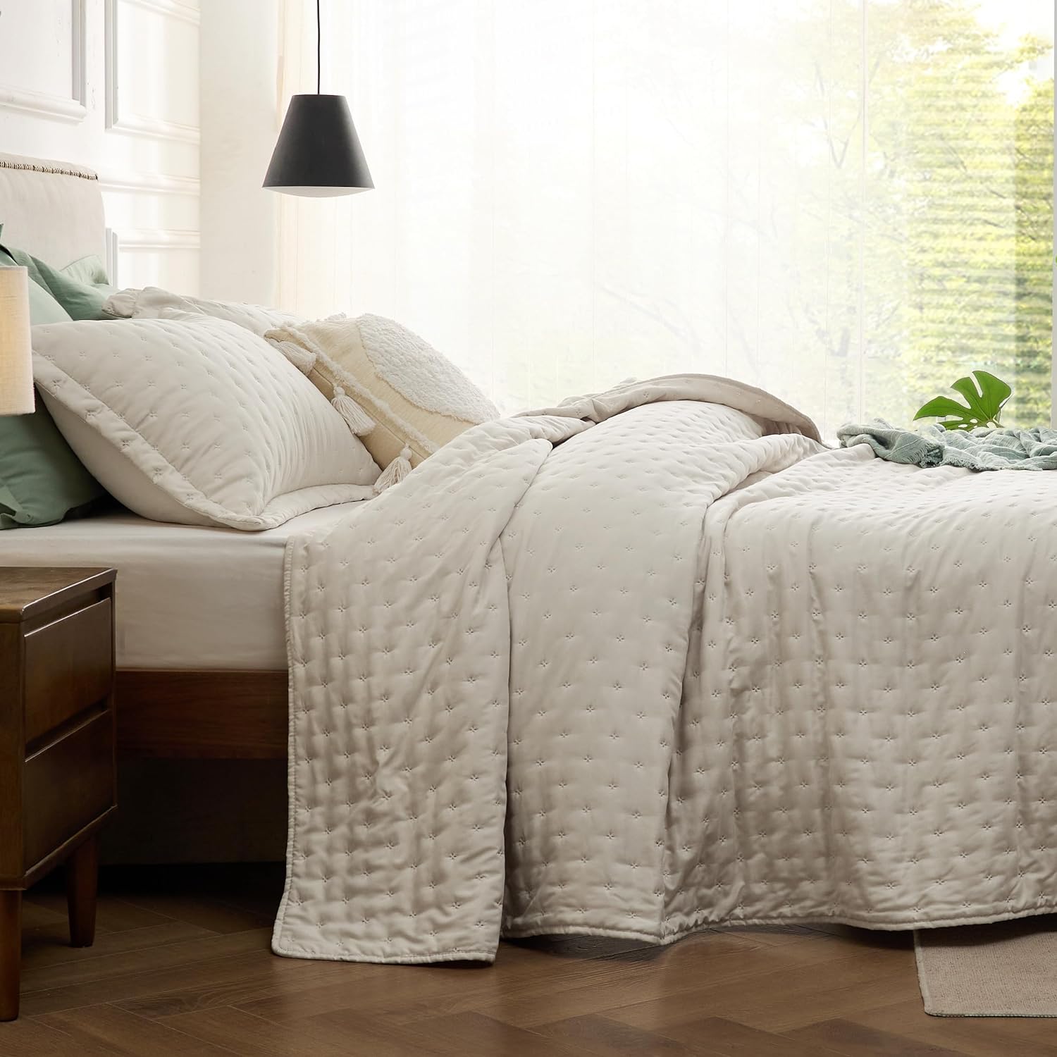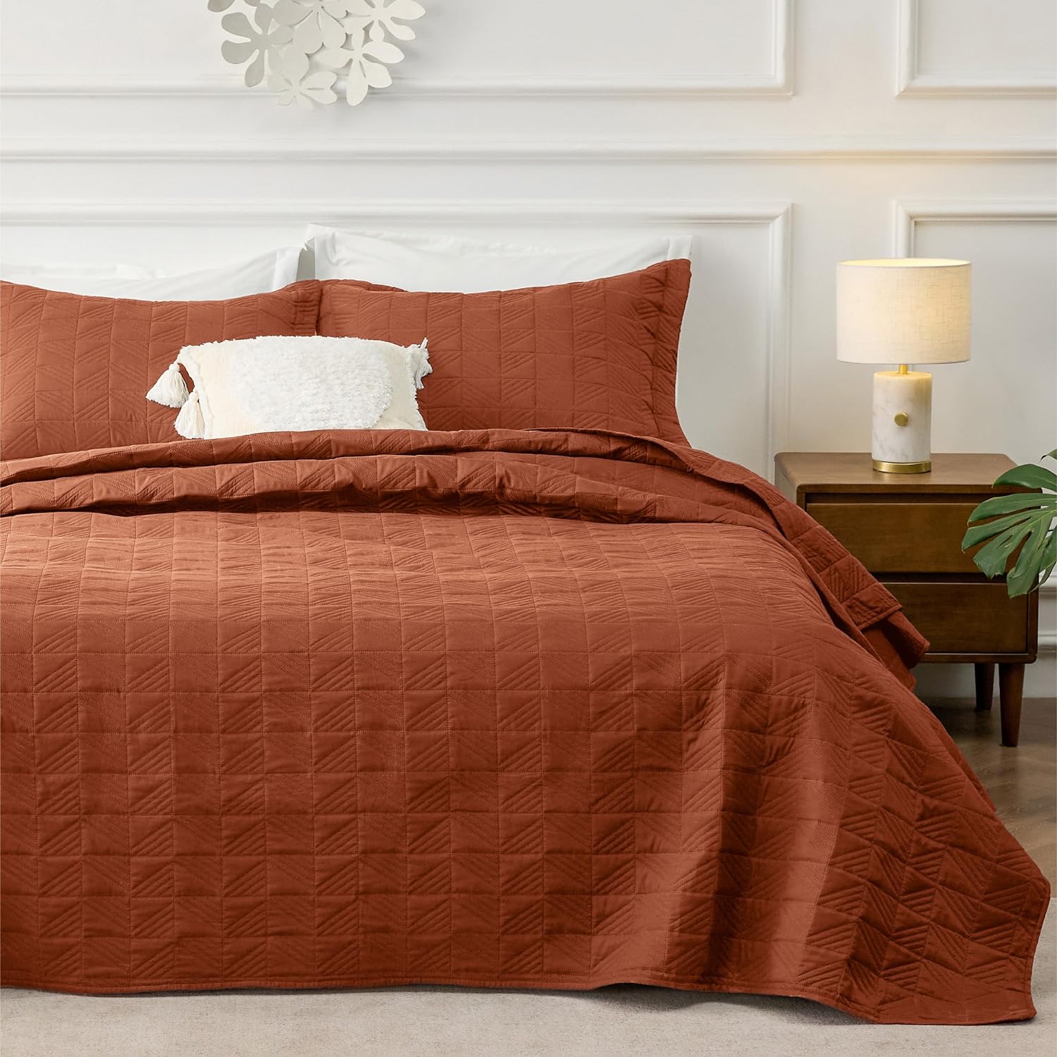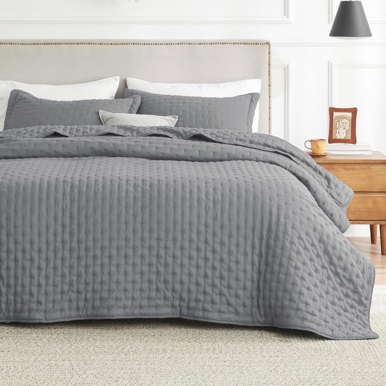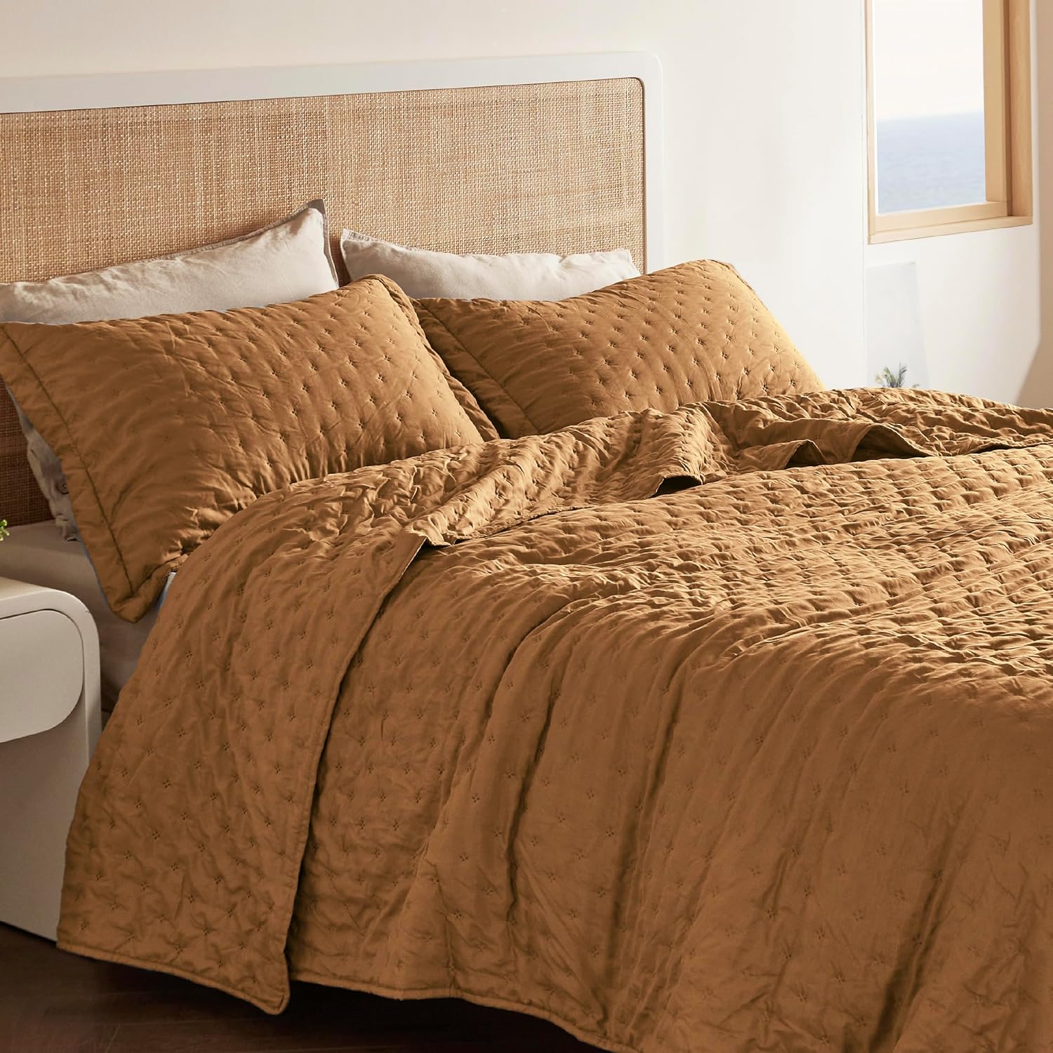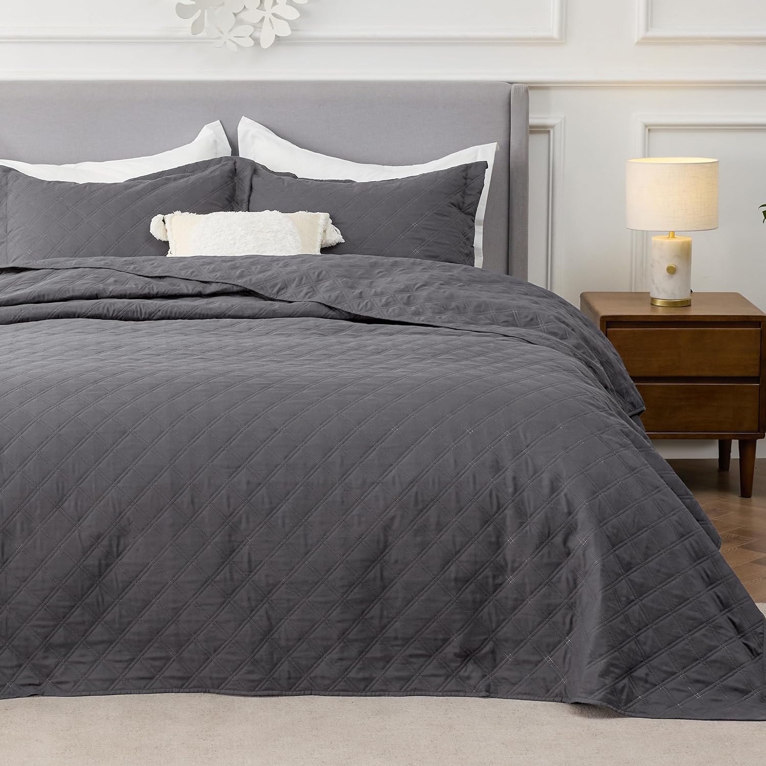 - Softness That Lasts: This brushed polyester microfiber quilt set is exceptionally soft, so you can enjoy a restful night's sleep. Its anti-static and breathable fabric gets softer after washes, providing the maximum comfort without any rustling noise.