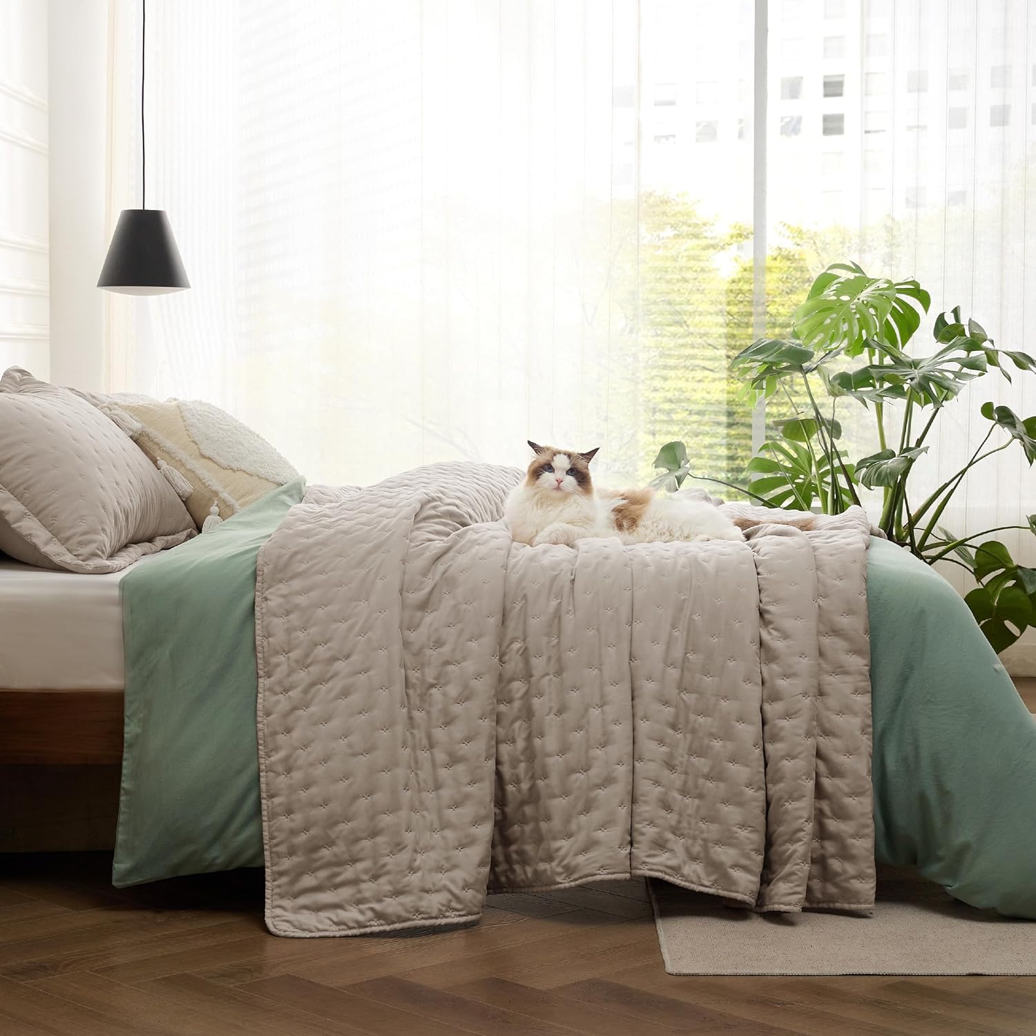 - Versatile and Practical: This coverlet is versatilely practical for various use cases, including as a thin summer quilt, as an extra bedspread in the winter, as a bed coverlet for pet, or as a simple and elegant bedding decoration element.