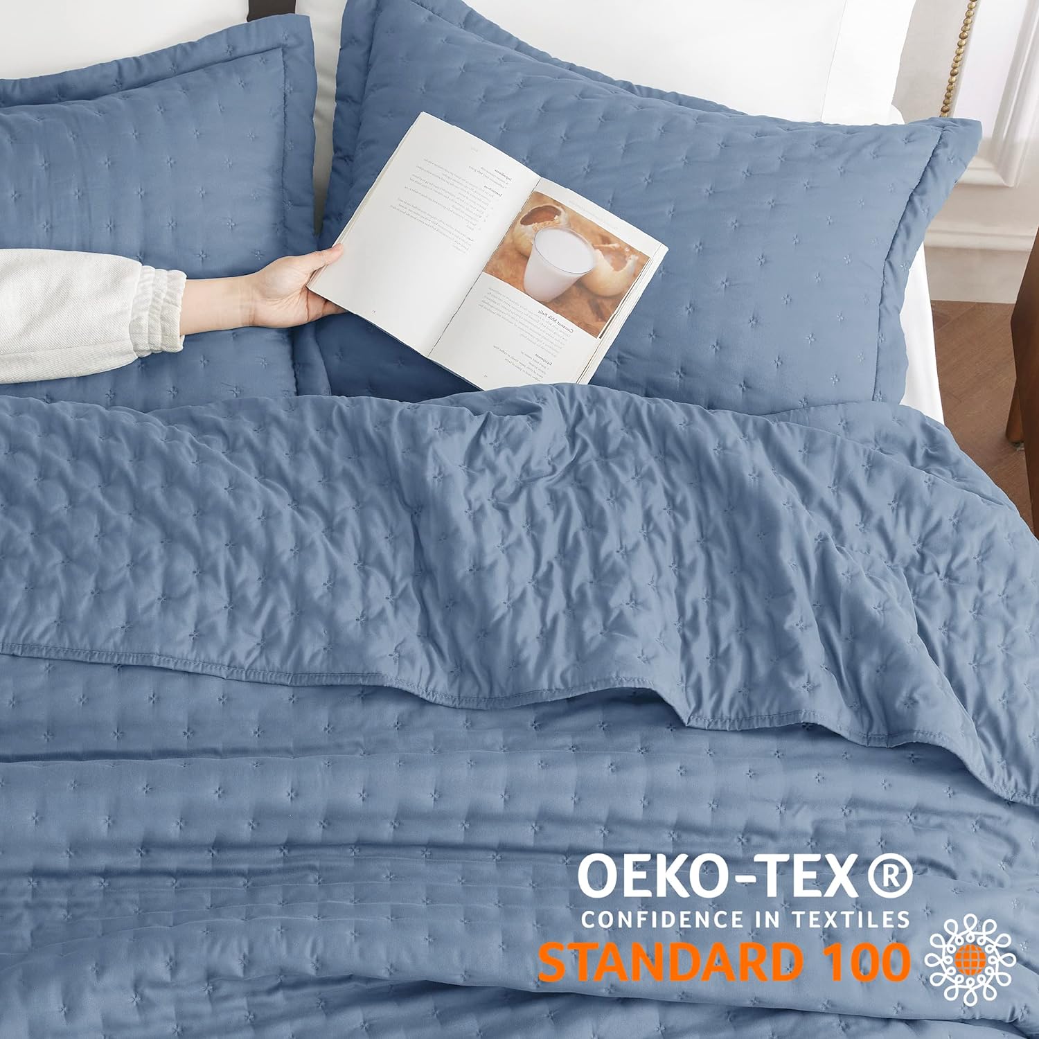 - What You Can Get: This Standard 100 by OEKO-TEX certified Bedsure king bedding set comes with 1 quilt (106" x 96") and 2 pillow shams (20" x 36" + 2").