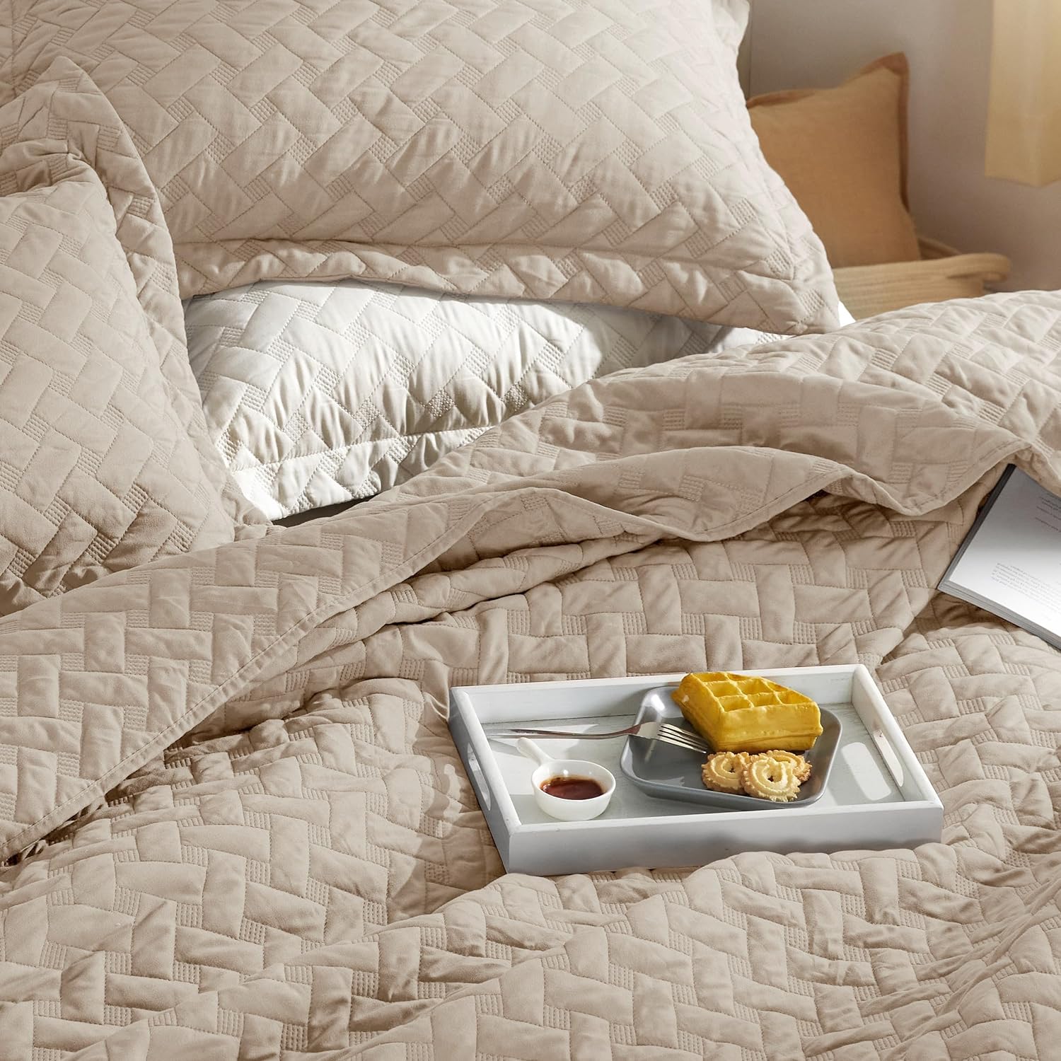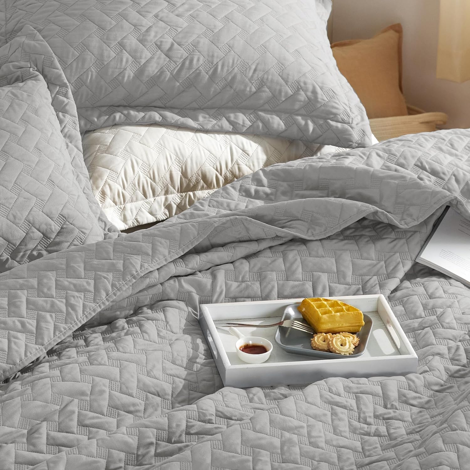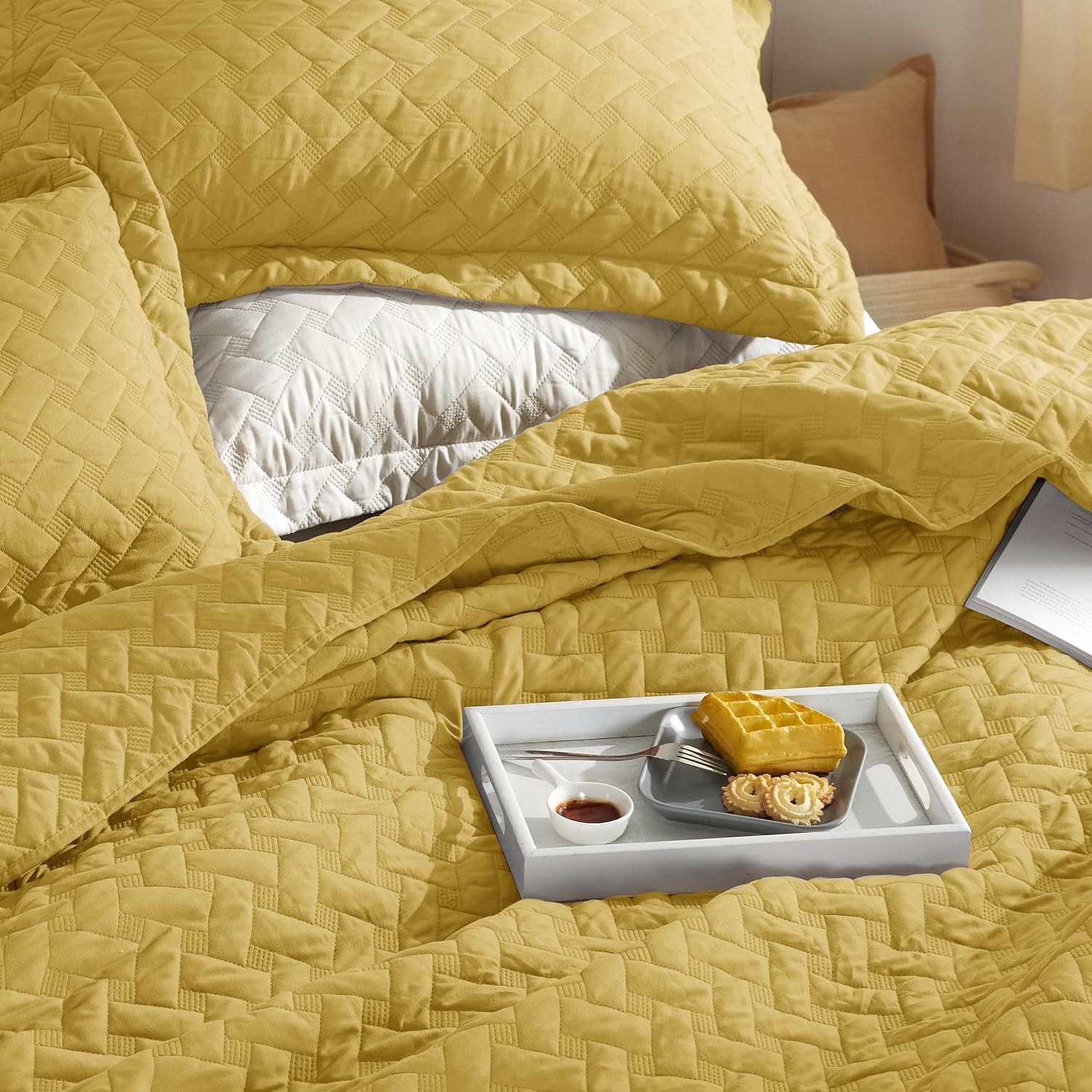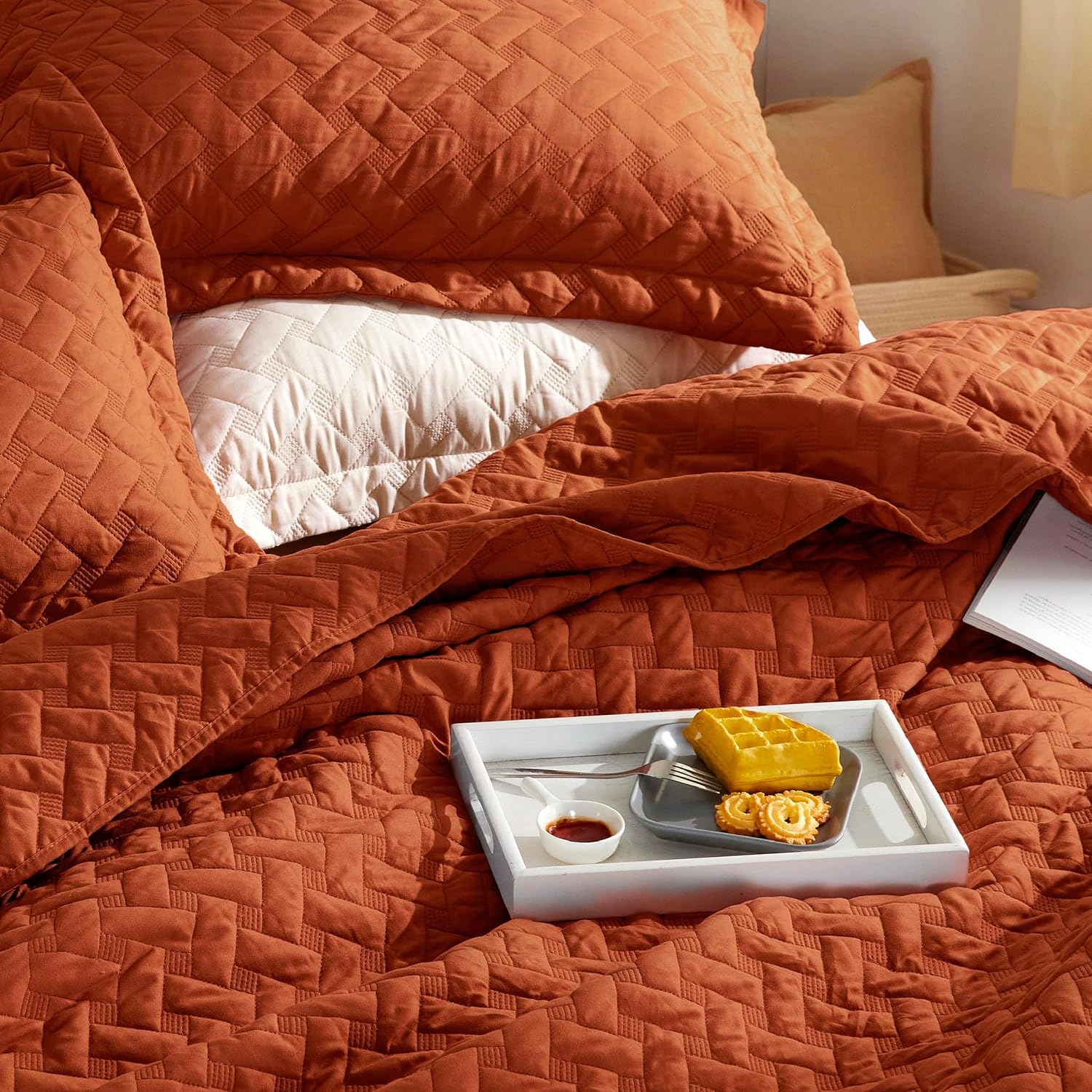 - Colorful Decor Element: The elegance of basket weave pattern coupling with a wide range of color options made available, this quilt set makes the perfect cozy companion for every home.
