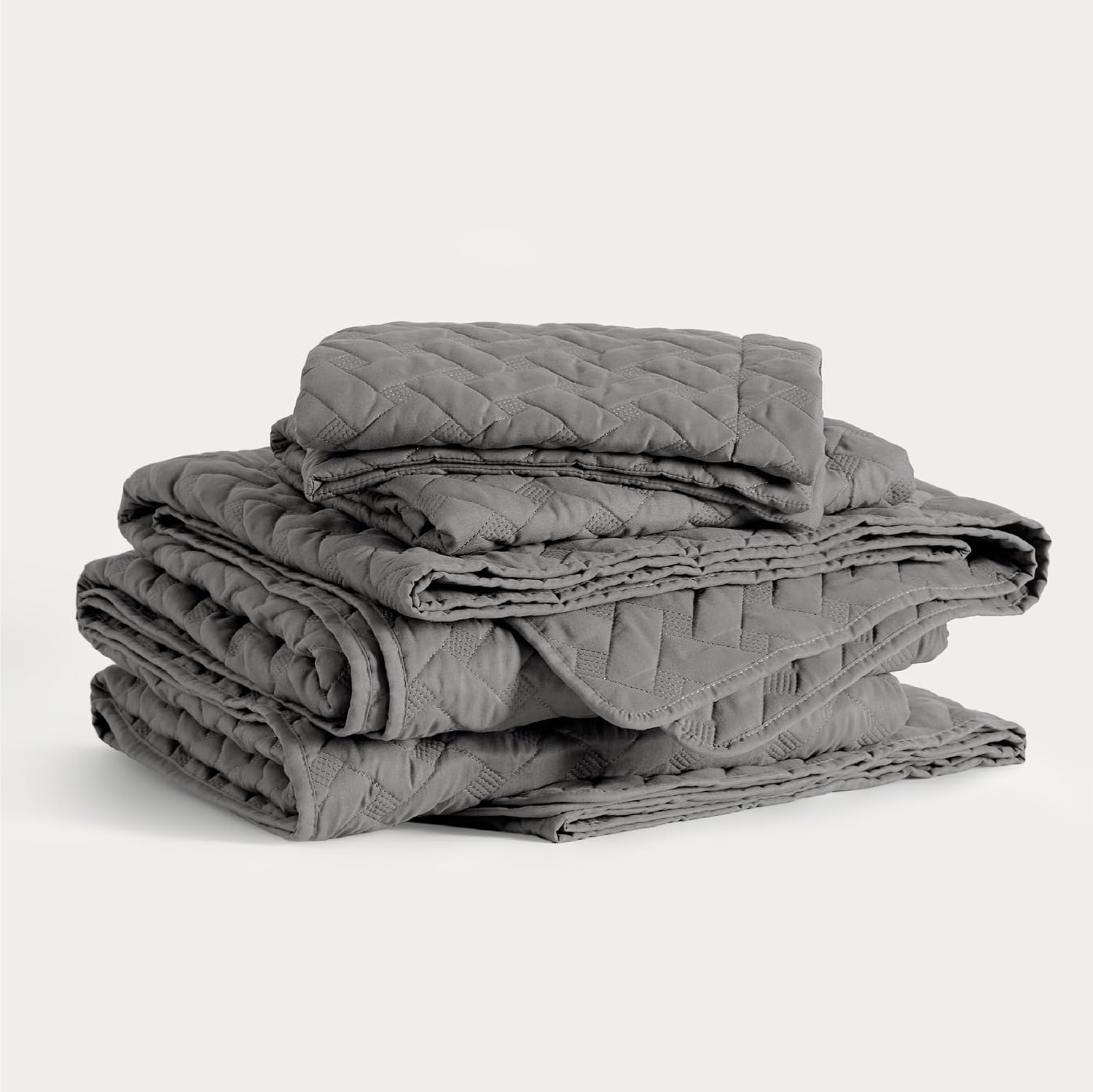 - All Season Use: This quilt set is suitable for year-round use. The heavier-than-average polyester microfiber filling covered in the 85 GSM brushed polyester shell gives this quilt the right amount of weight. This textural, sturdy, and lightweight quilt set is suitable for hot summer eves and delivers essential supplementary warmth during cold winter days.