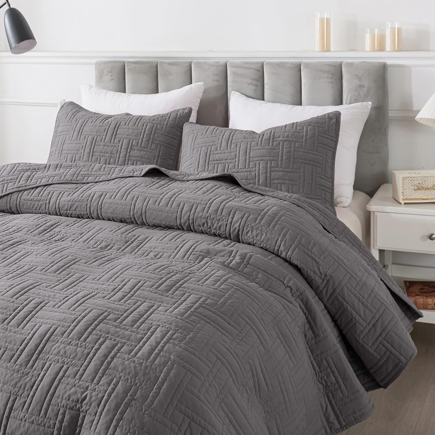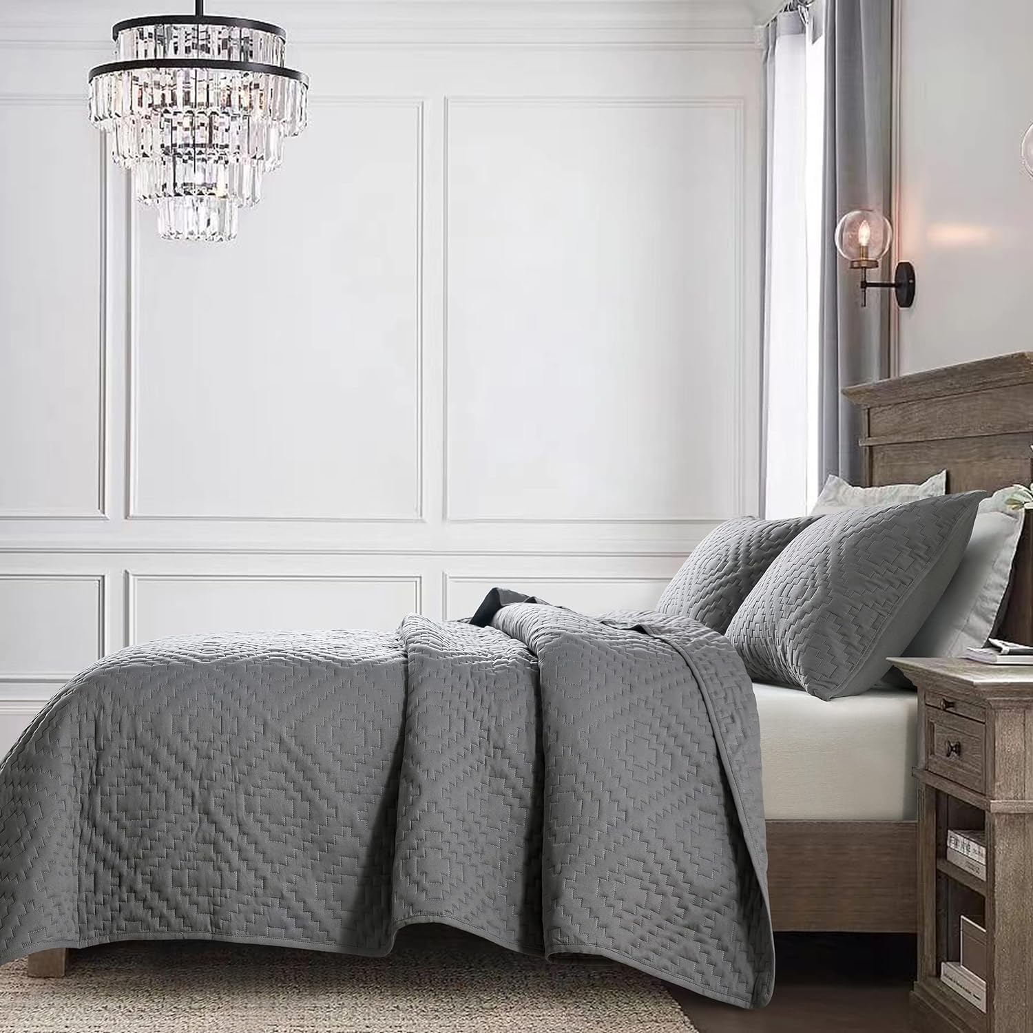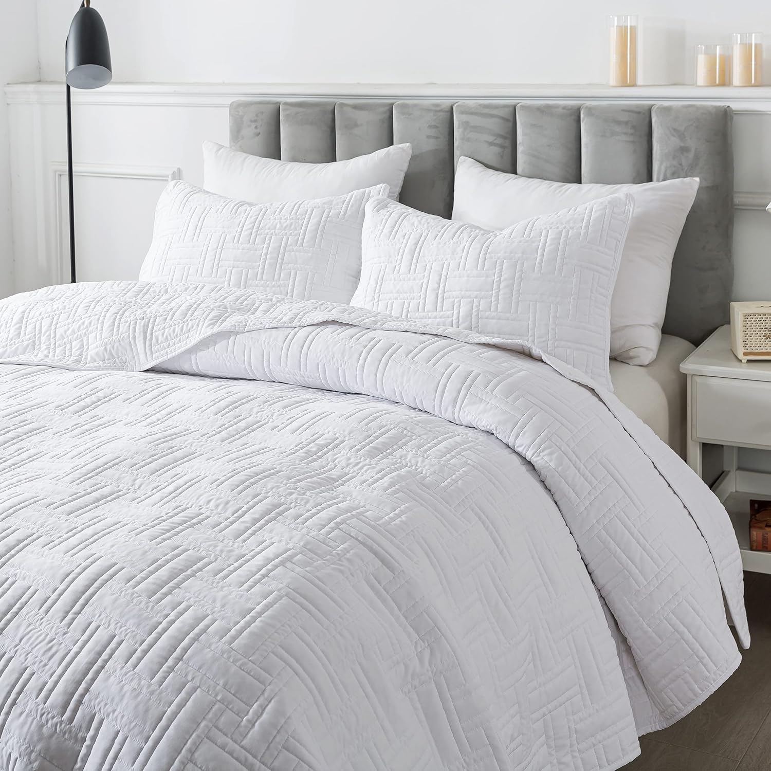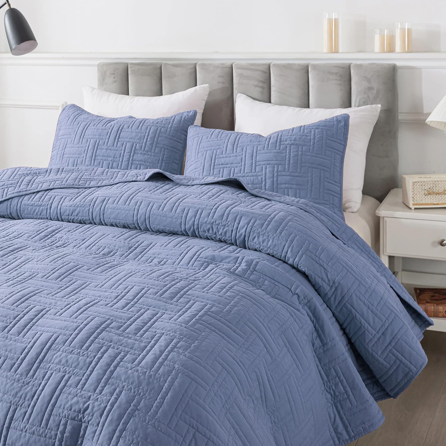 - High material: 100% microfiber polyester, more durable, soft and cozy, skin friendly ultrasonic quilt sets, lightweight quilt queen size bedspread coverlet set.