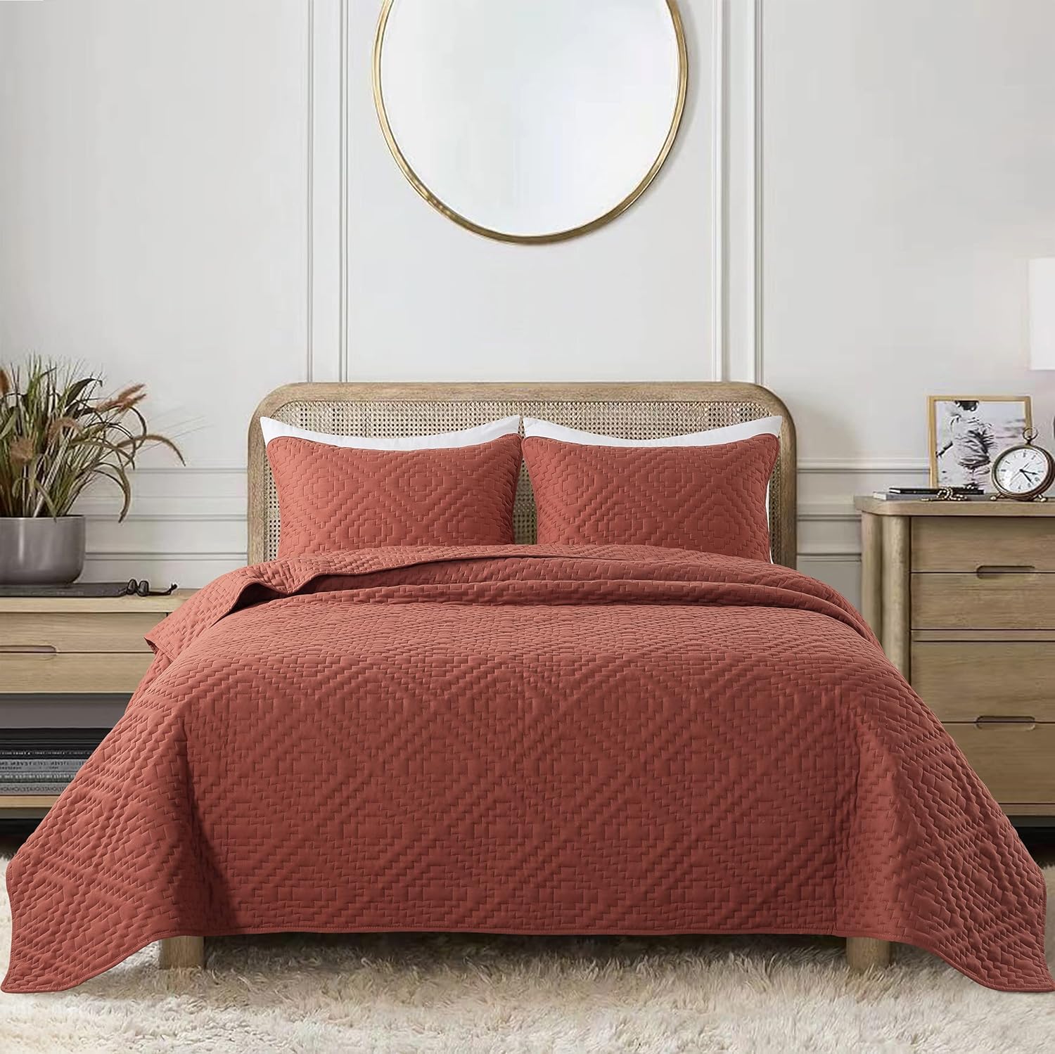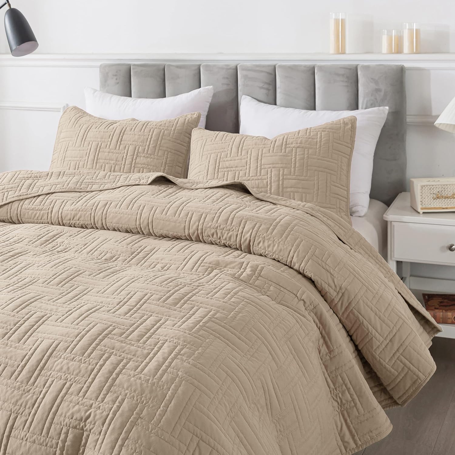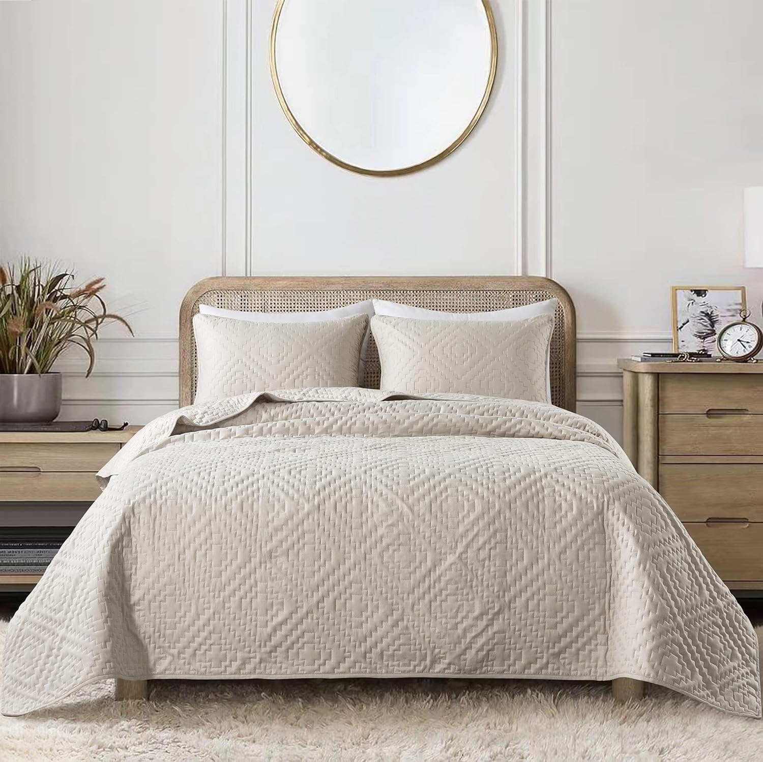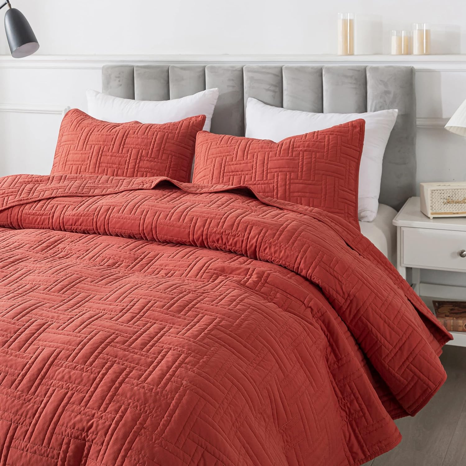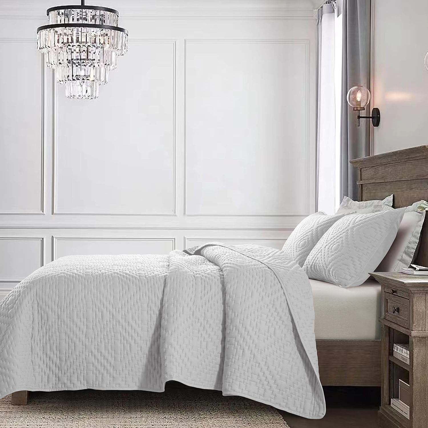 - High material: 100% microfiber polyester, more durable, soft and cozy, skin friendly ultrasonic quilt sets, lightweight quilt queen size bedspread coverlet set.