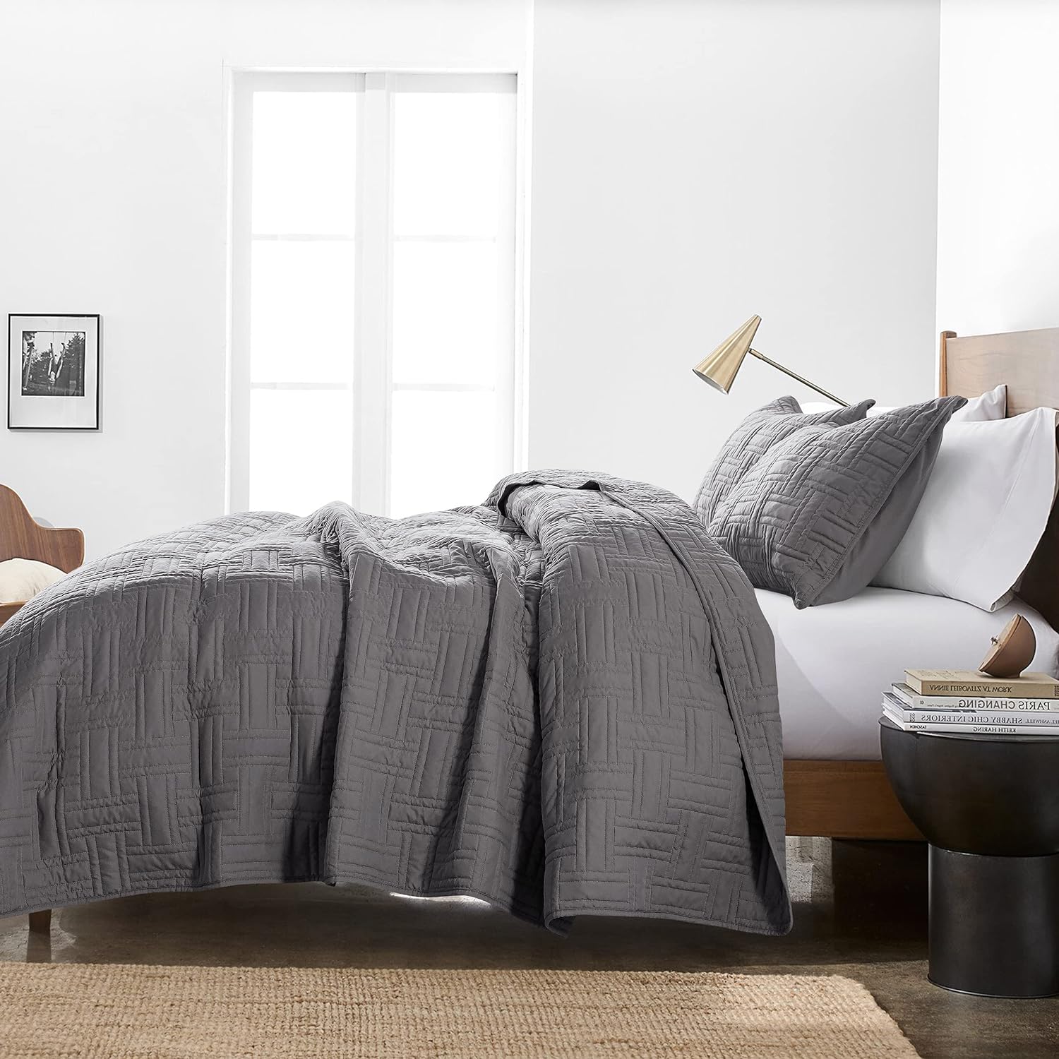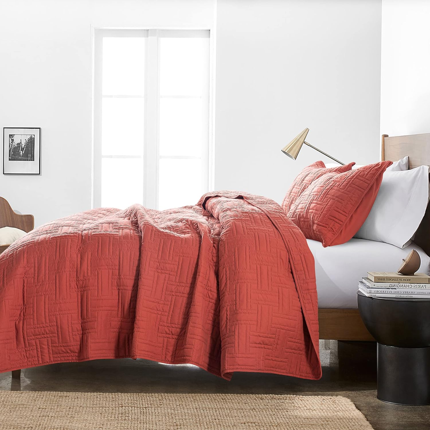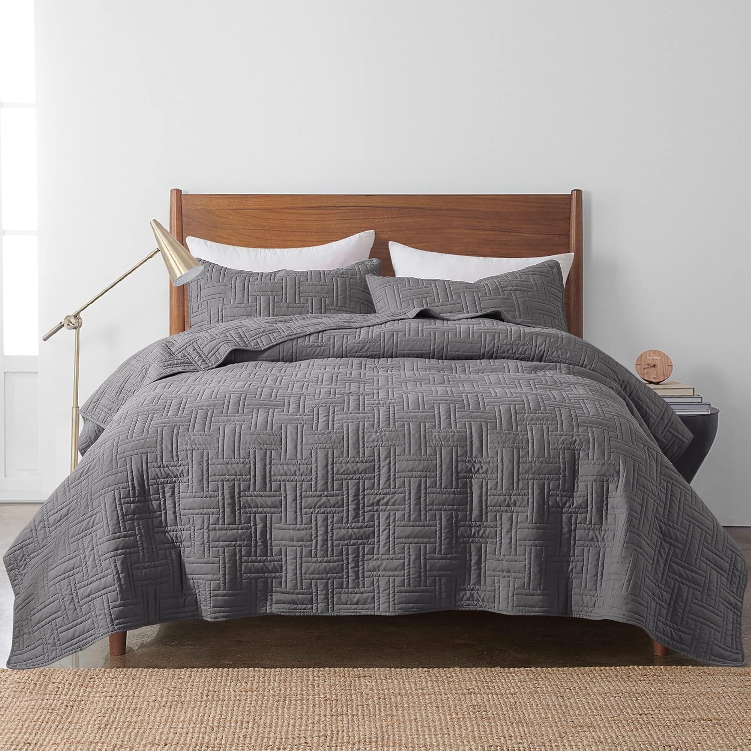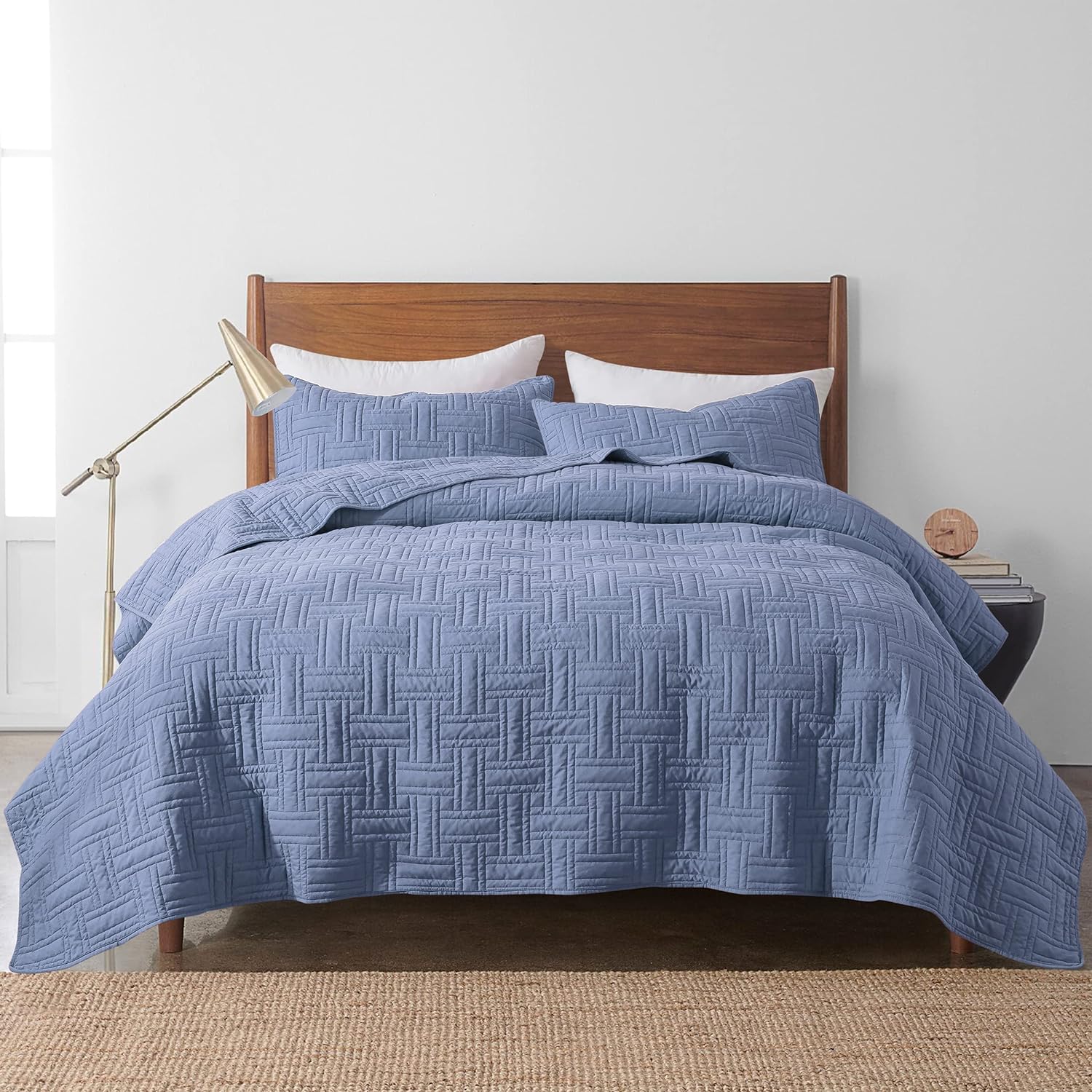 - High material: 100% microfiber polyester, more durable, soft and cozy, skin friendly ultrasonic quilt sets, lightweight quilt queen size bedspread coverlet set.