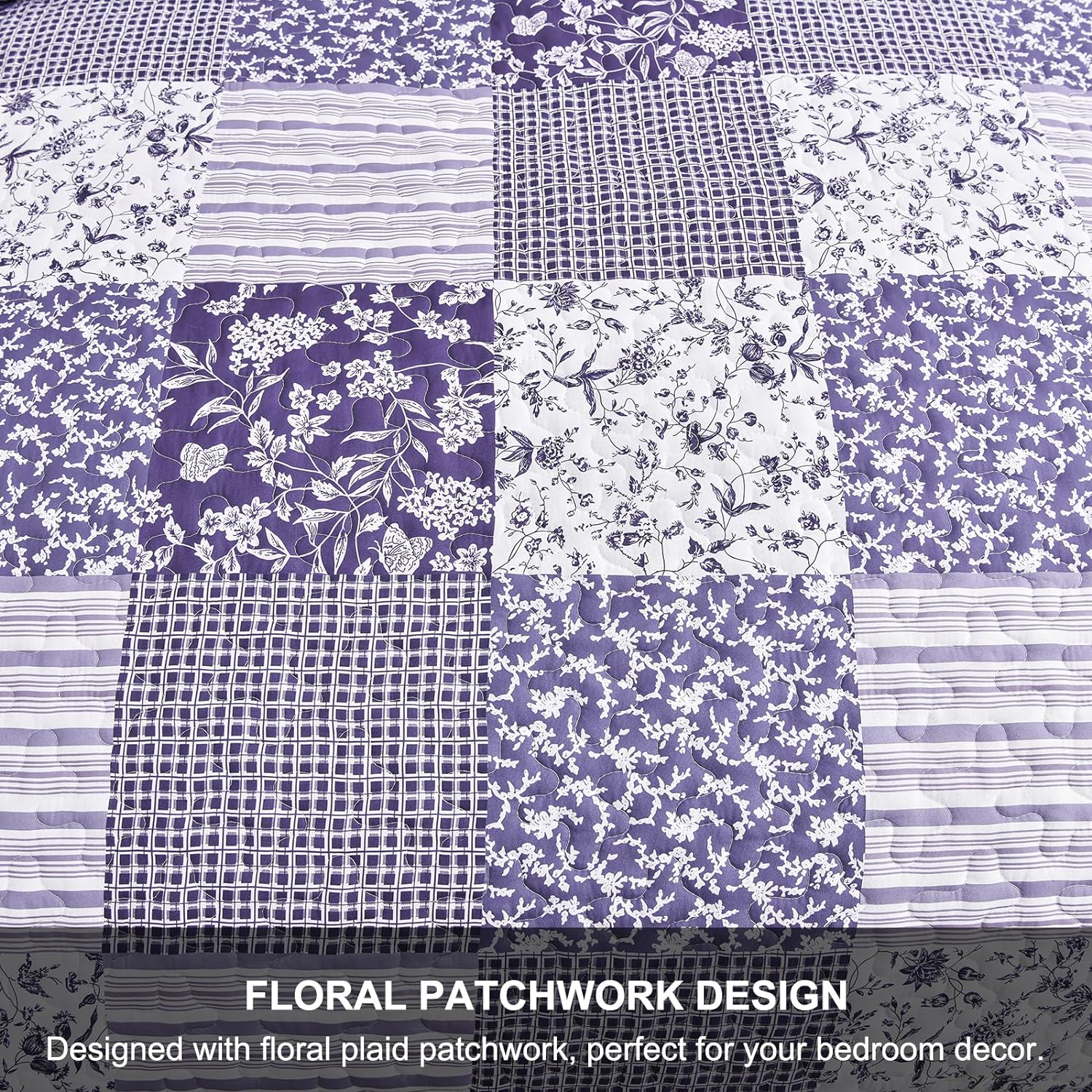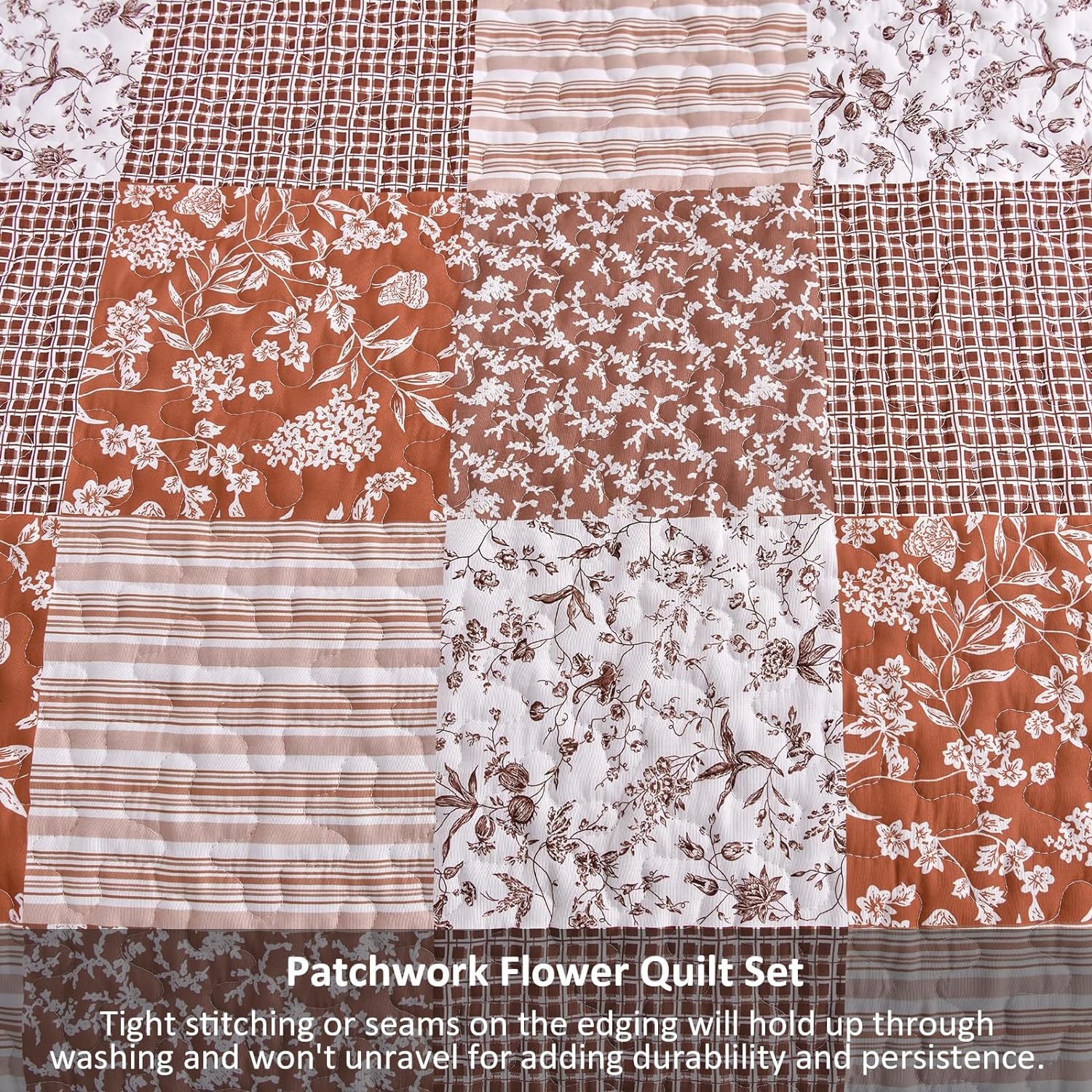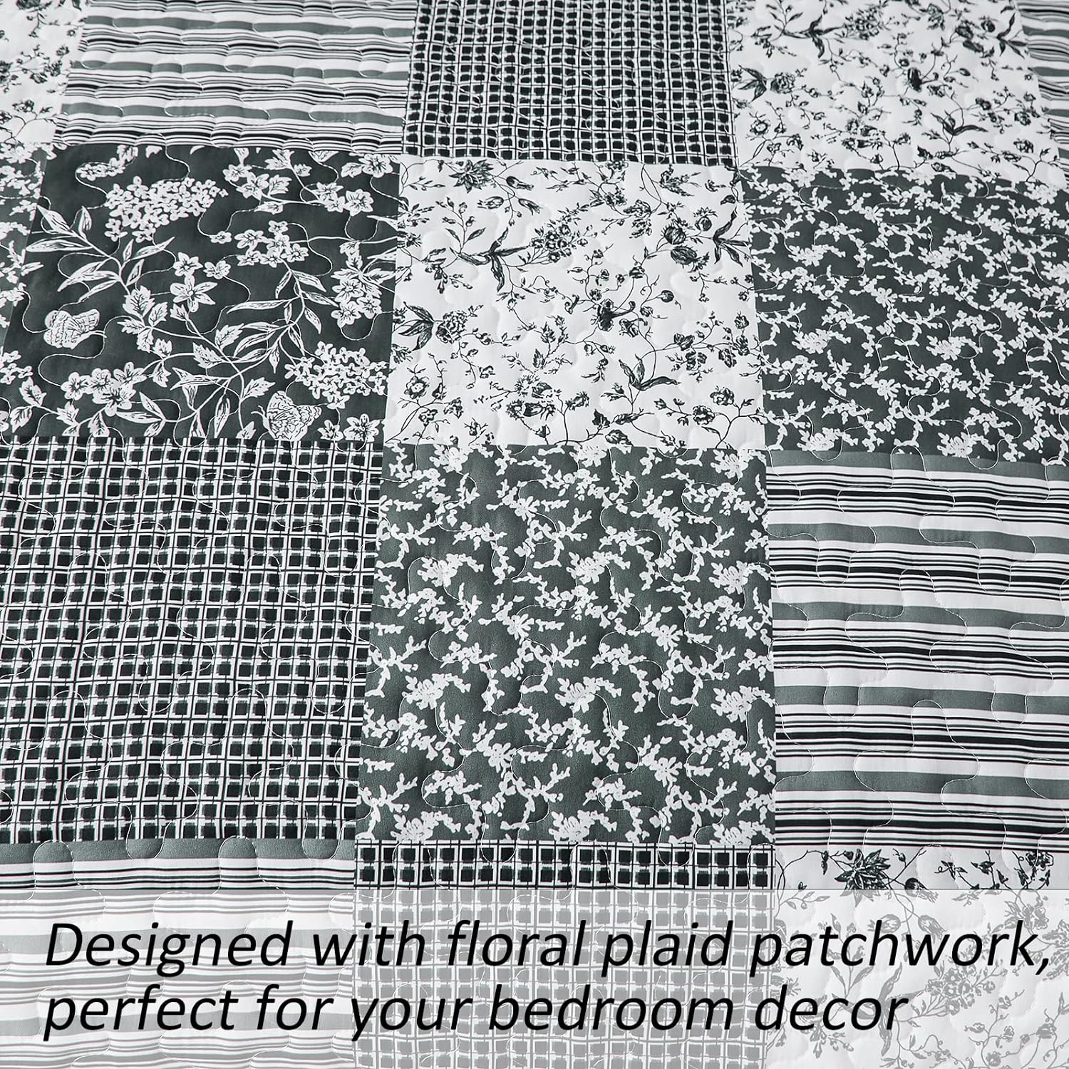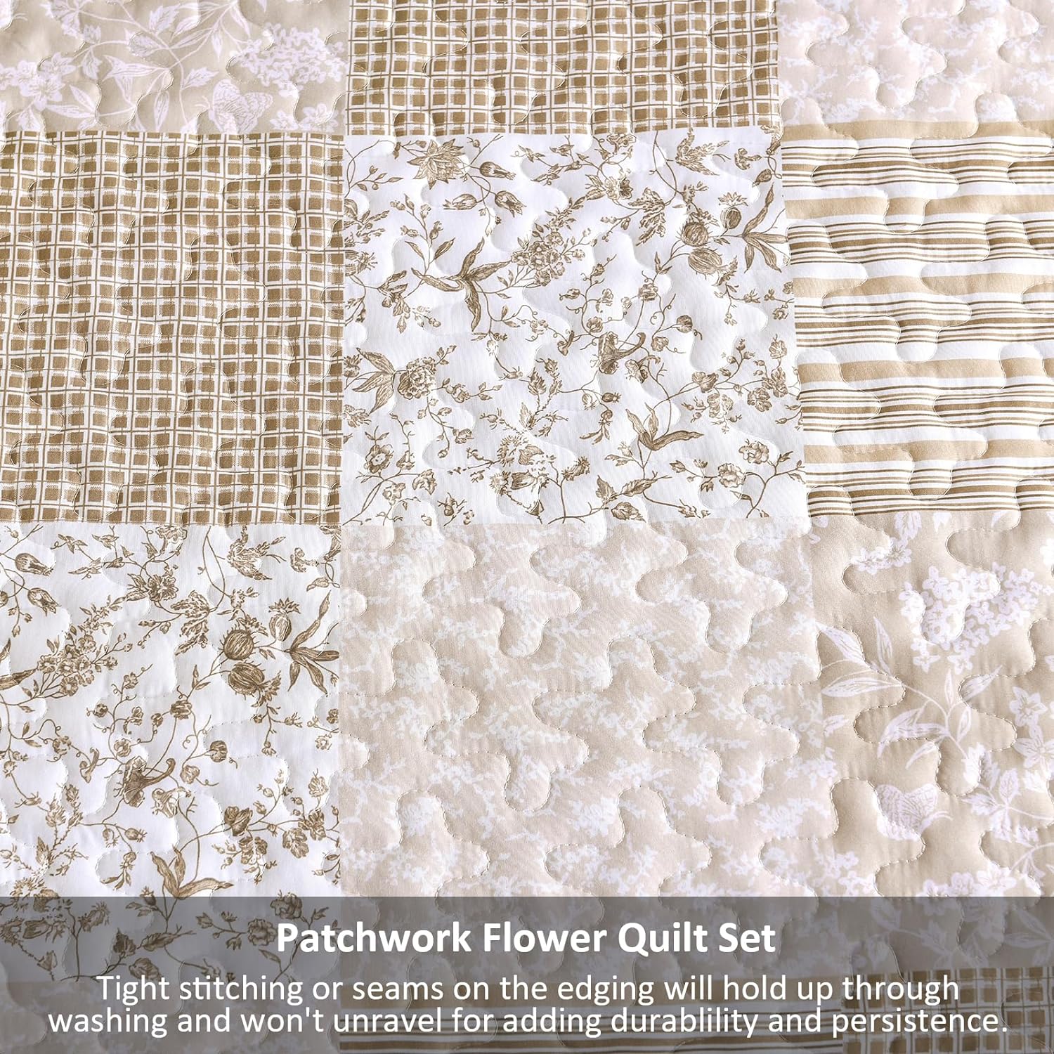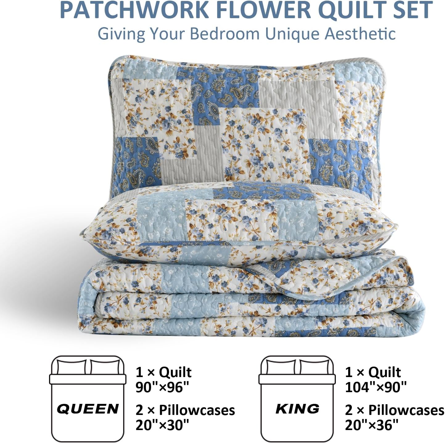 - 【Soft Cozy Microfiber Material】:The patchwork flower quilt set queen size is made of soft microfiber material for softness and comfort,perfect for all year round. This quilt set is reversible, both sides could be used individually.