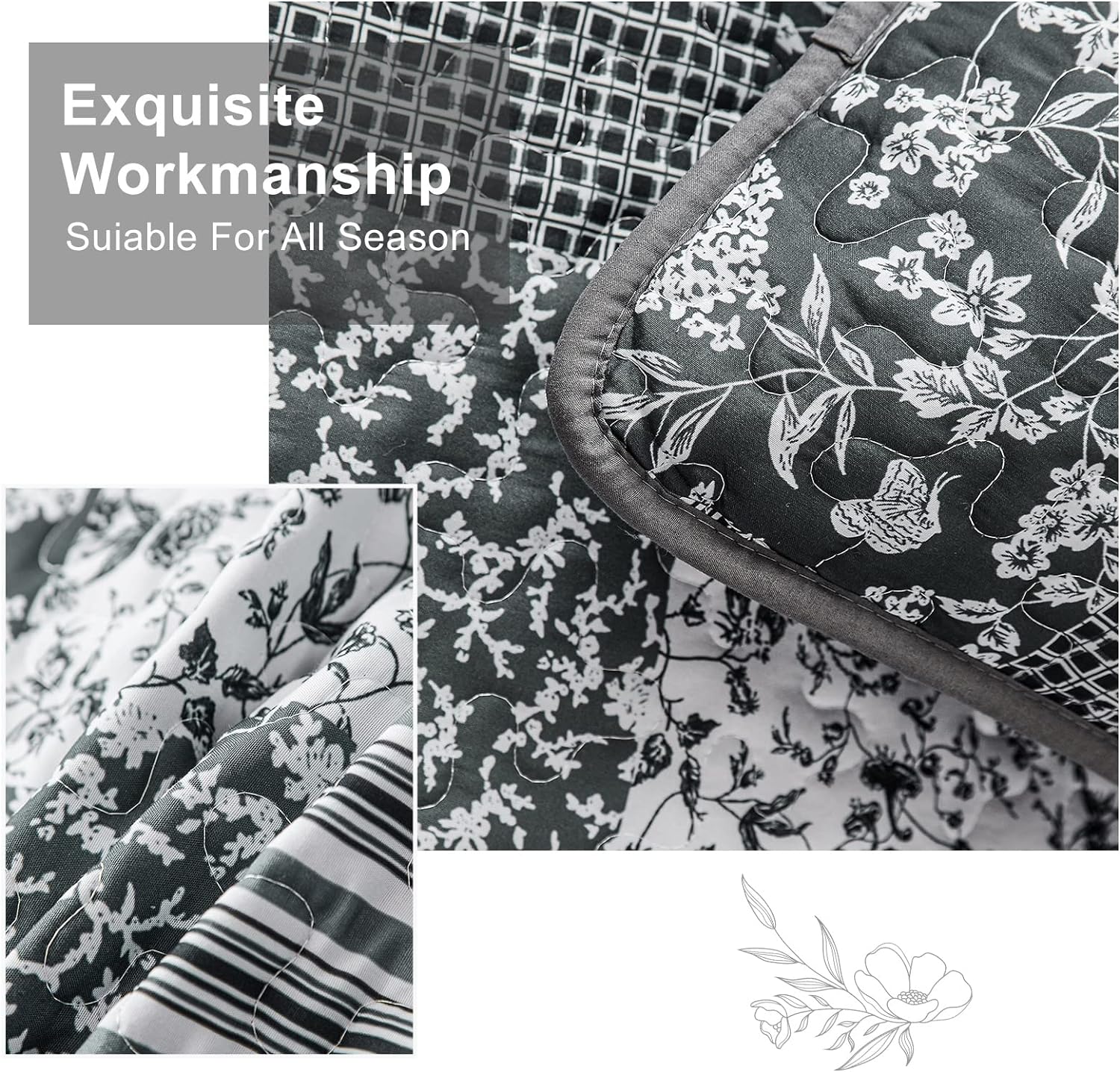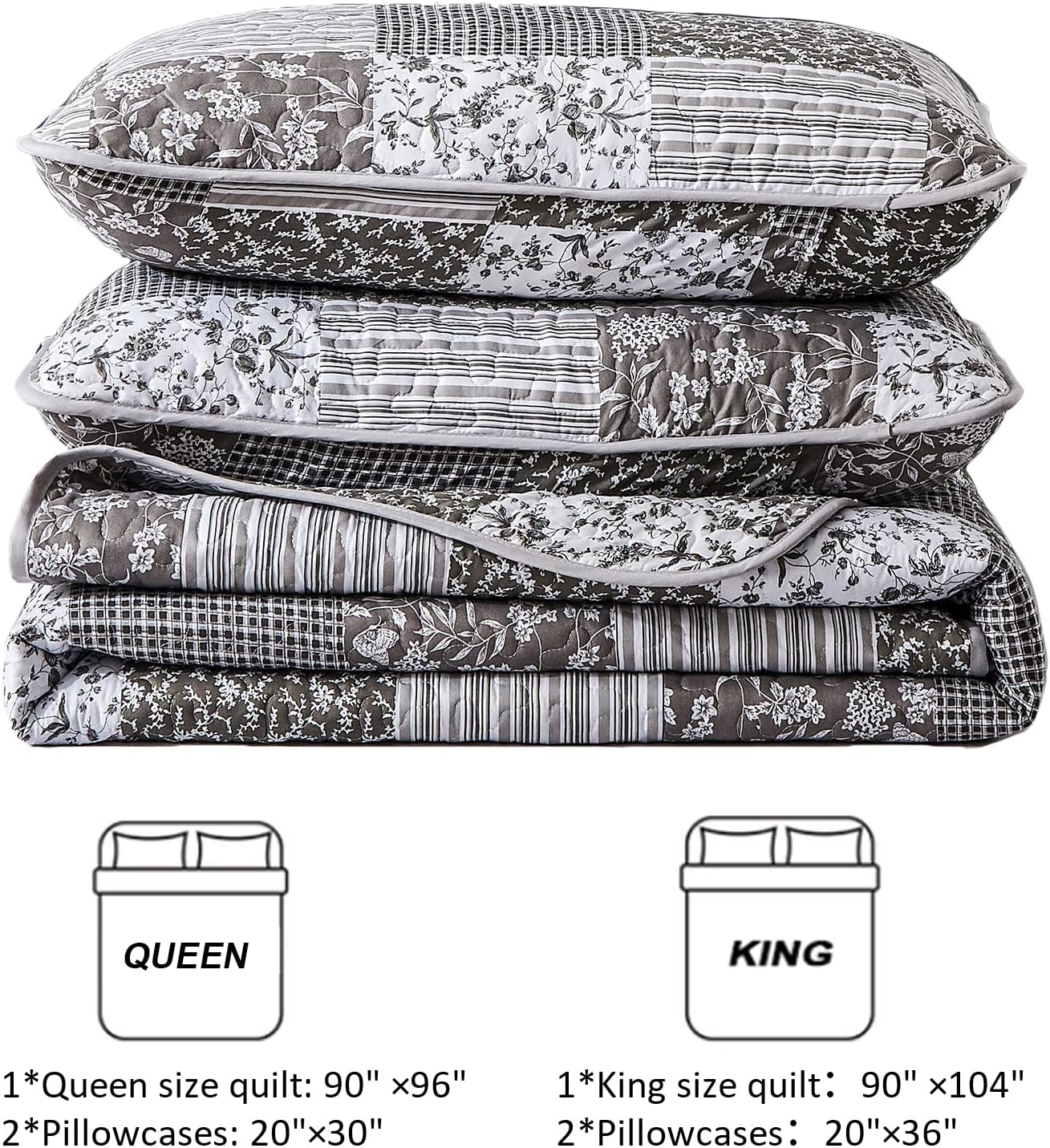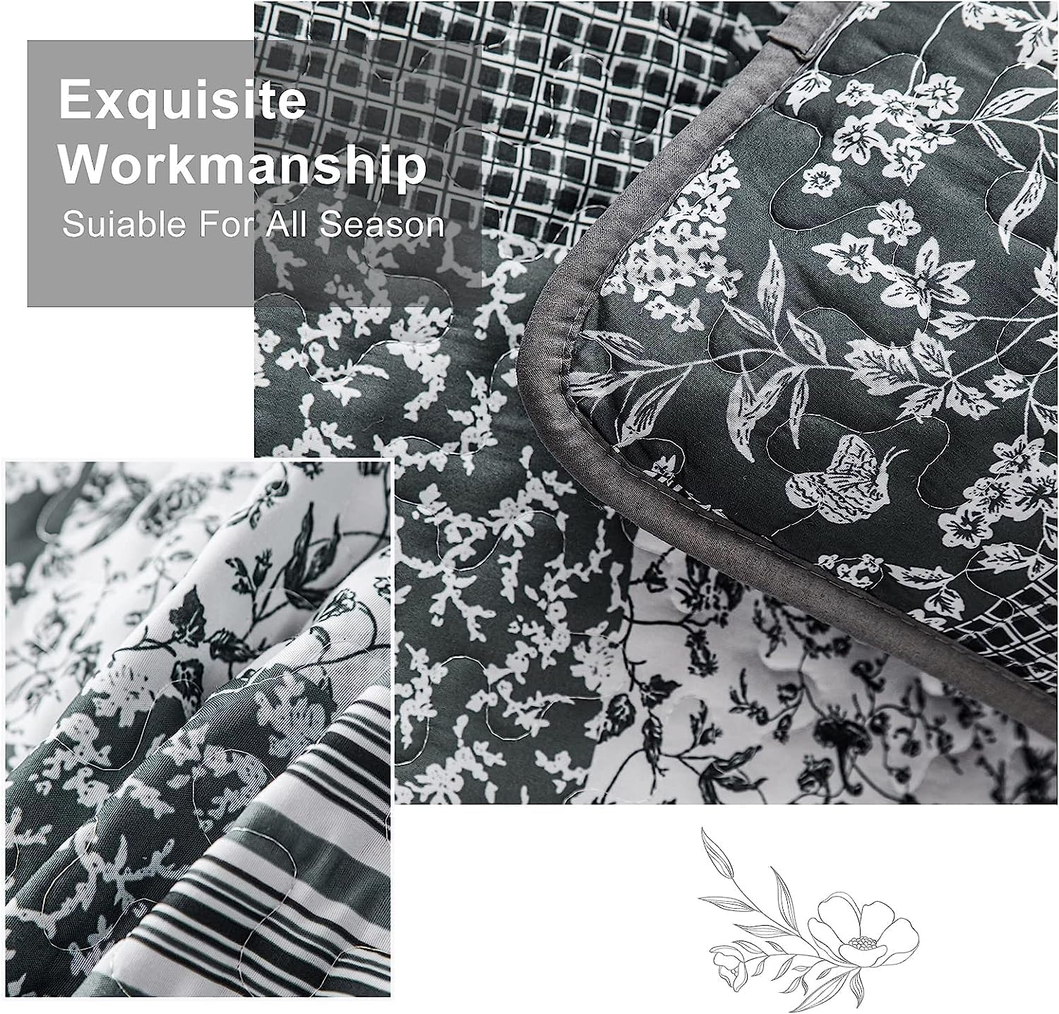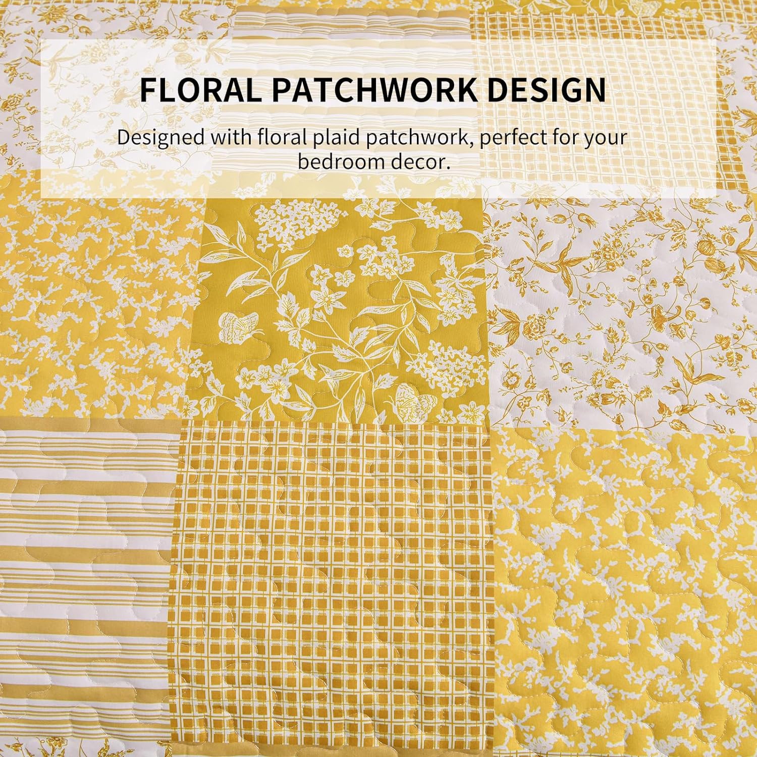- 【Soft Cozy Microfiber Material】:The patchwork flower quilt set queen size is made of soft microfiber material for softness and comfort,perfect for all year round. This quilt set is reversible, both sides could be used individually.