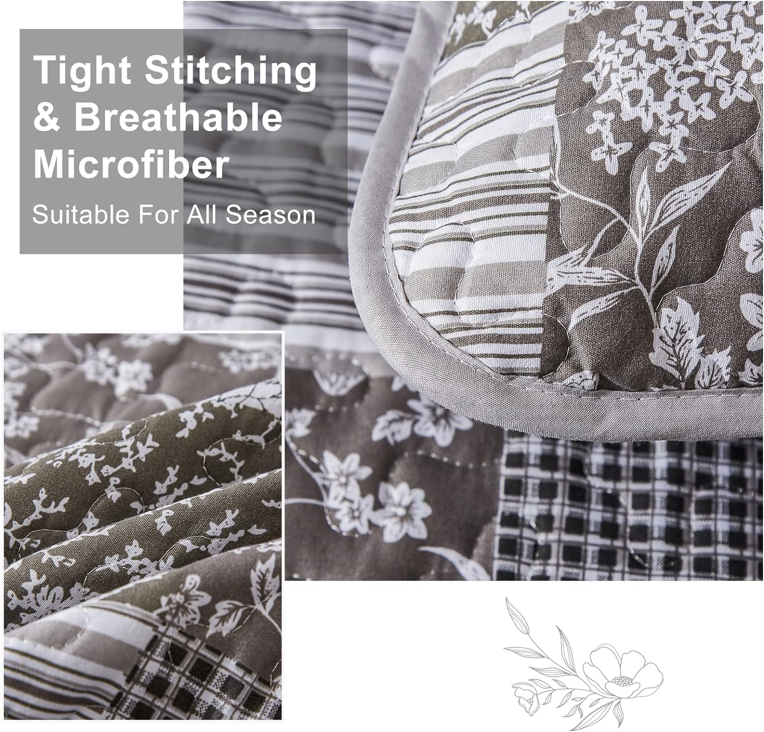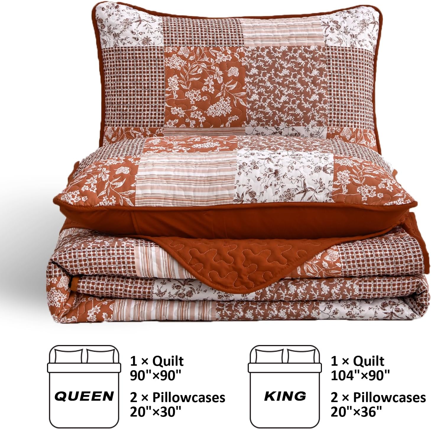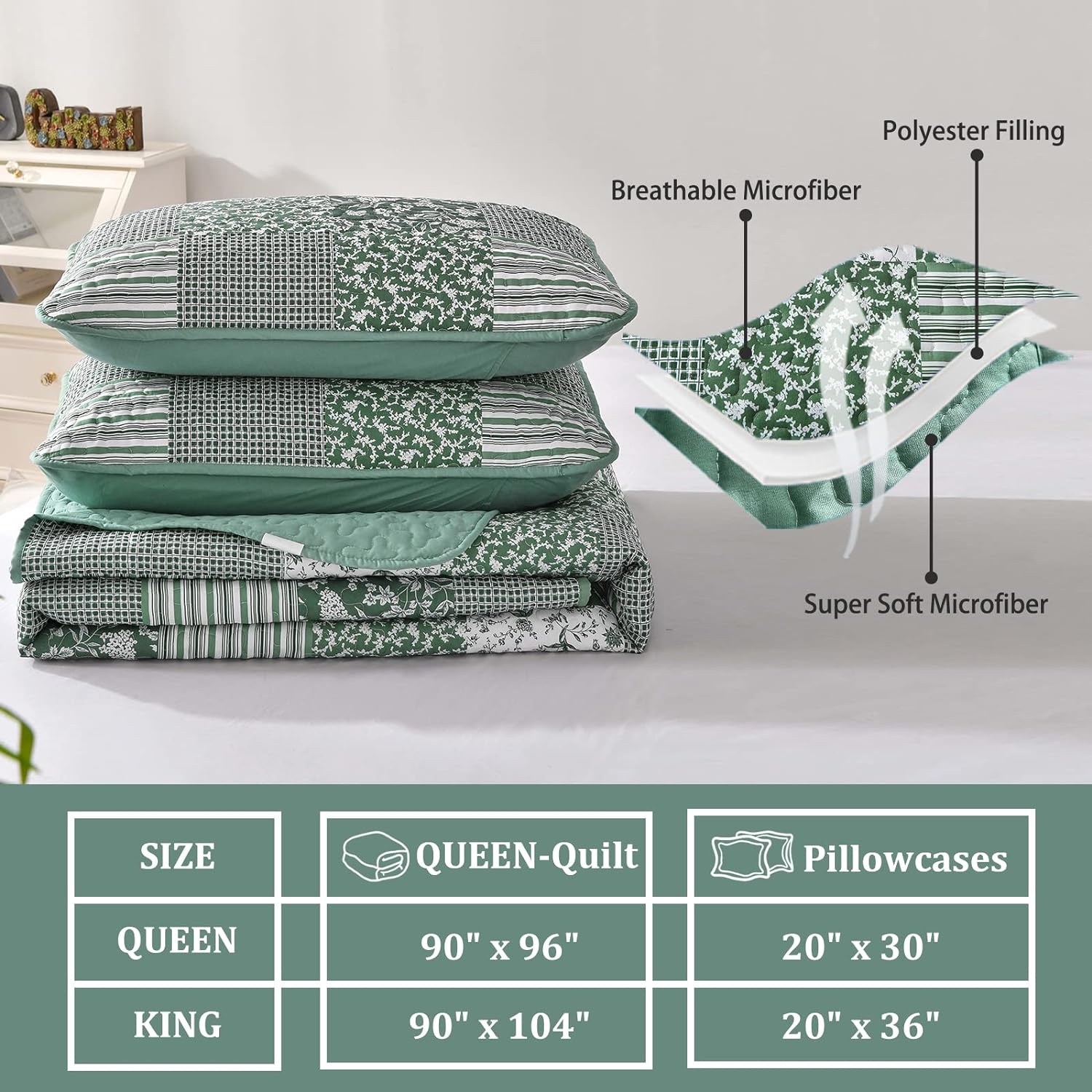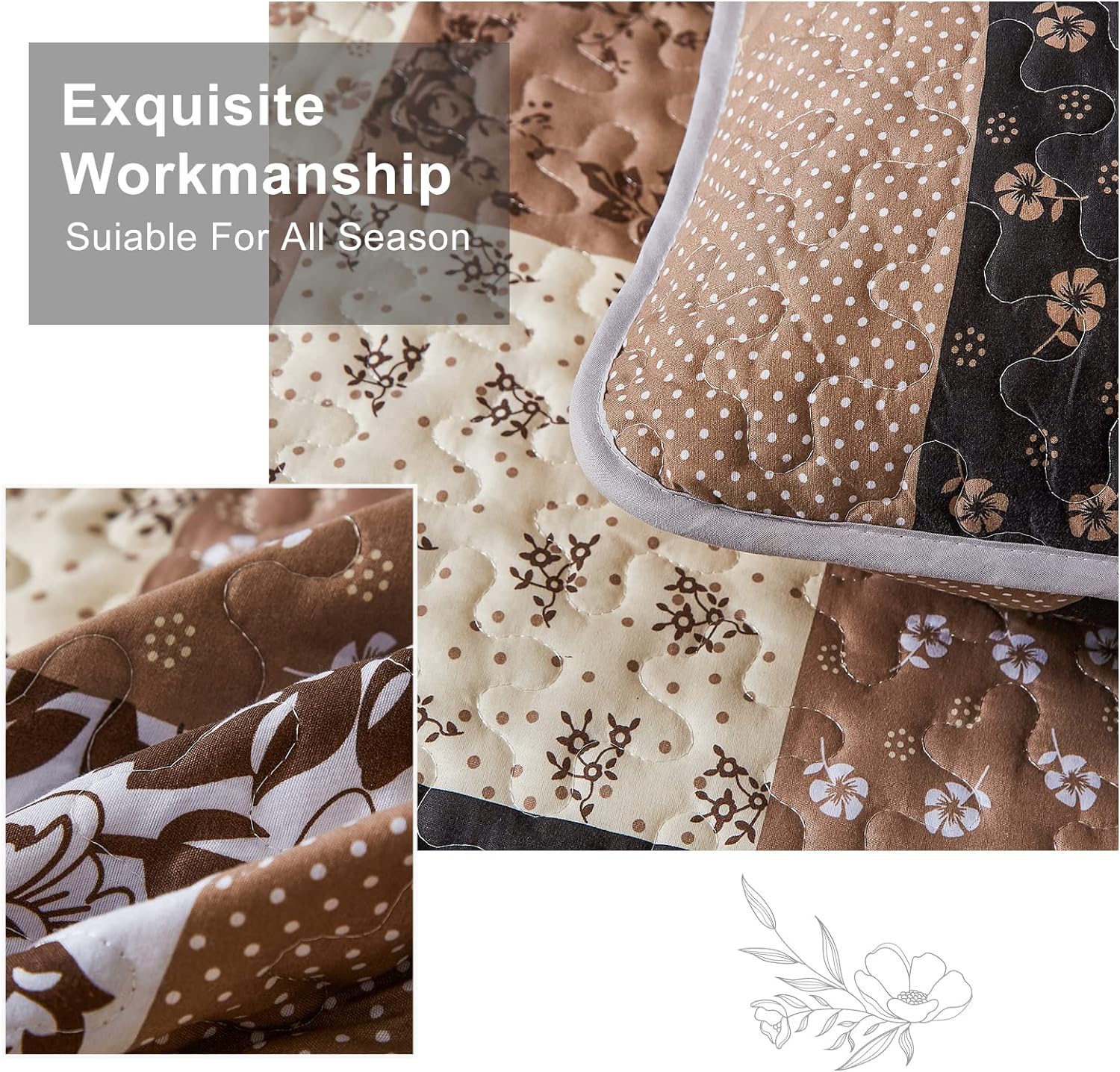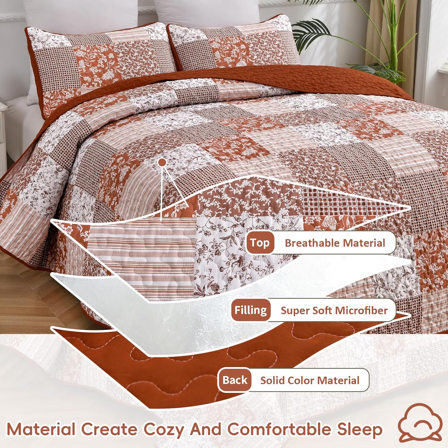 - 【Soft Cozy Microfiber Material】:The patchwork flower quilt set queen size is made of soft microfiber material for softness and comfort,perfect for all year round. This quilt set is reversible, both sides could be used individually.