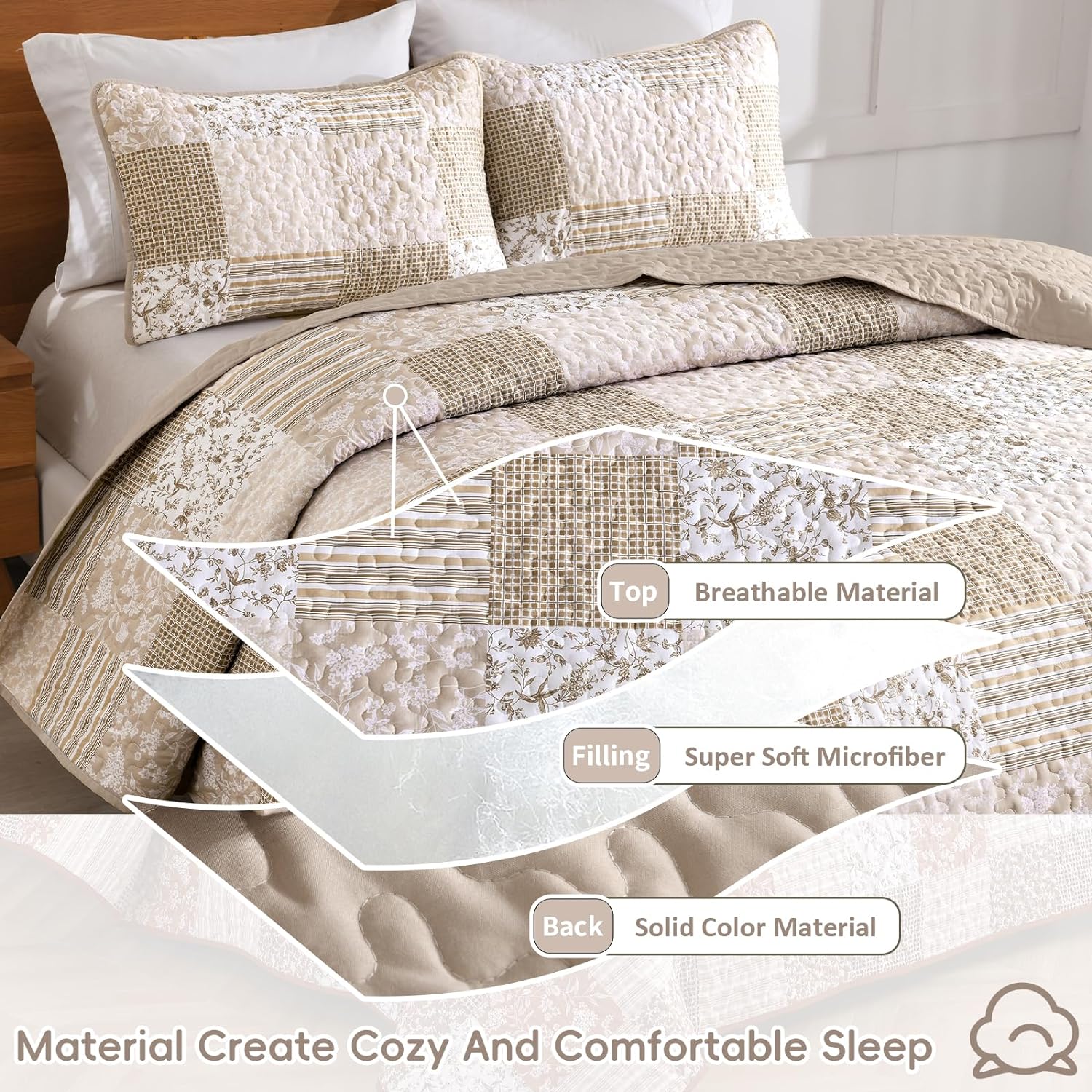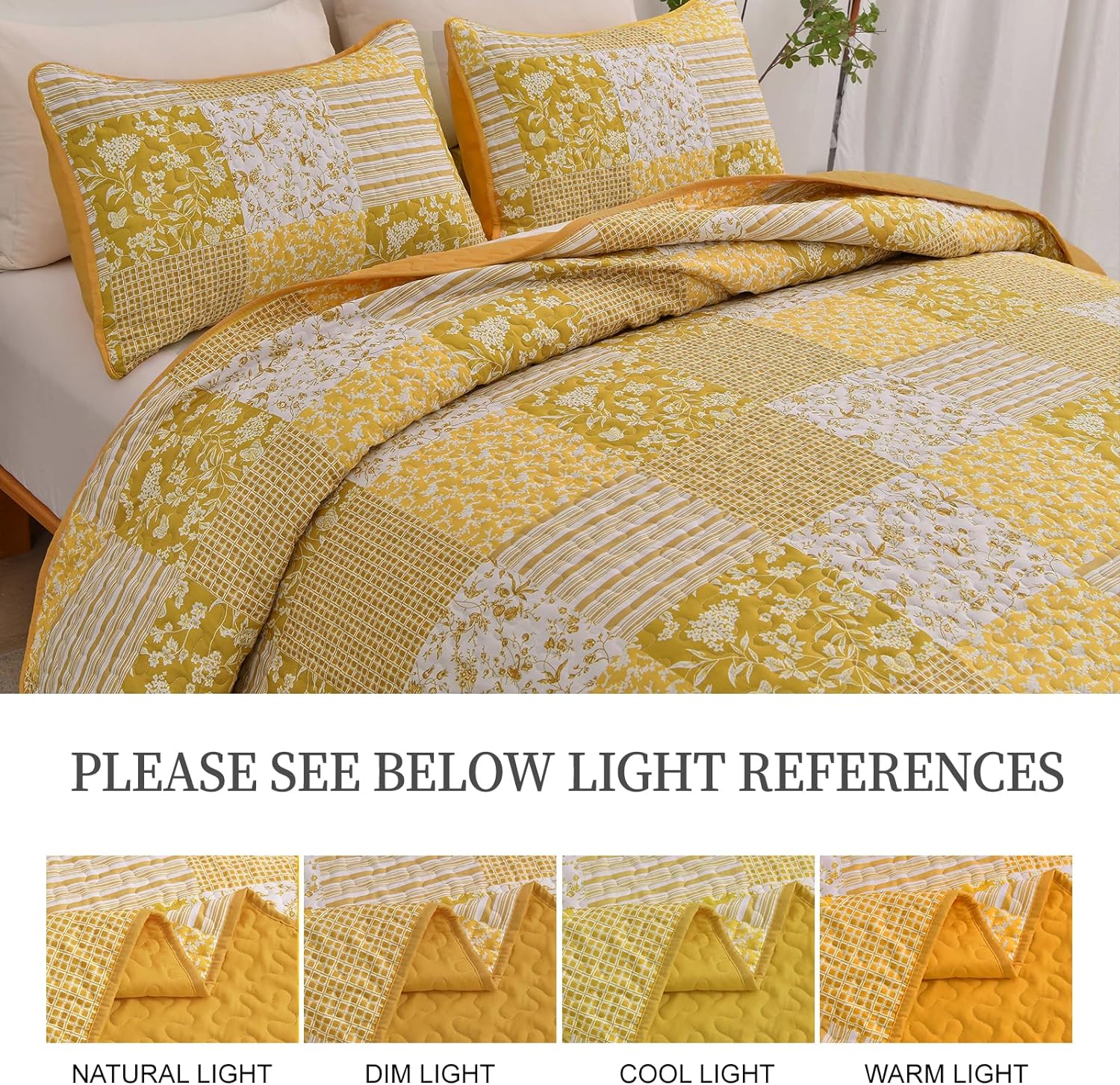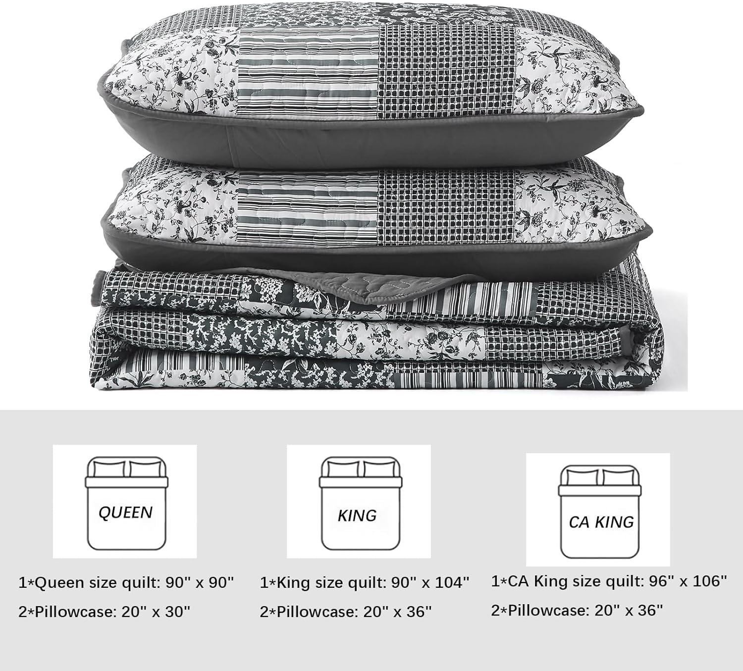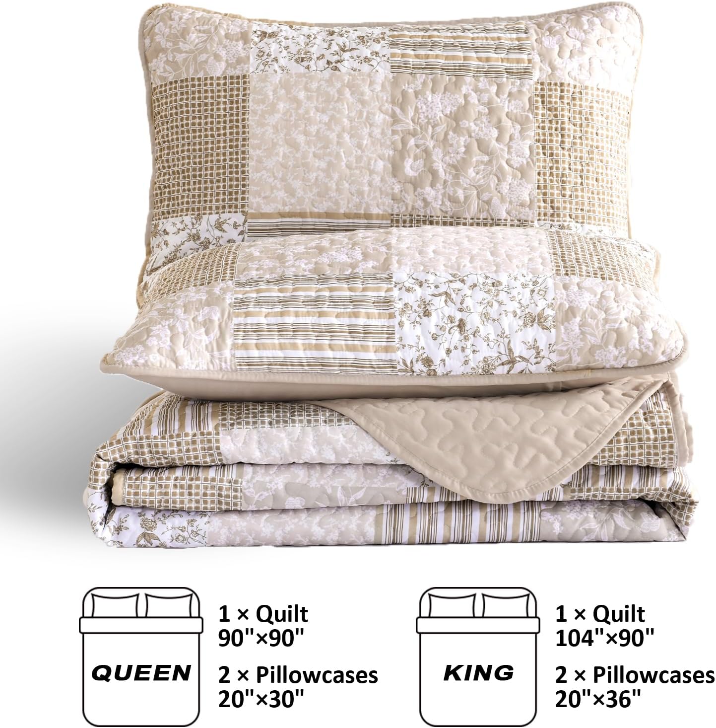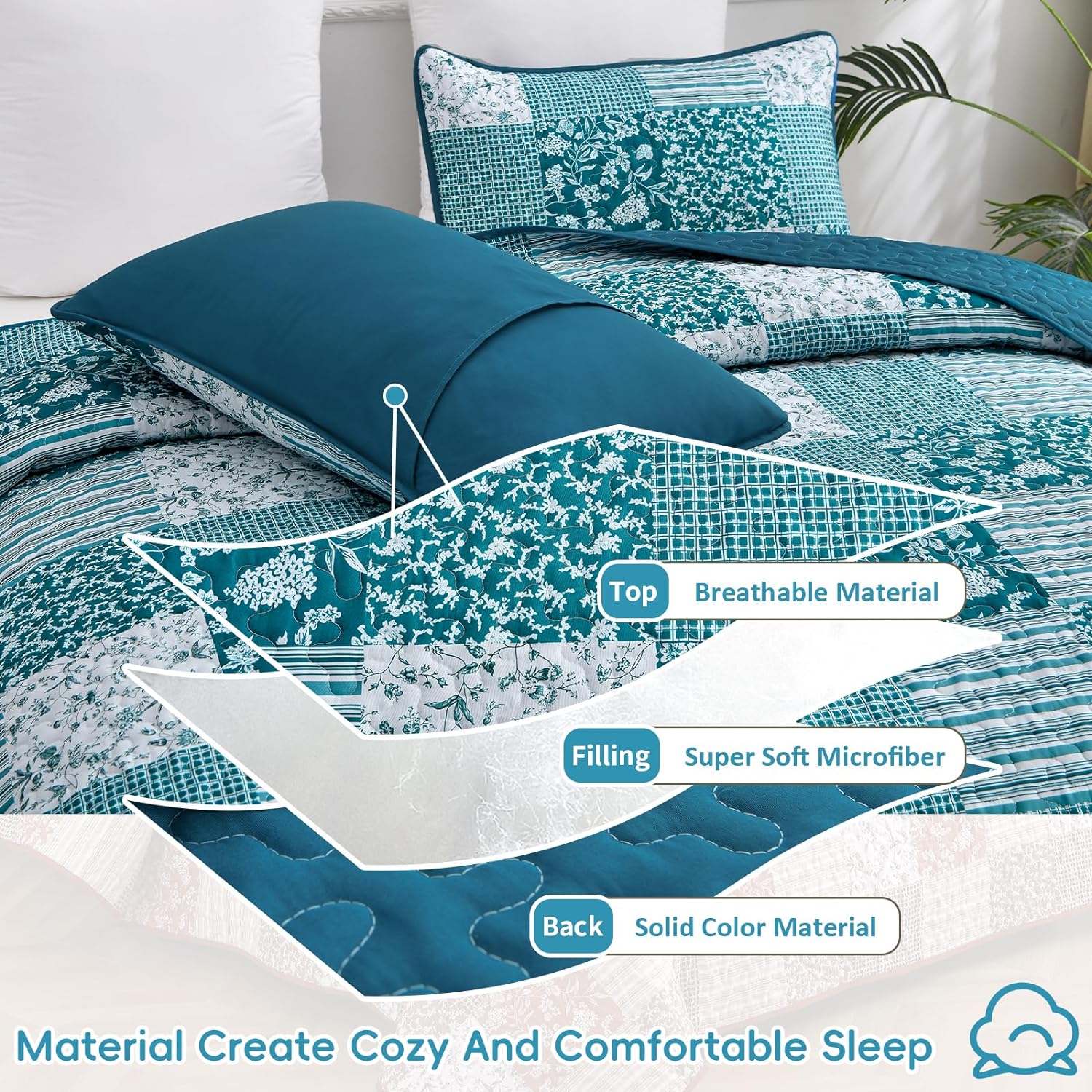 - 【Soft Cozy Microfiber Material】:The patchwork flower quilt set queen size is made of soft microfiber material for softness and comfort,perfect for all year round. This quilt set is reversible, both sides could be used individually.