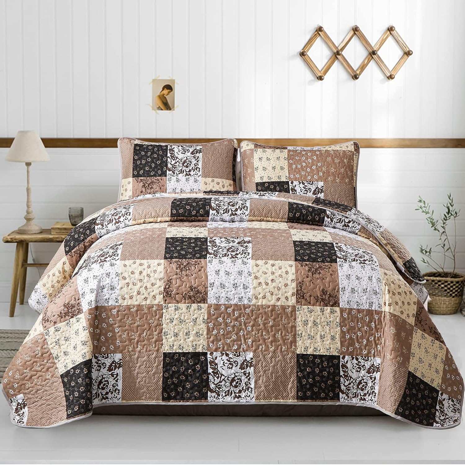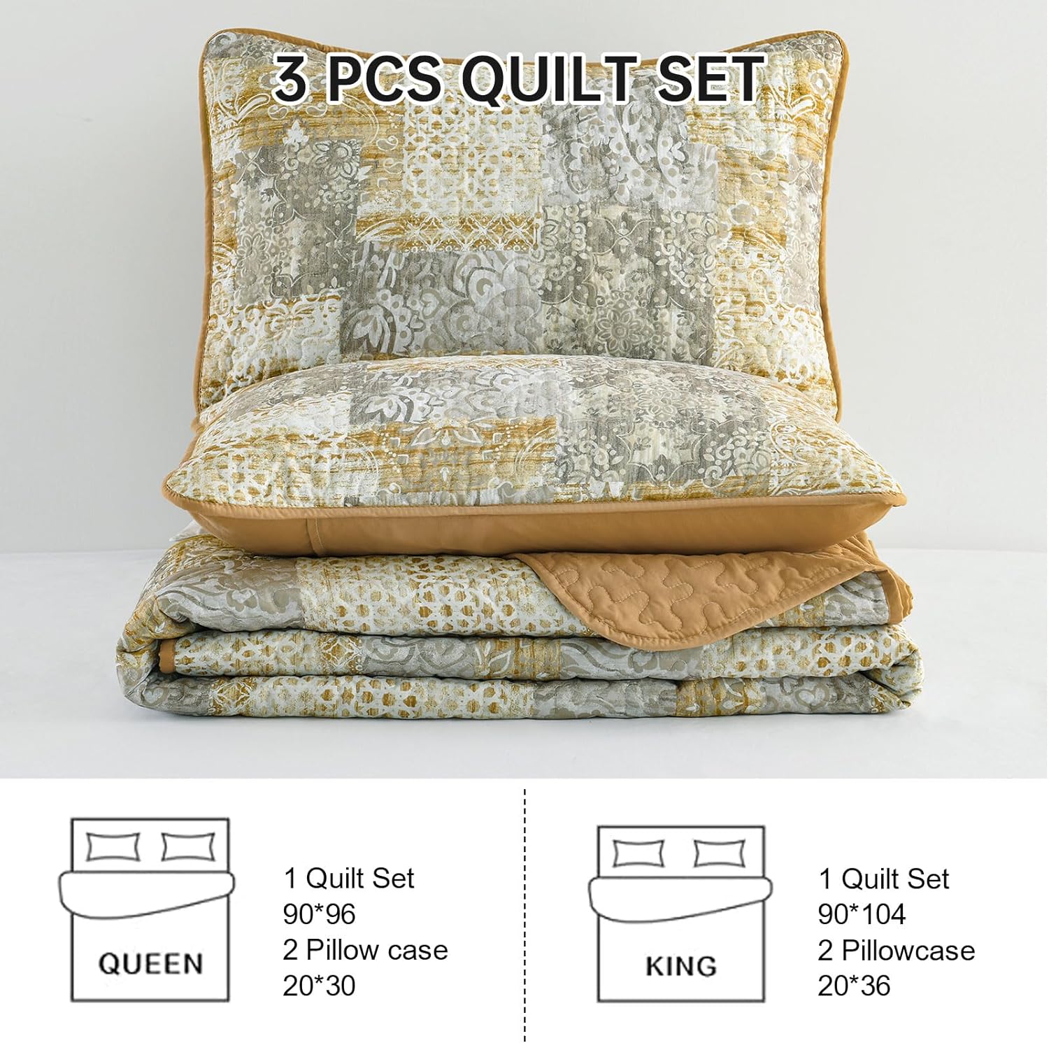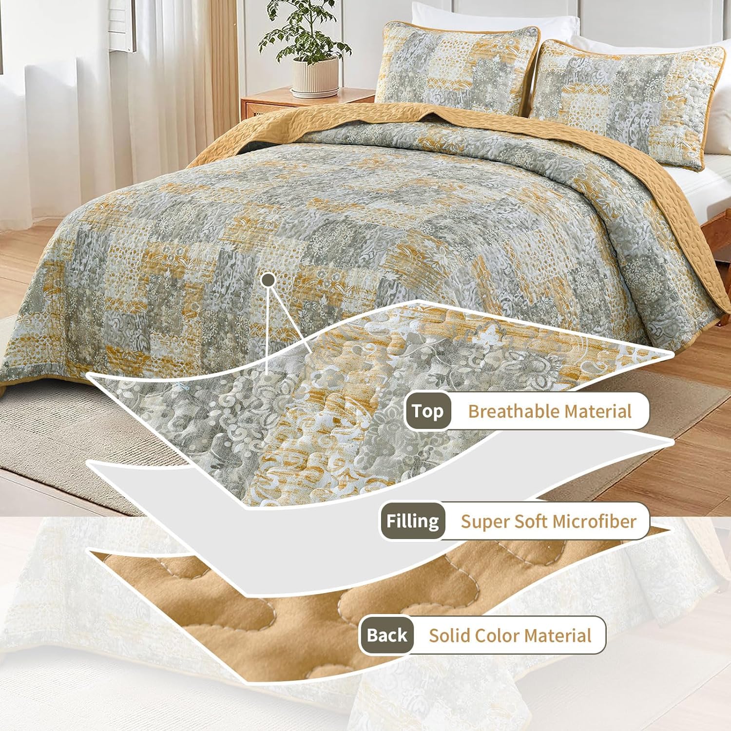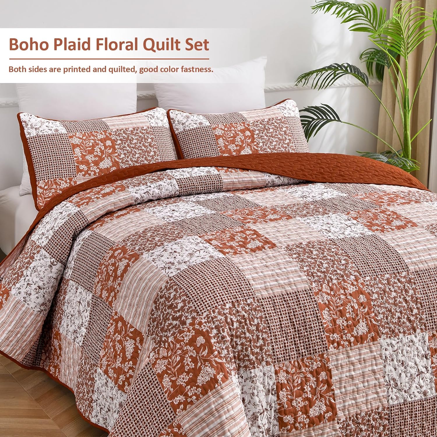 - 【Soft Cozy Microfiber Material】:The patchwork flower quilt set queen size is made of soft microfiber material for softness and comfort,perfect for all year round. This quilt set is reversible, both sides could be used individually.