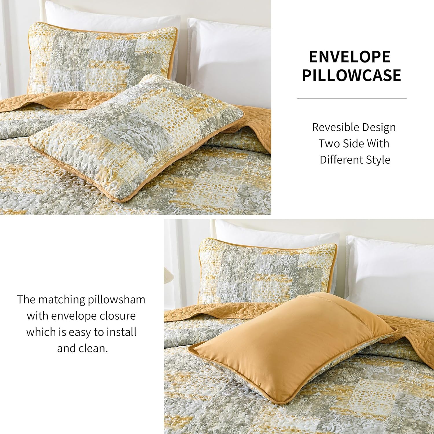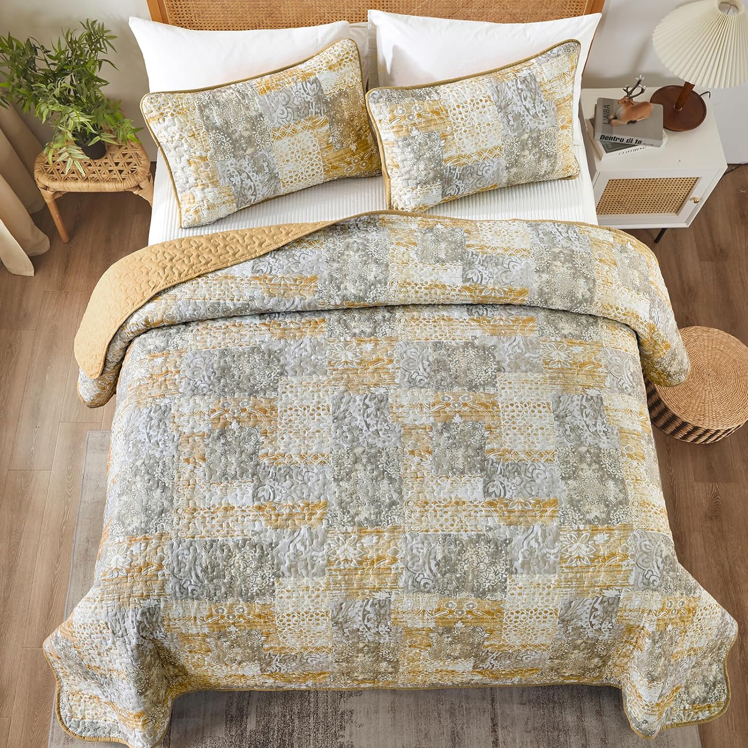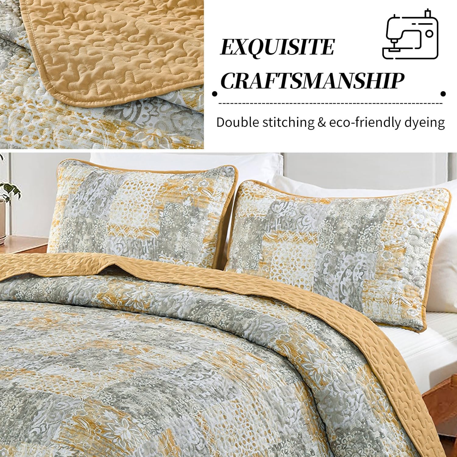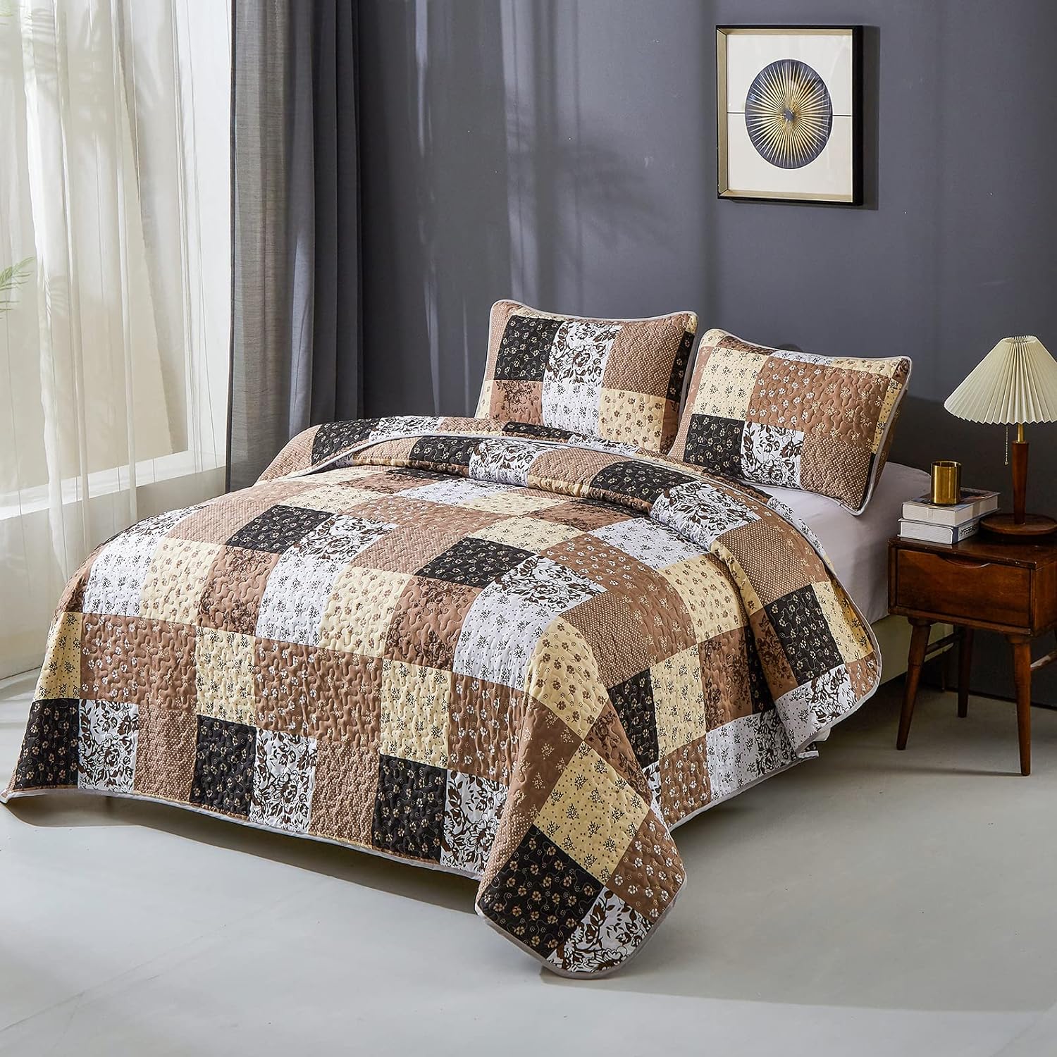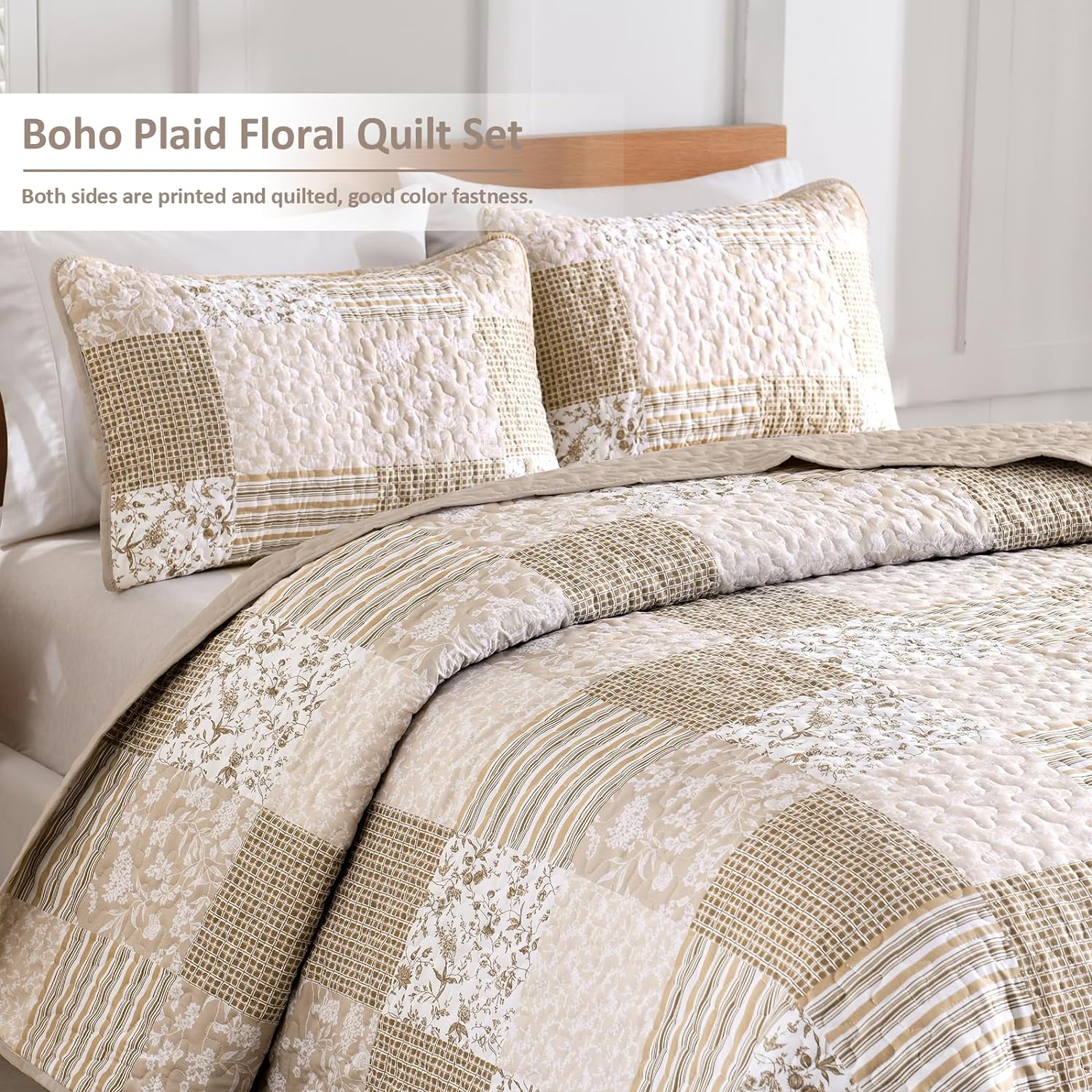 - 【Soft Cozy Microfiber Material】:The patchwork flower quilt set queen size is made of soft microfiber material for softness and comfort,perfect for all year round. This quilt set is reversible, both sides could be used individually.