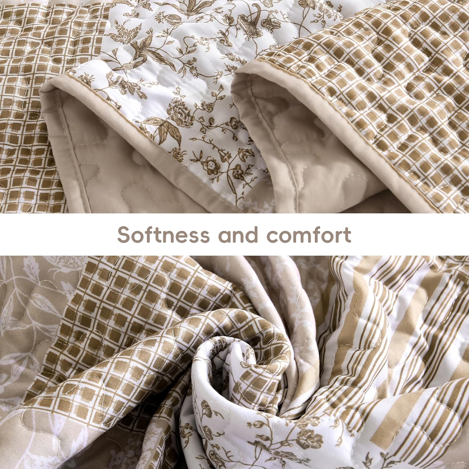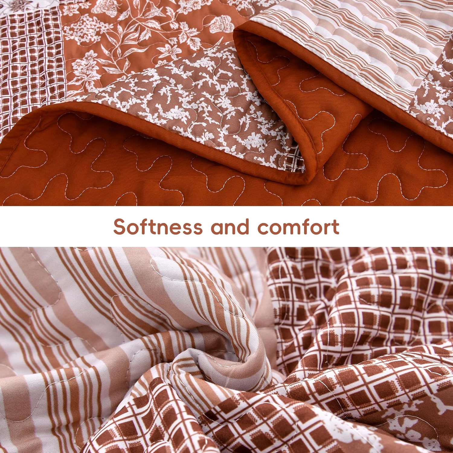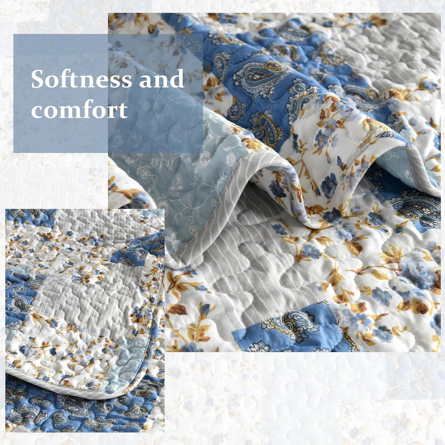- 【Easy Care & Long Lasting】:Soft floral patchwork bedding plaid bedspread coverlet,machine washable in cold water and tumble dry on low, wash separately from different colors.no fade stain, shrink and wrinkle resistant,color will not fade after washing,soft microfiber material can keep the shape and softer after washing repeatedly.