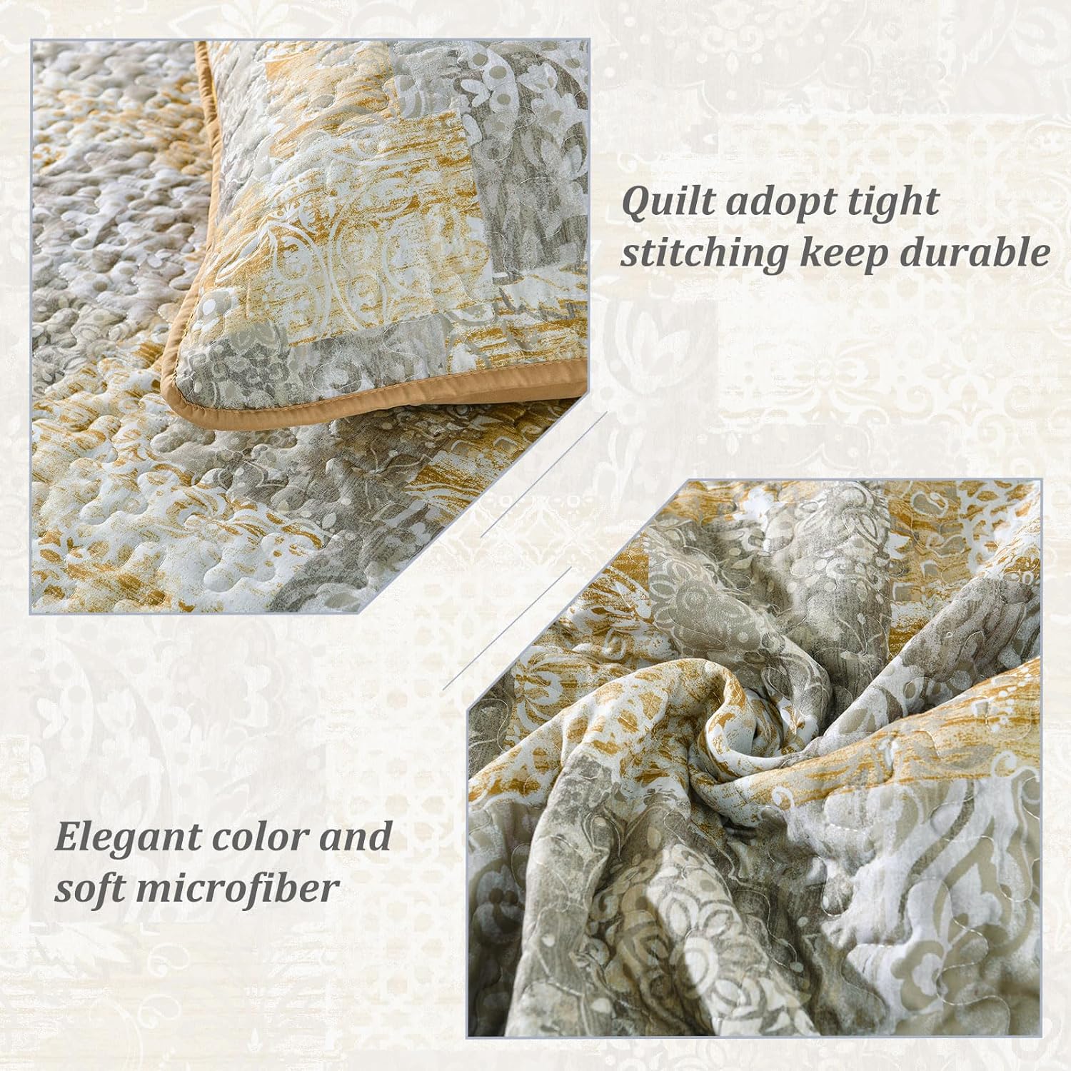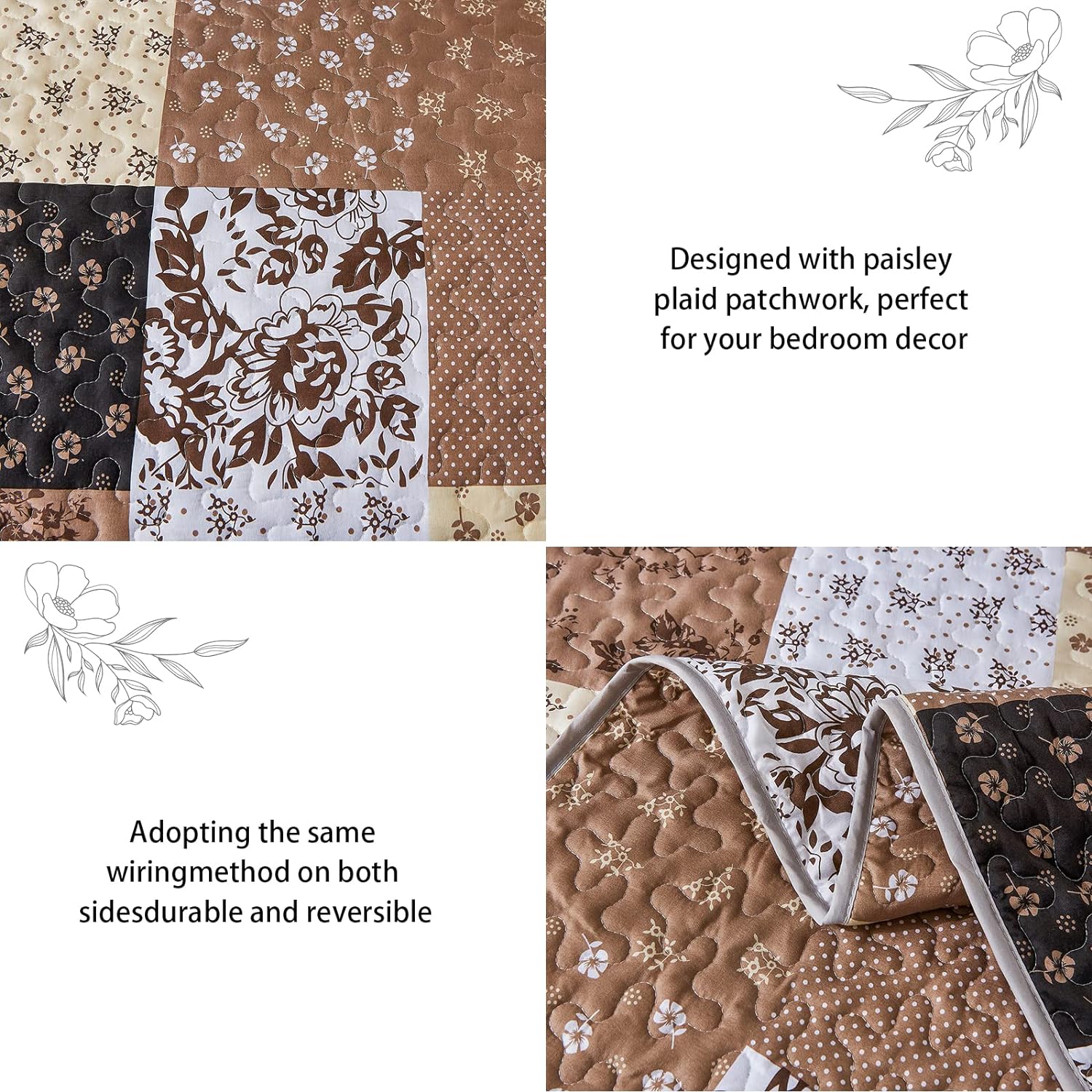 - 【Floral Patchwork Design】:The combination of floral and paisley prints further embellish the washed patchwork design to make it more beautiful. Charming and elegant, this washed patchwork quilt set is the perfect centerpiece for your bedroom decor.