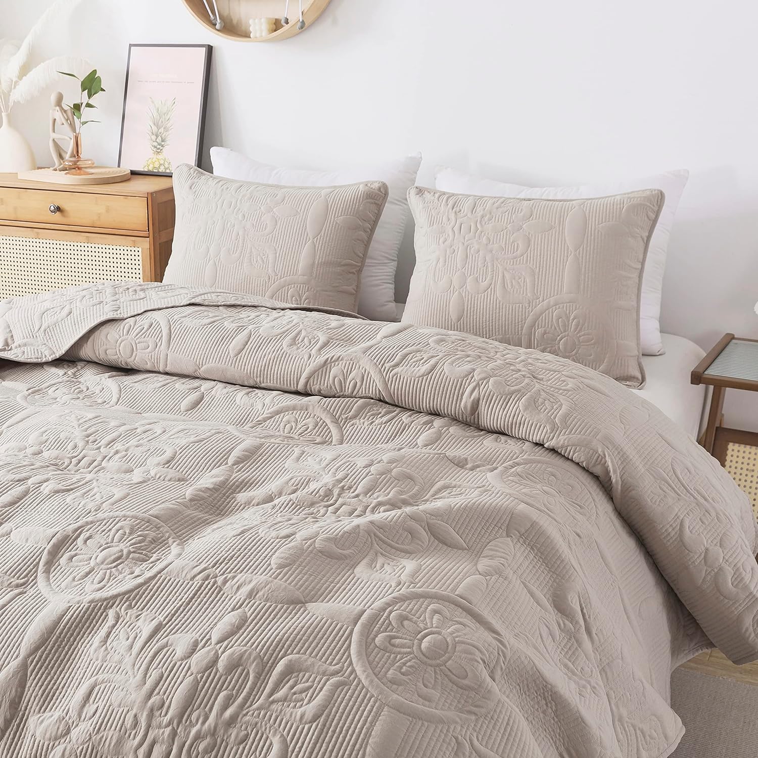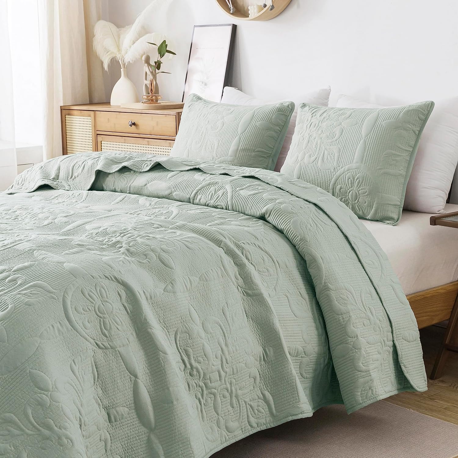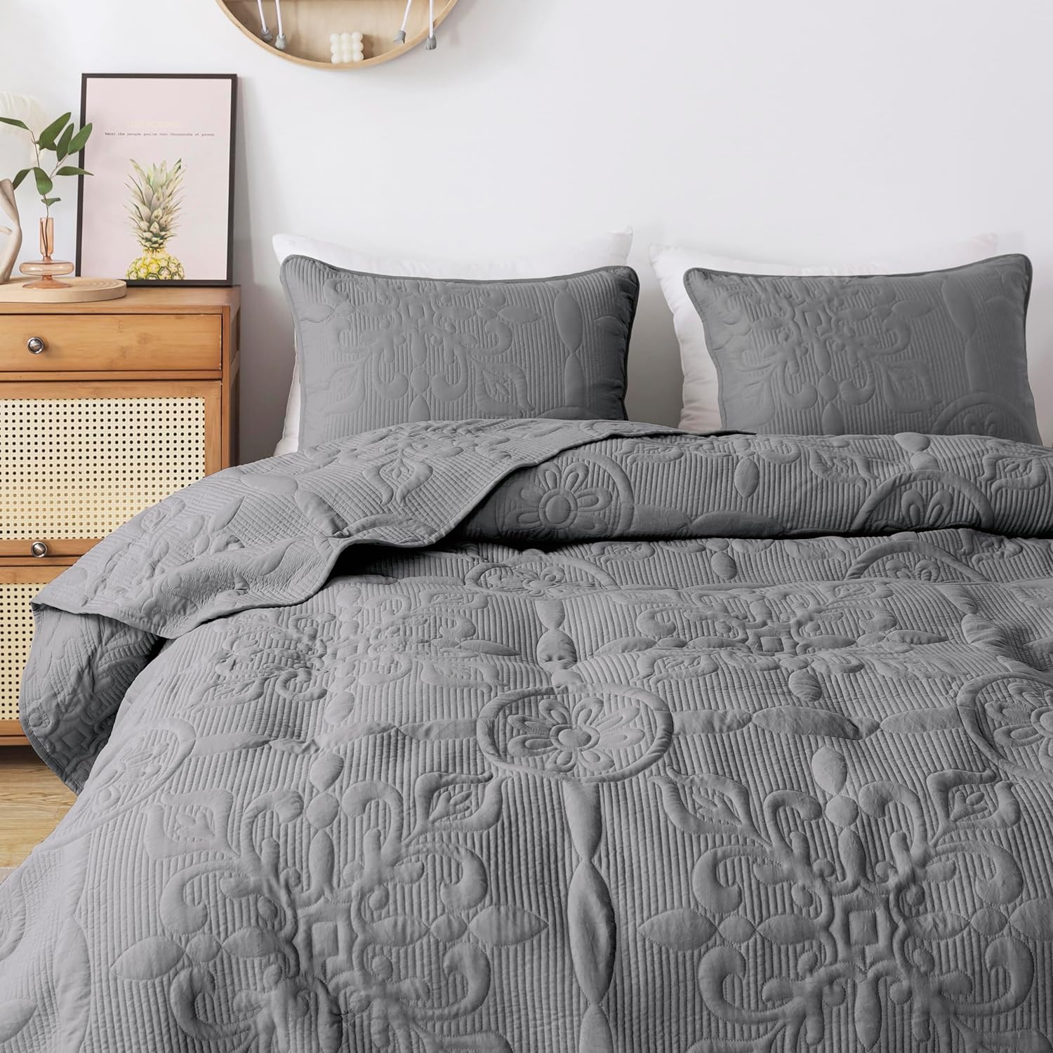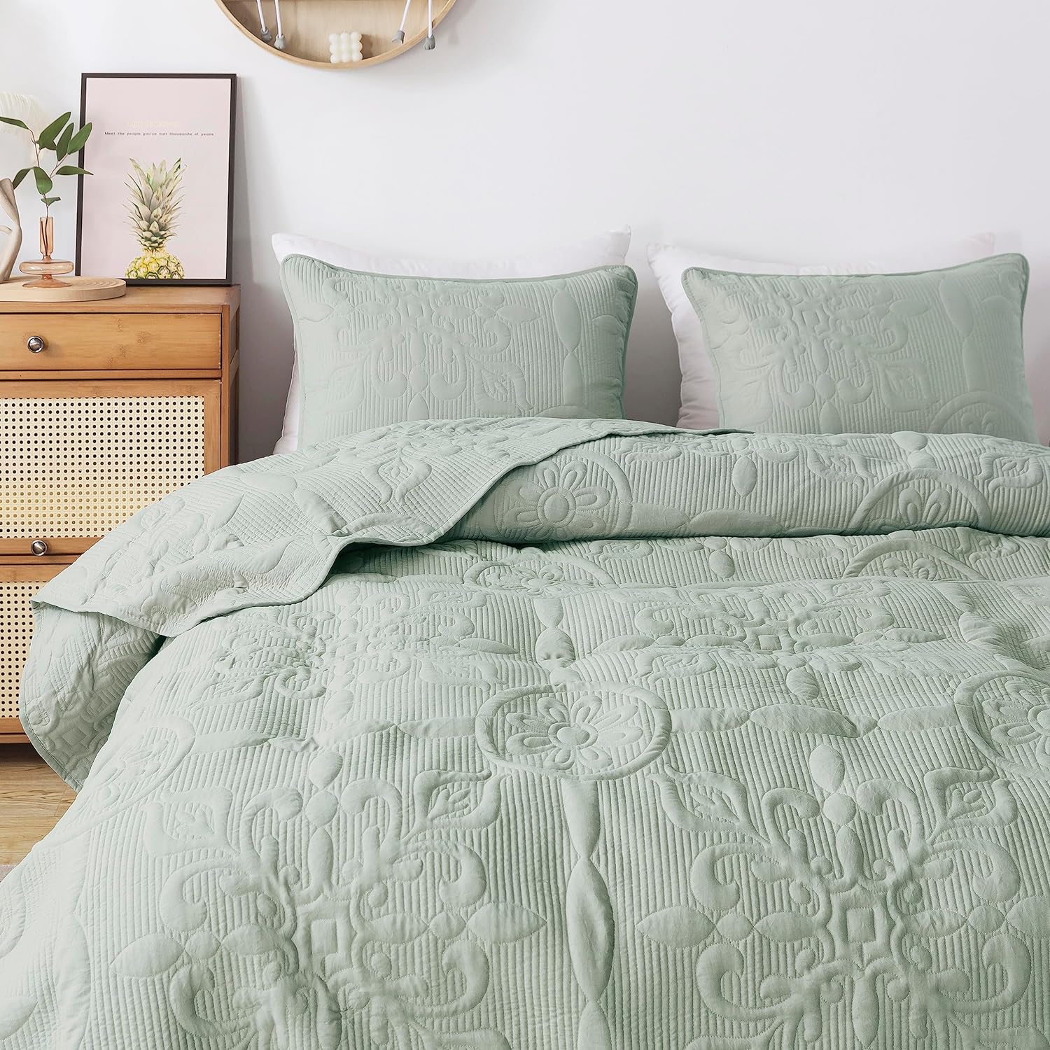 - High material: 100% microfiber polyester, more durable, soft and cozy, skin friendly ultrasonic quilt sets, lightweight quilt twin size bedspread coverlet set.
