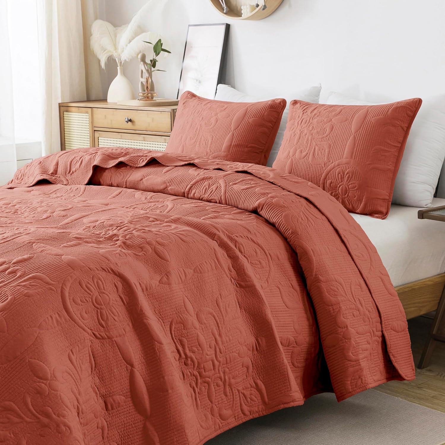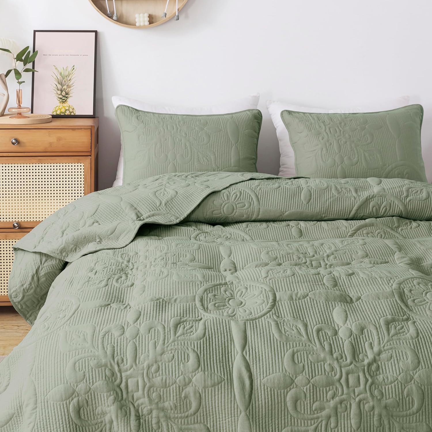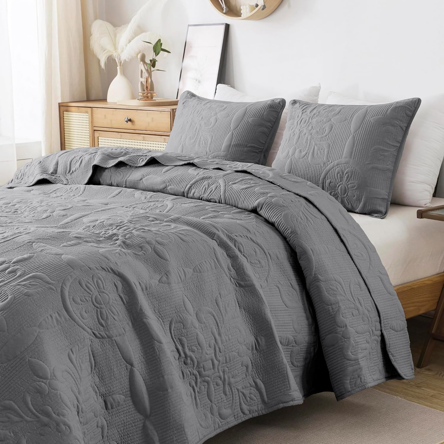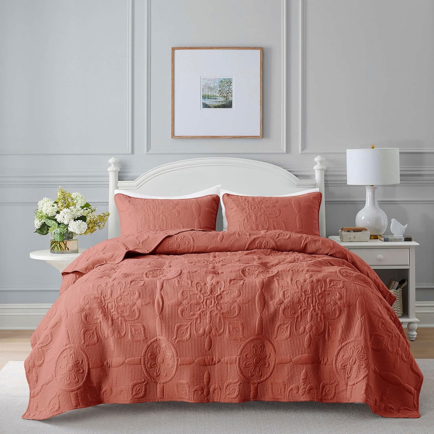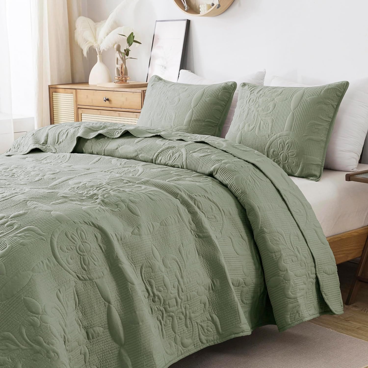 - High material: 100% microfiber polyester, more durable, soft and cozy, skin friendly ultrasonic quilt sets, lightweight quilt twin size bedspread coverlet set.