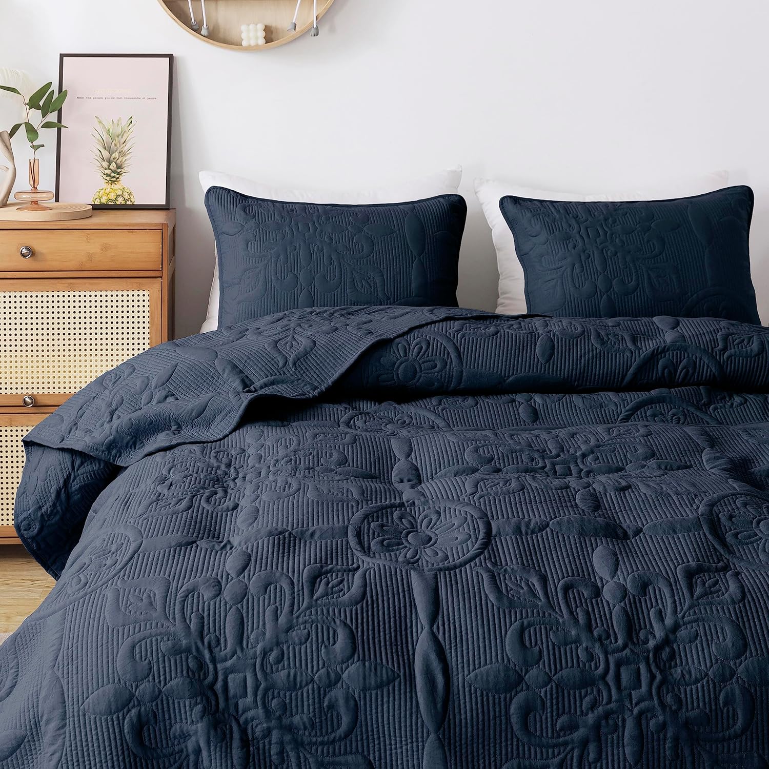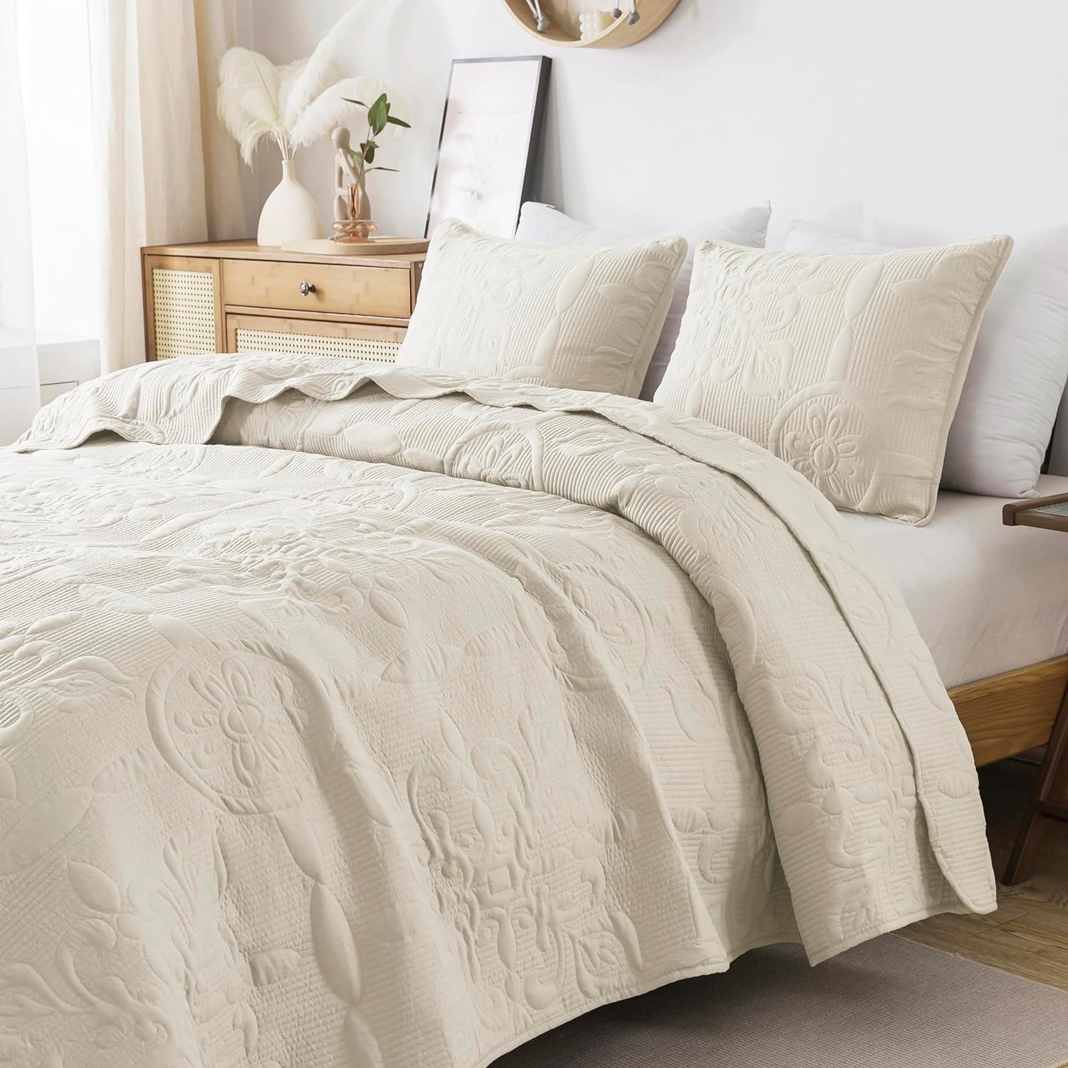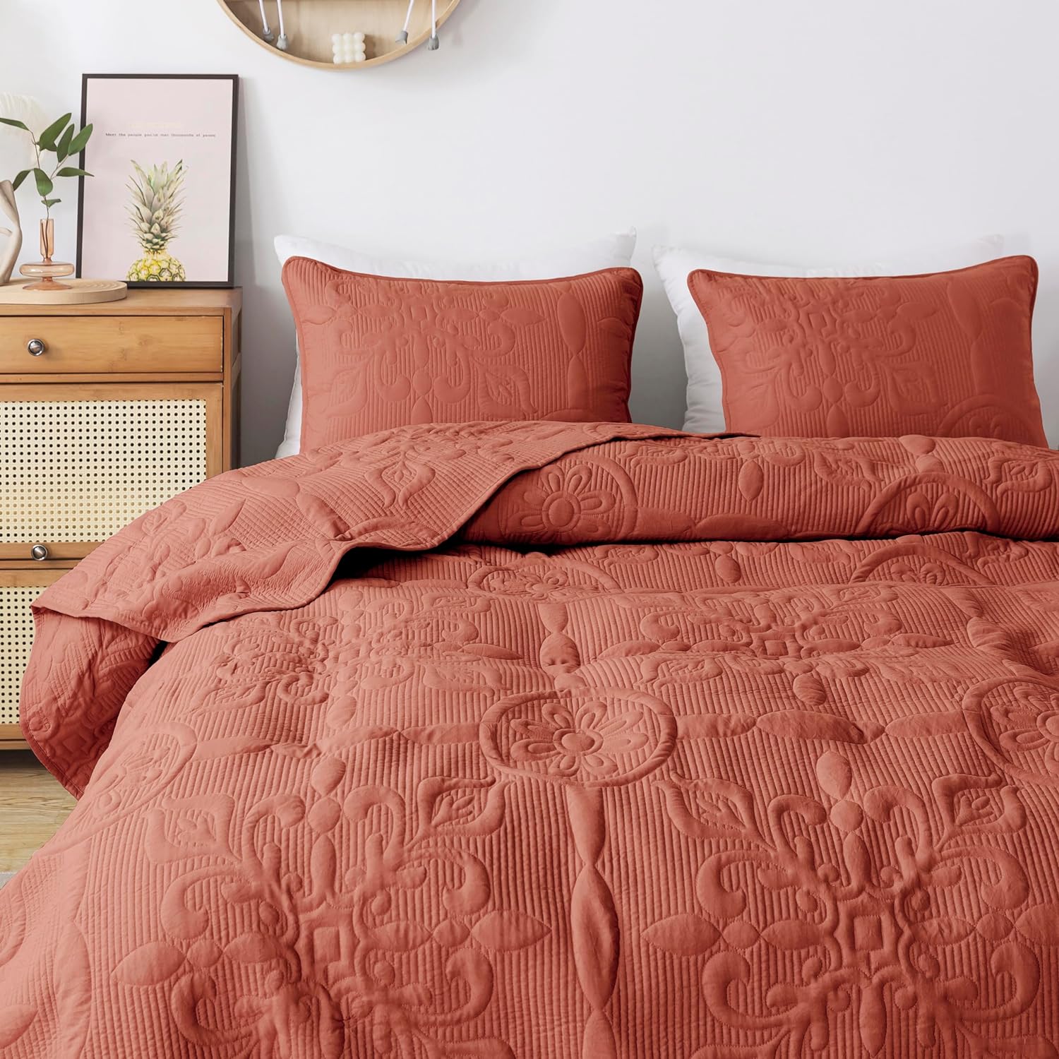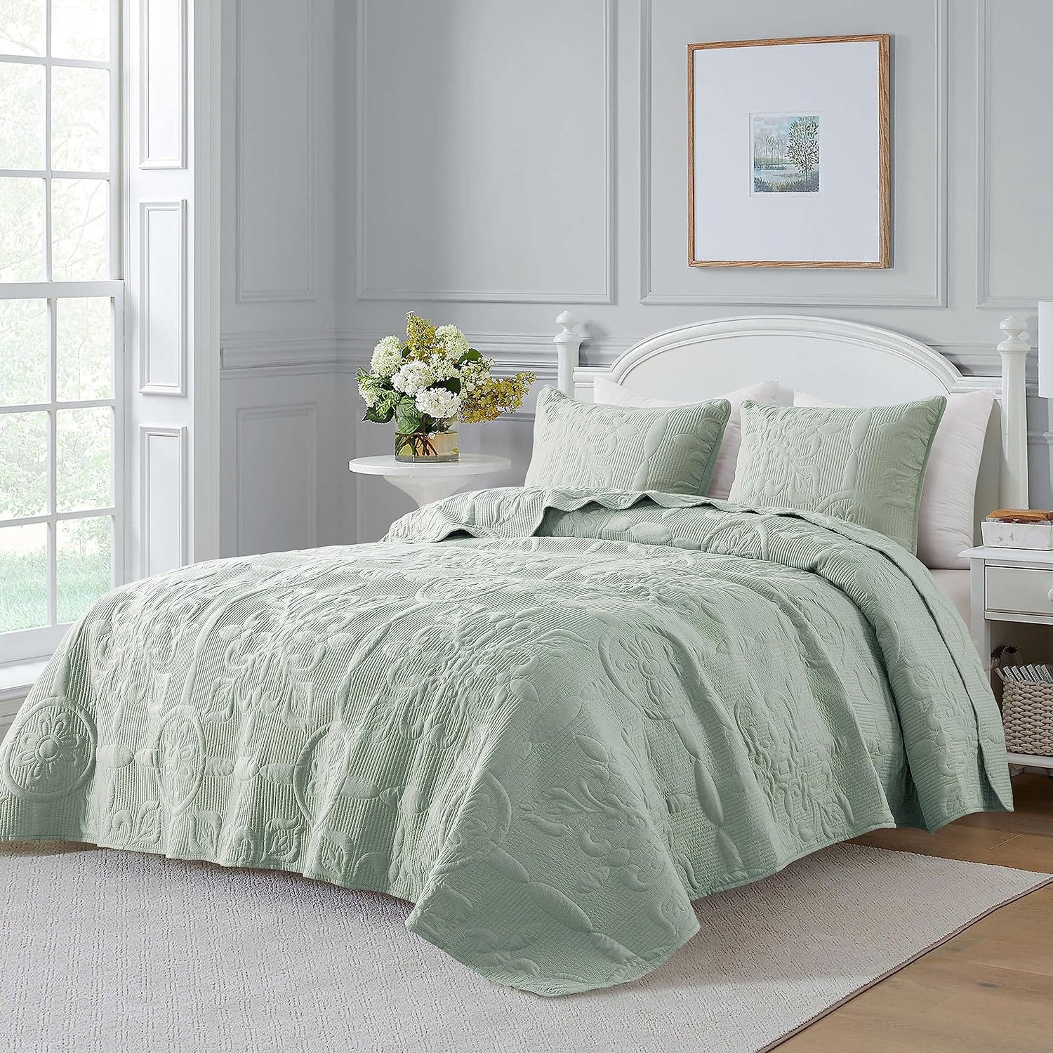 - High material: 100% microfiber polyester, more durable, soft and cozy, skin friendly ultrasonic quilt sets, lightweight quilt twin size bedspread coverlet set.