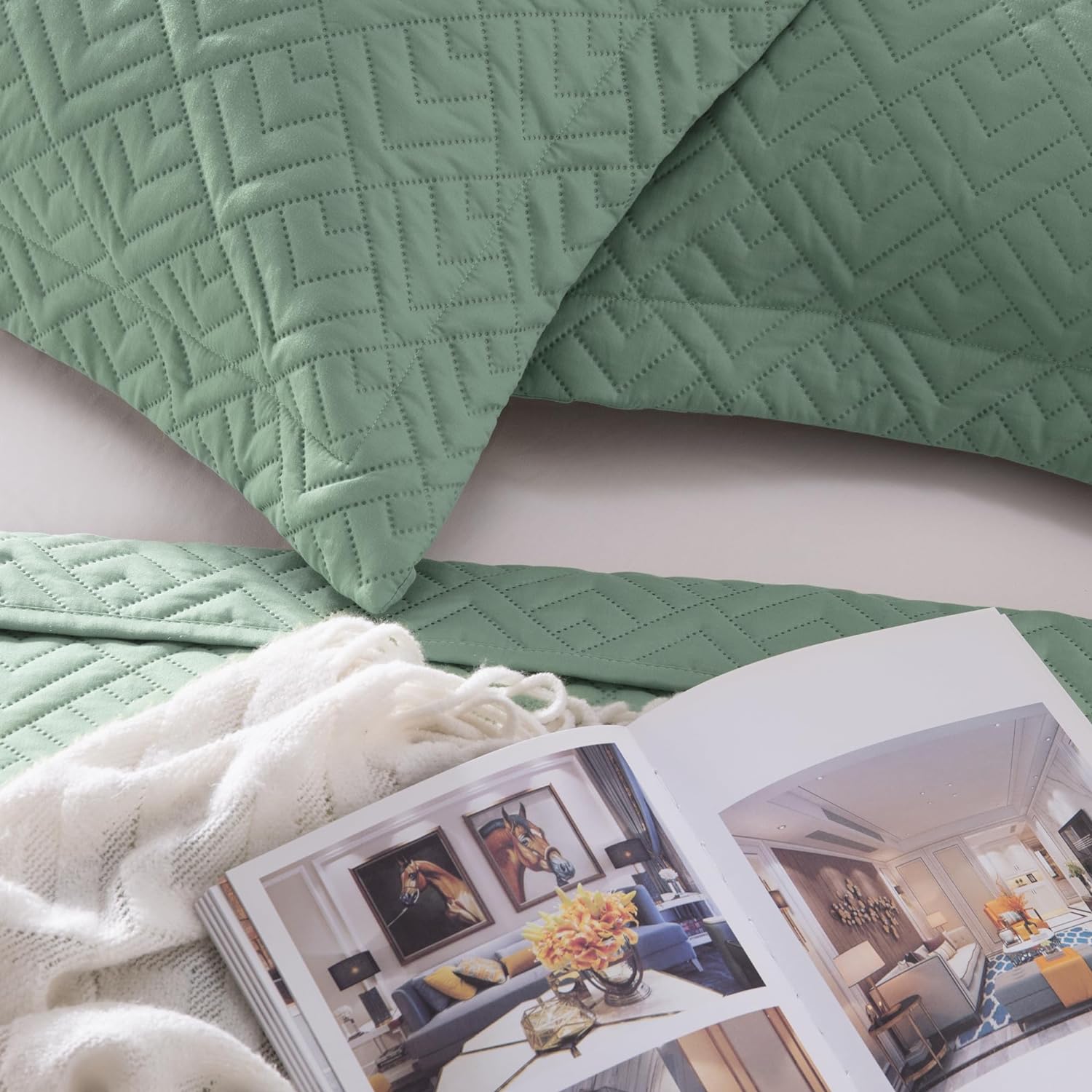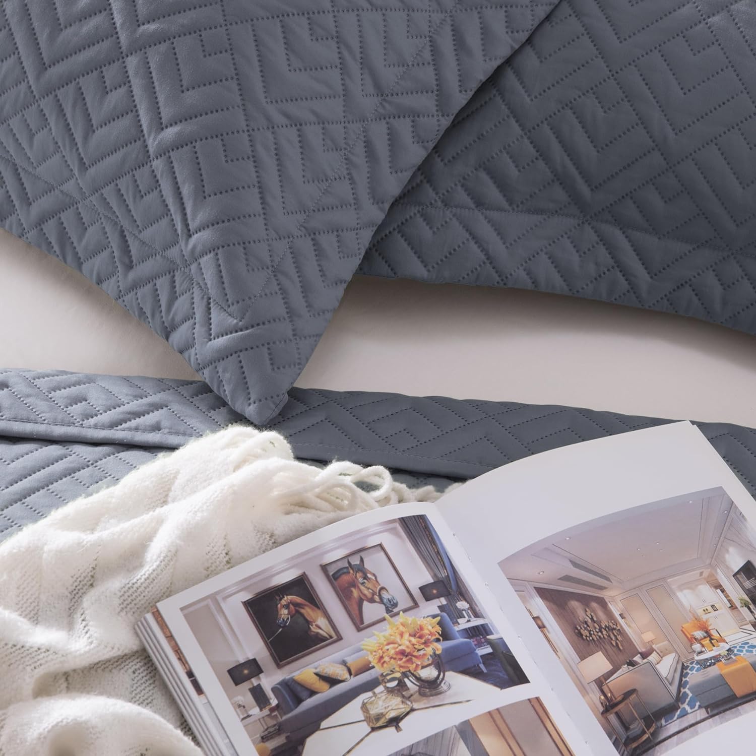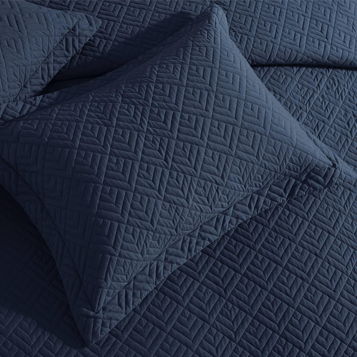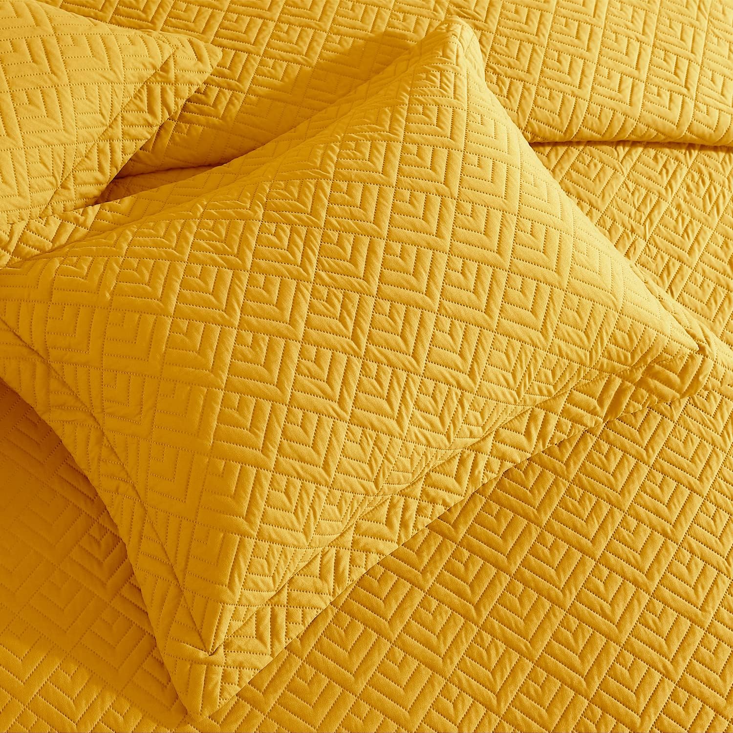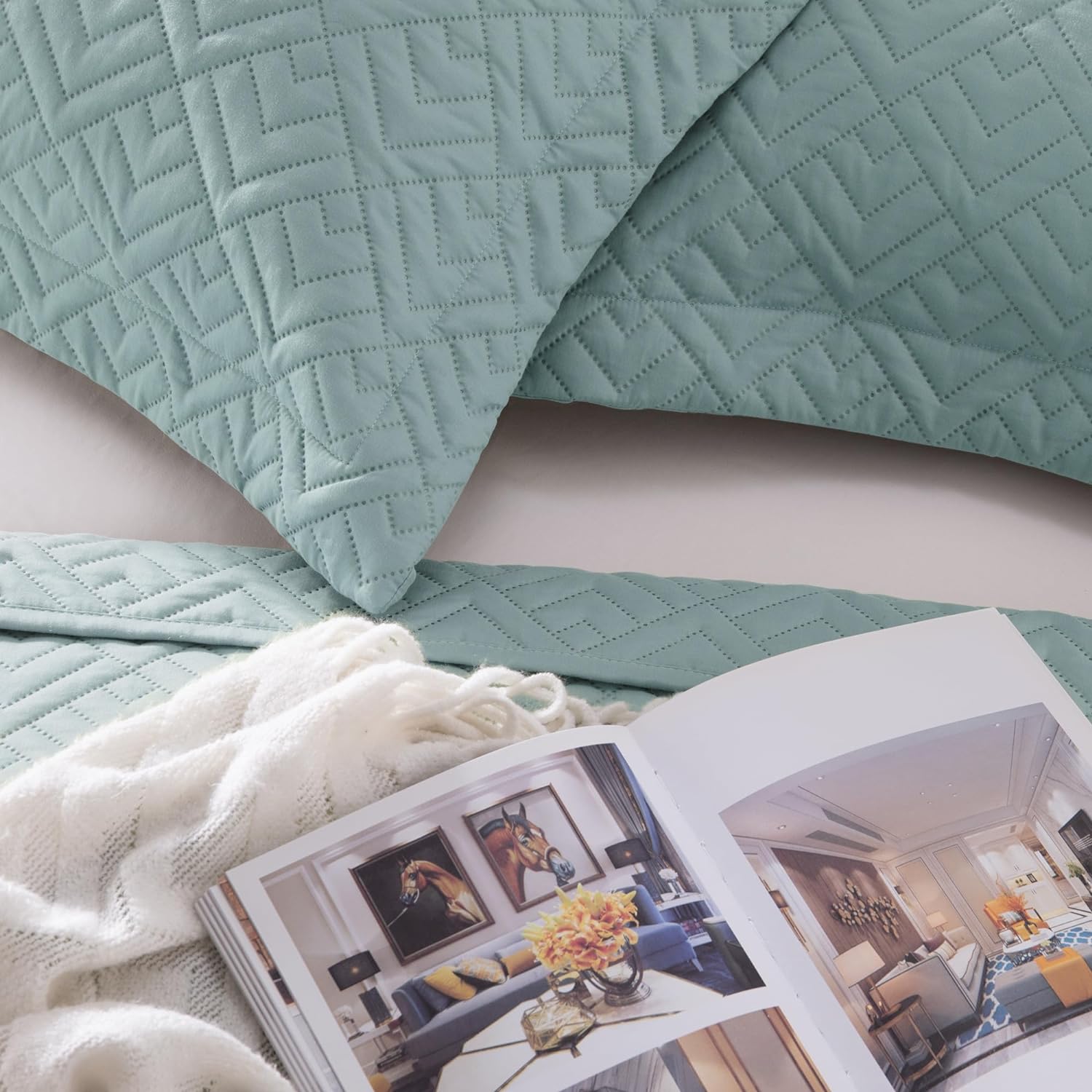- Unique Design: The combination of solid color base and classic geometric pattern makes the quilt set more elegant and modern. Exquisite ultrasonic pressing process avoids thread and disconnection,keeping the quilt delicate.A premium bedding decorctive for your room.