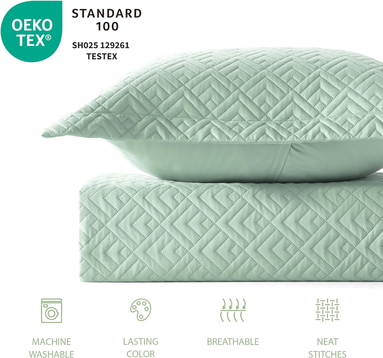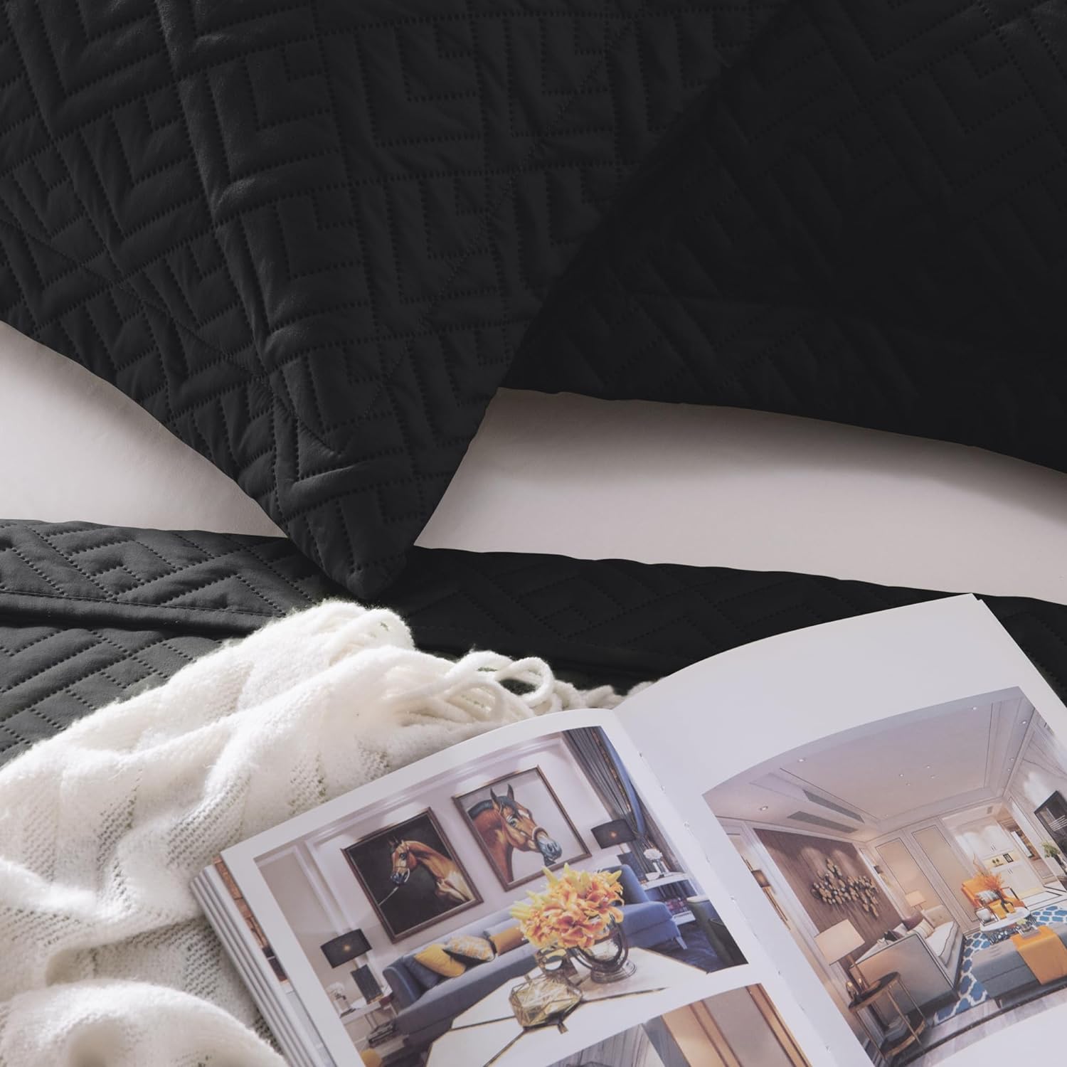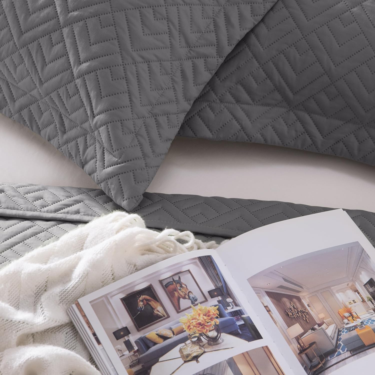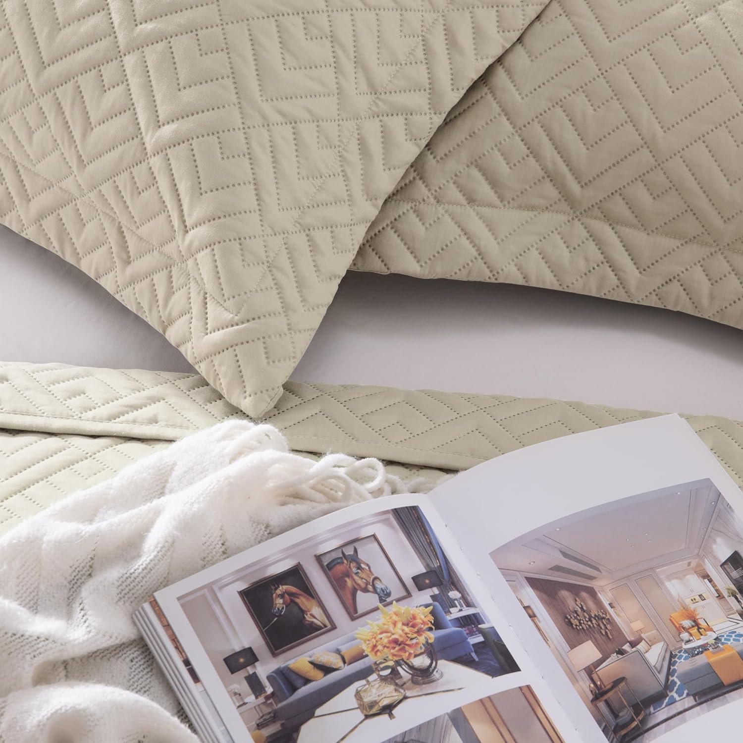 - Unique Design: The combination of solid color base and classic geometric pattern makes the quilt set more elegant and modern. Exquisite ultrasonic pressing process avoids thread and disconnection,keeping the quilt delicate.A premium bedding decorctive for your room.