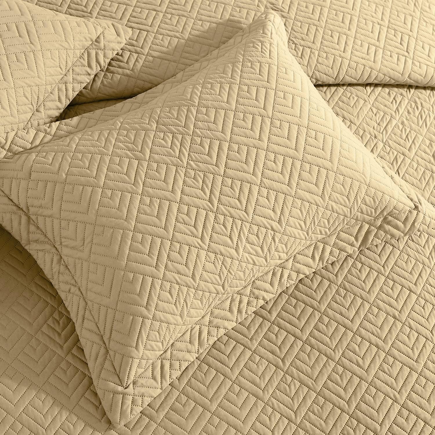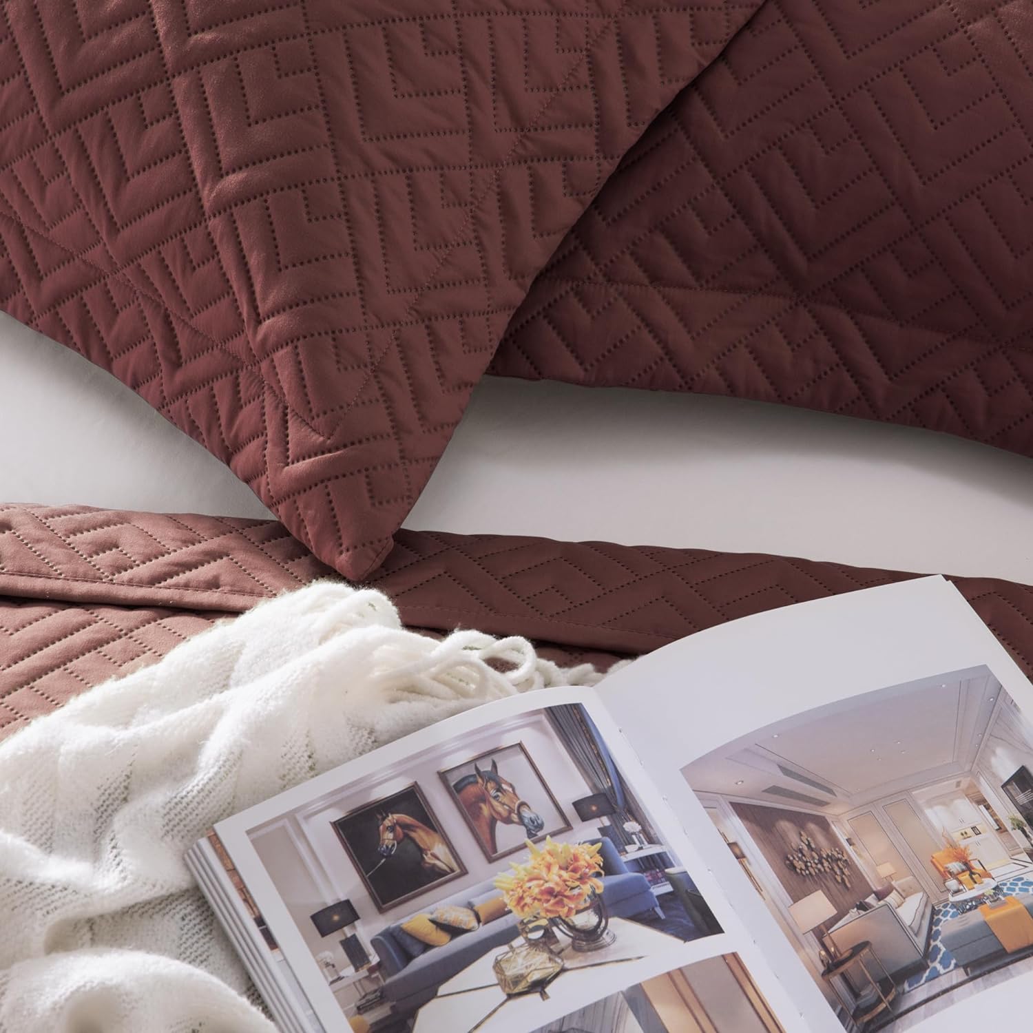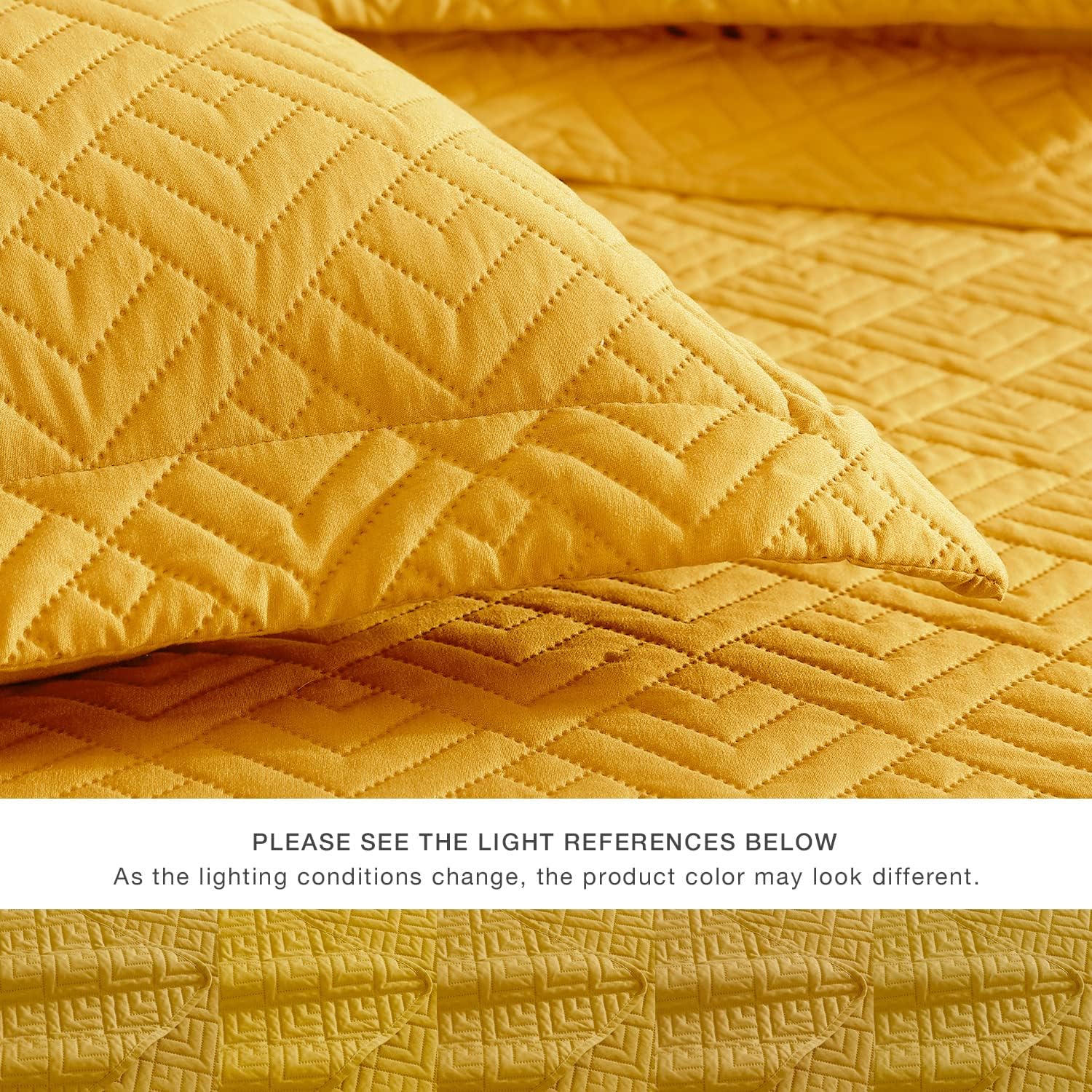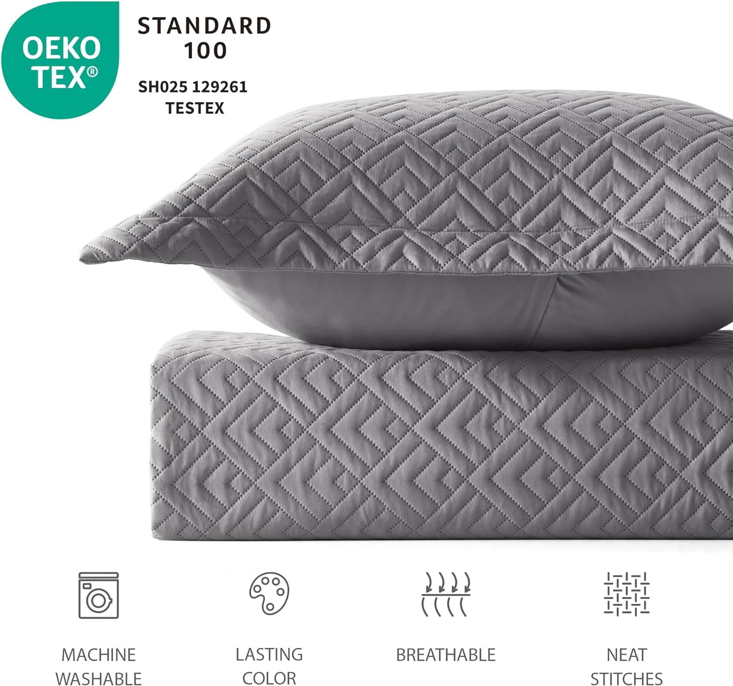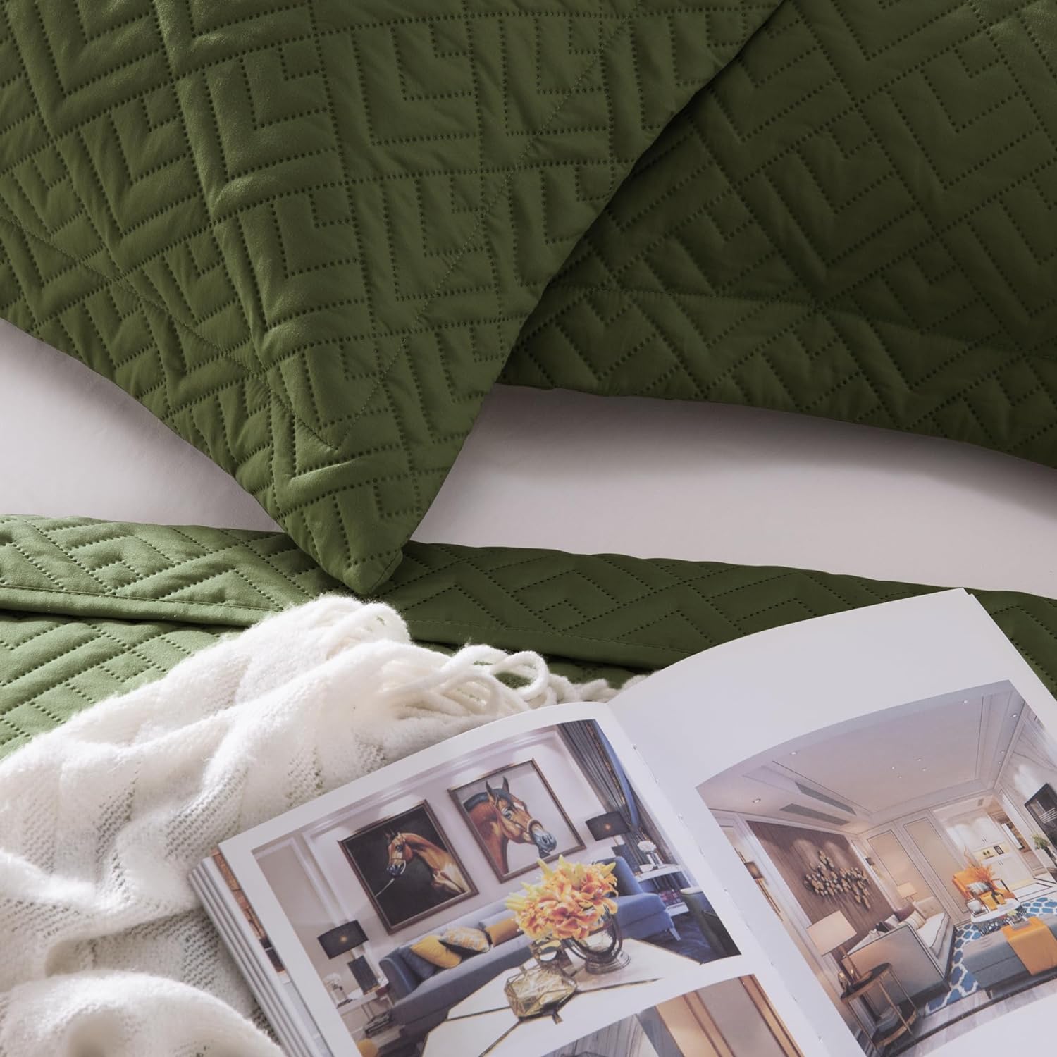- Unique Design: The combination of solid color base and classic geometric pattern makes the quilt set more elegant and modern. Exquisite ultrasonic pressing process avoids thread and disconnection,keeping the quilt delicate.A premium bedding decorctive for your room.