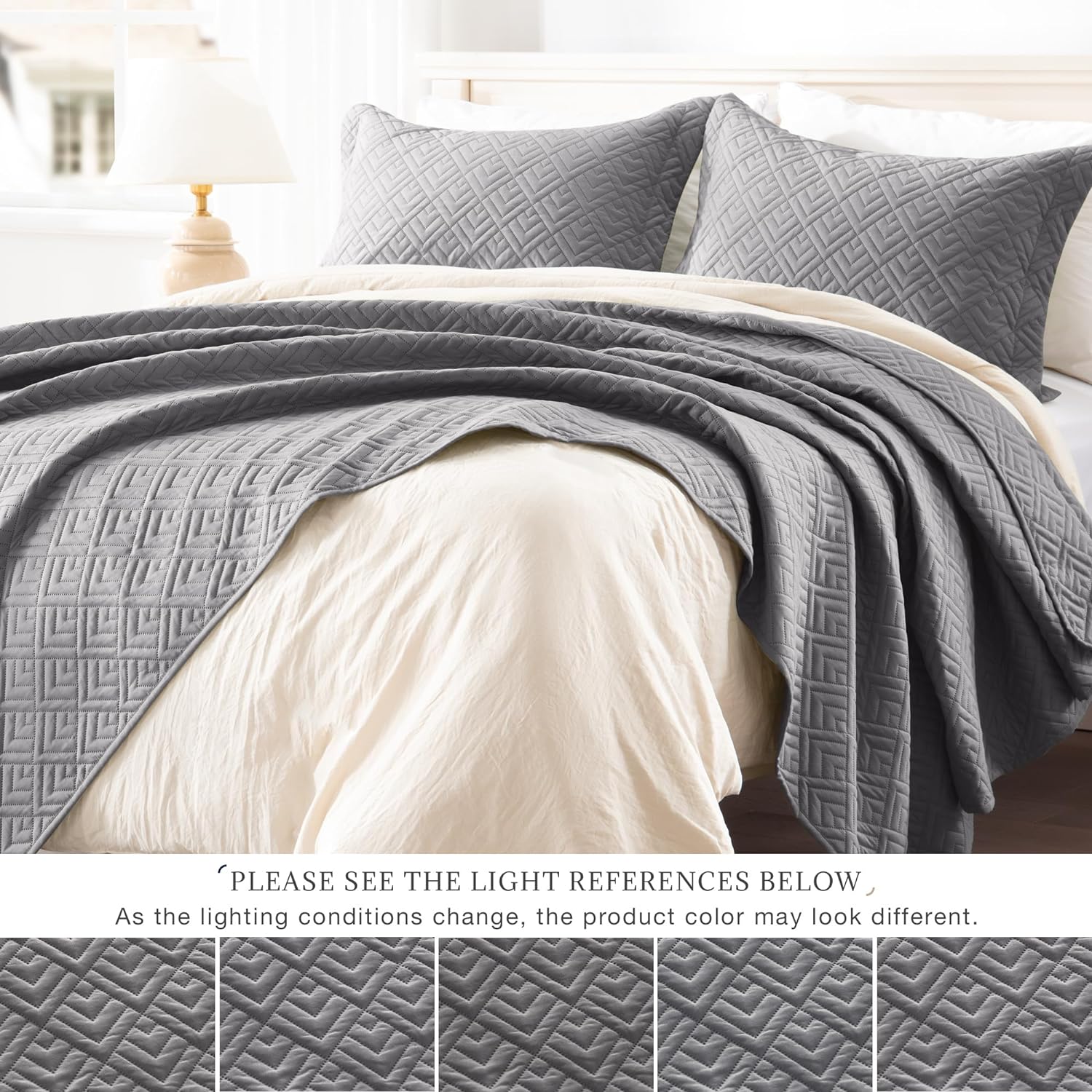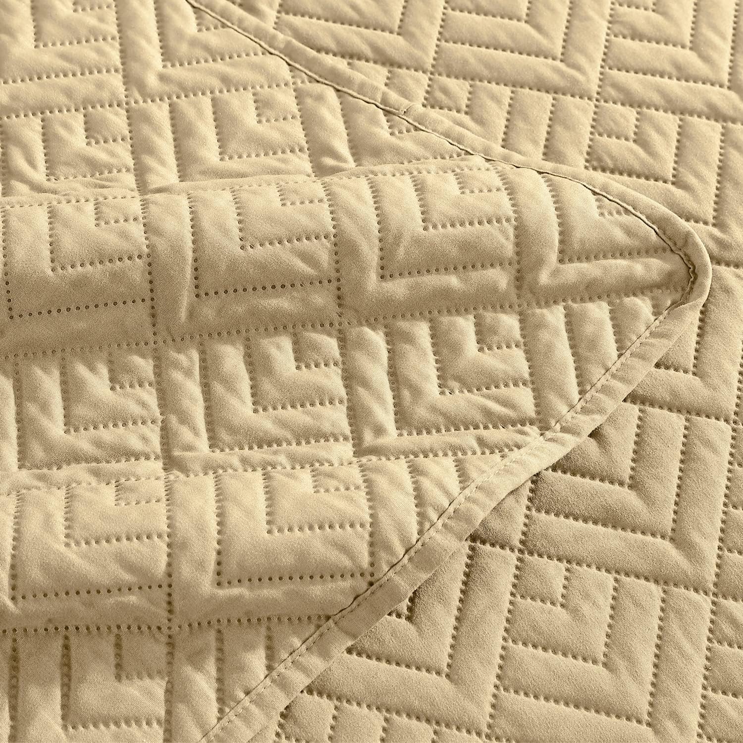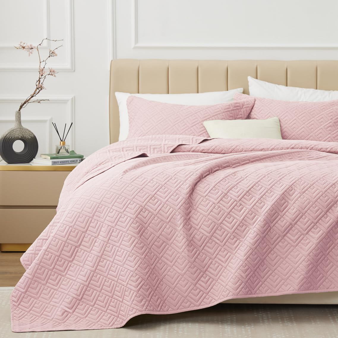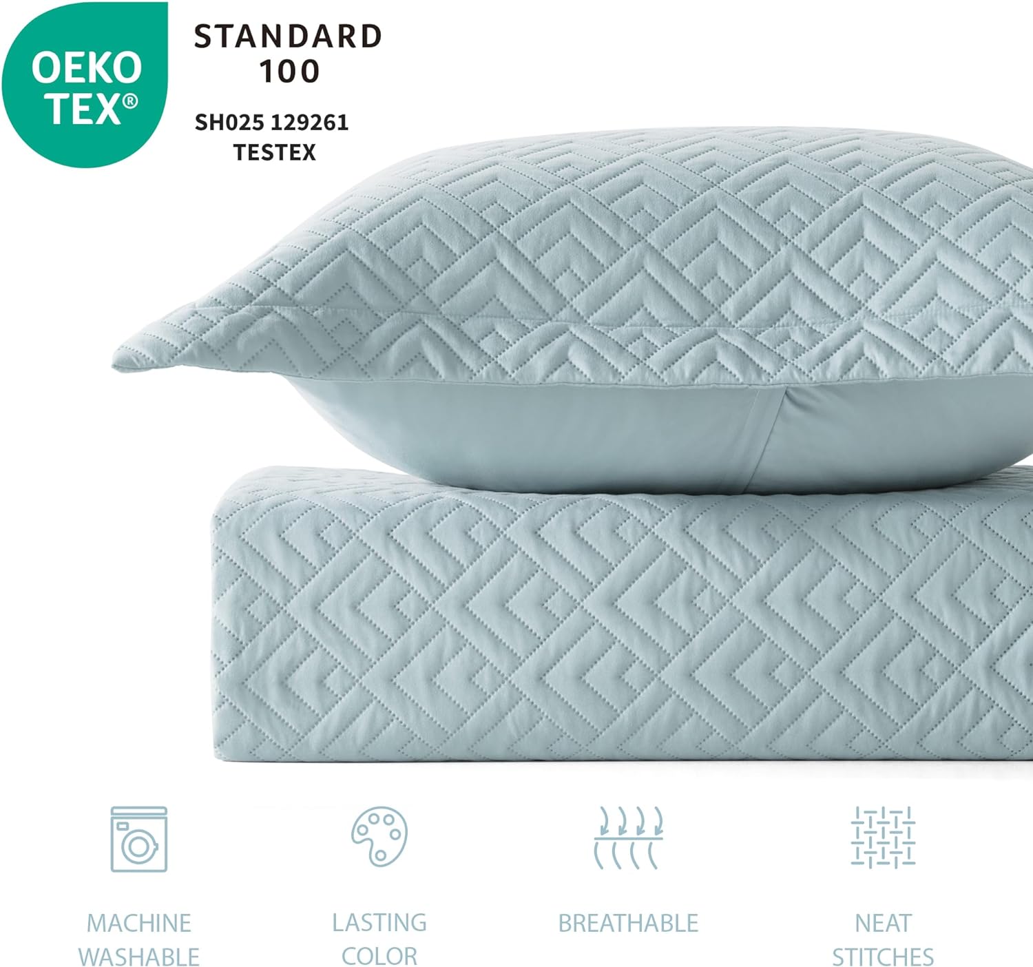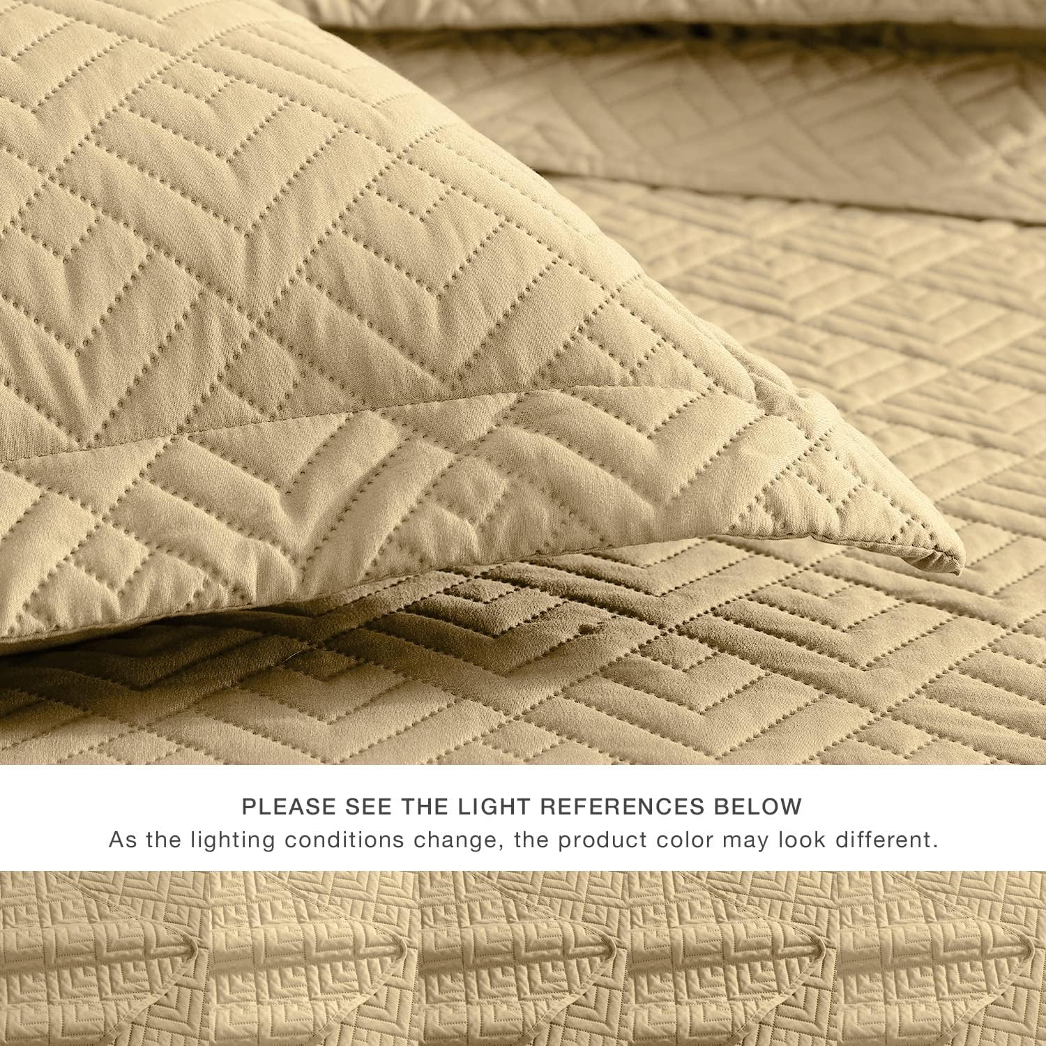 - Unique Design: The combination of solid color base and classic geometric pattern makes the quilt set more elegant and modern. Exquisite ultrasonic pressing process avoids thread and disconnection,keeping the quilt delicate.A premium bedding decorctive for your room.