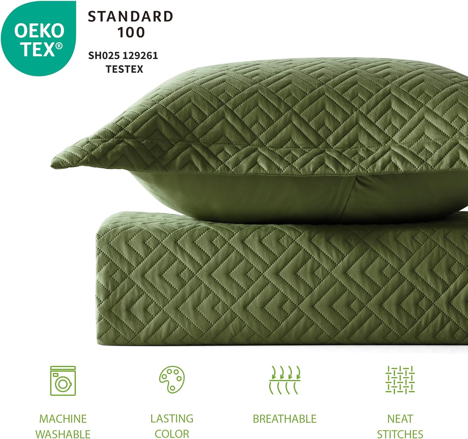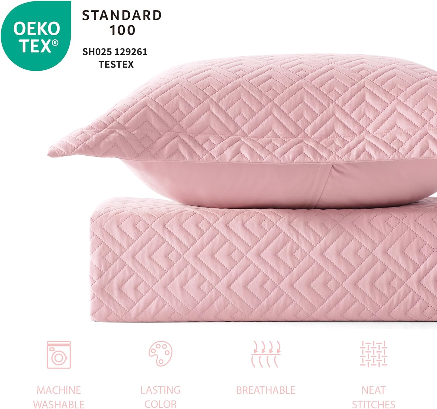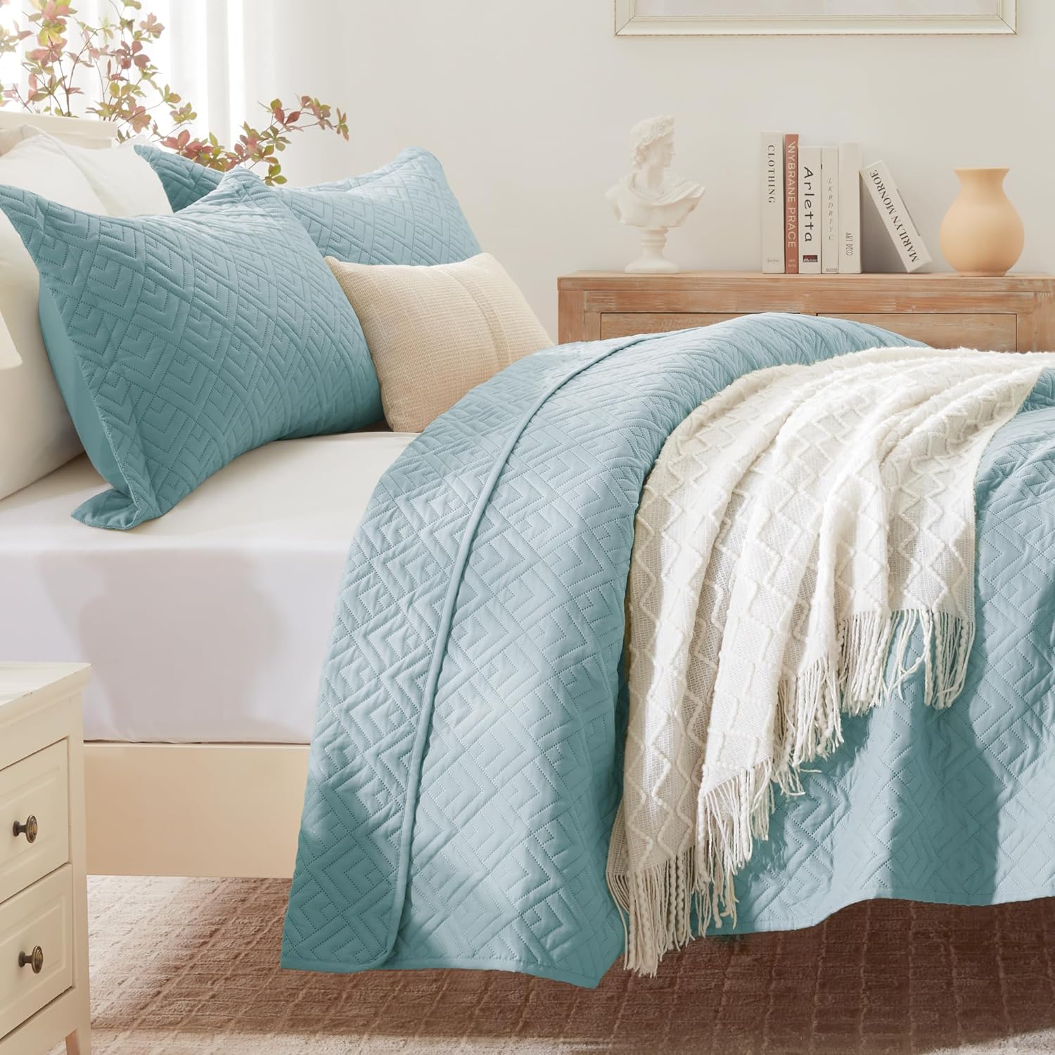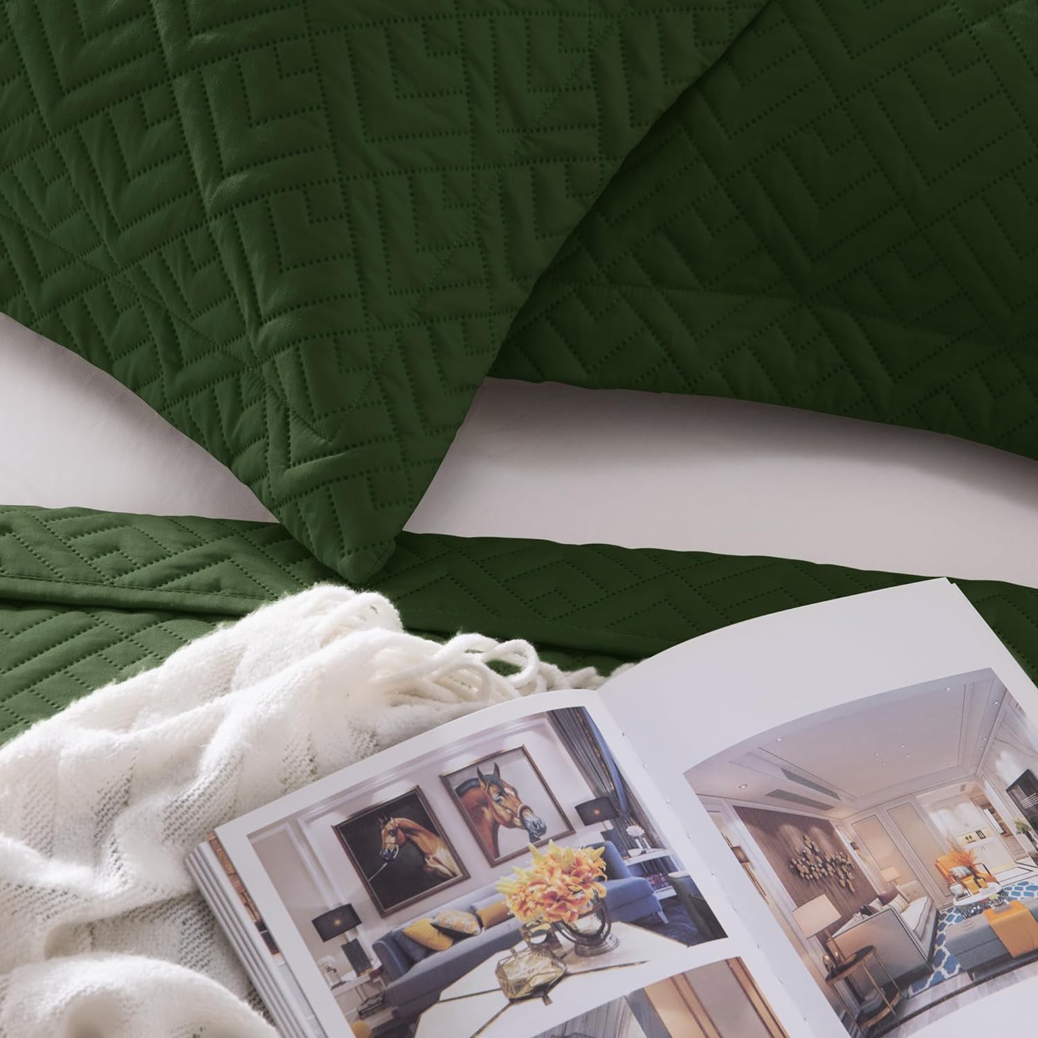 - Unique Design: The combination of solid color base and classic geometric pattern makes the quilt set more elegant and modern. Exquisite ultrasonic pressing process avoids thread and disconnection,keeping the quilt delicate.A premium bedding decorctive for your room.