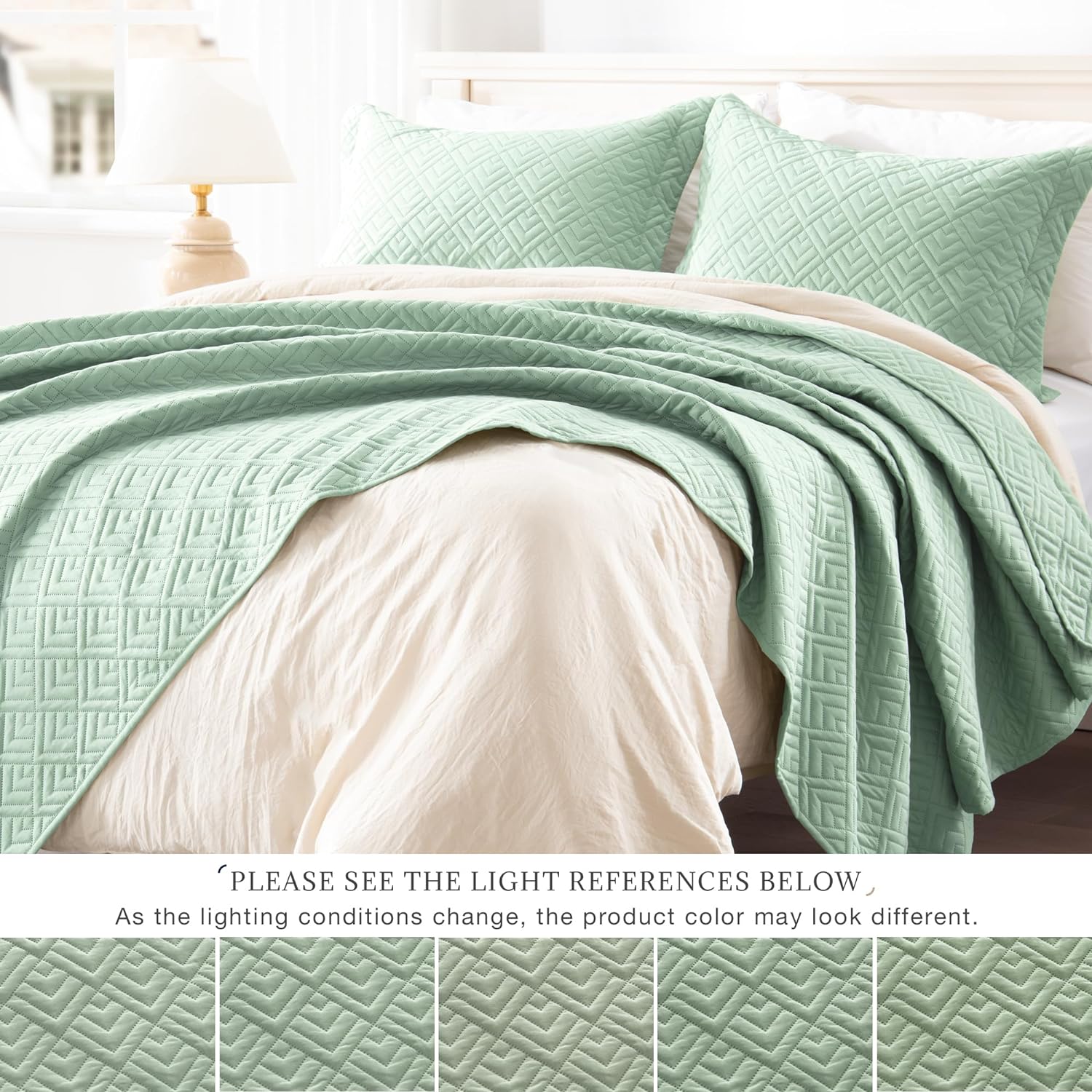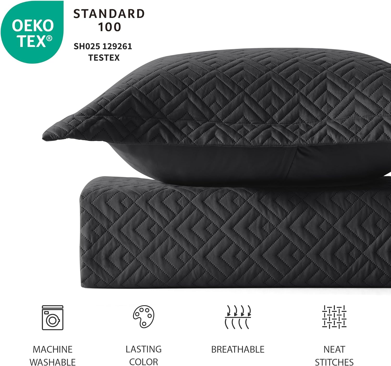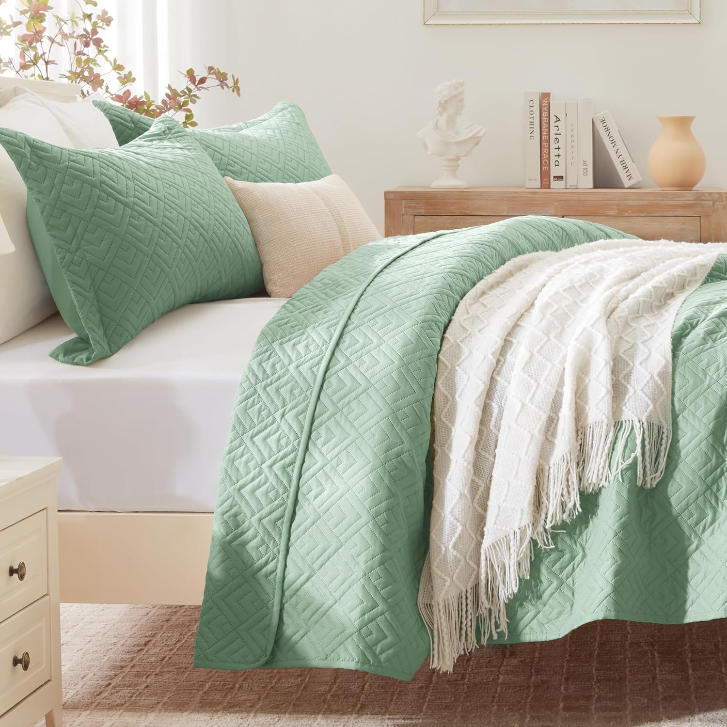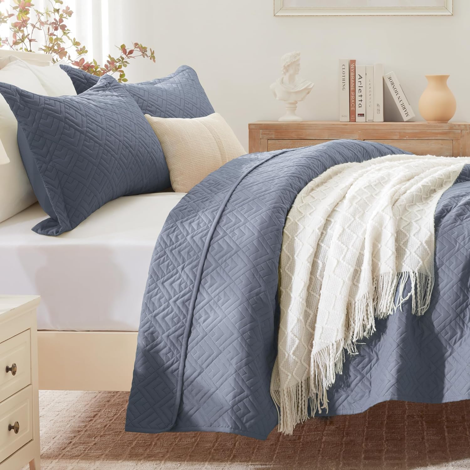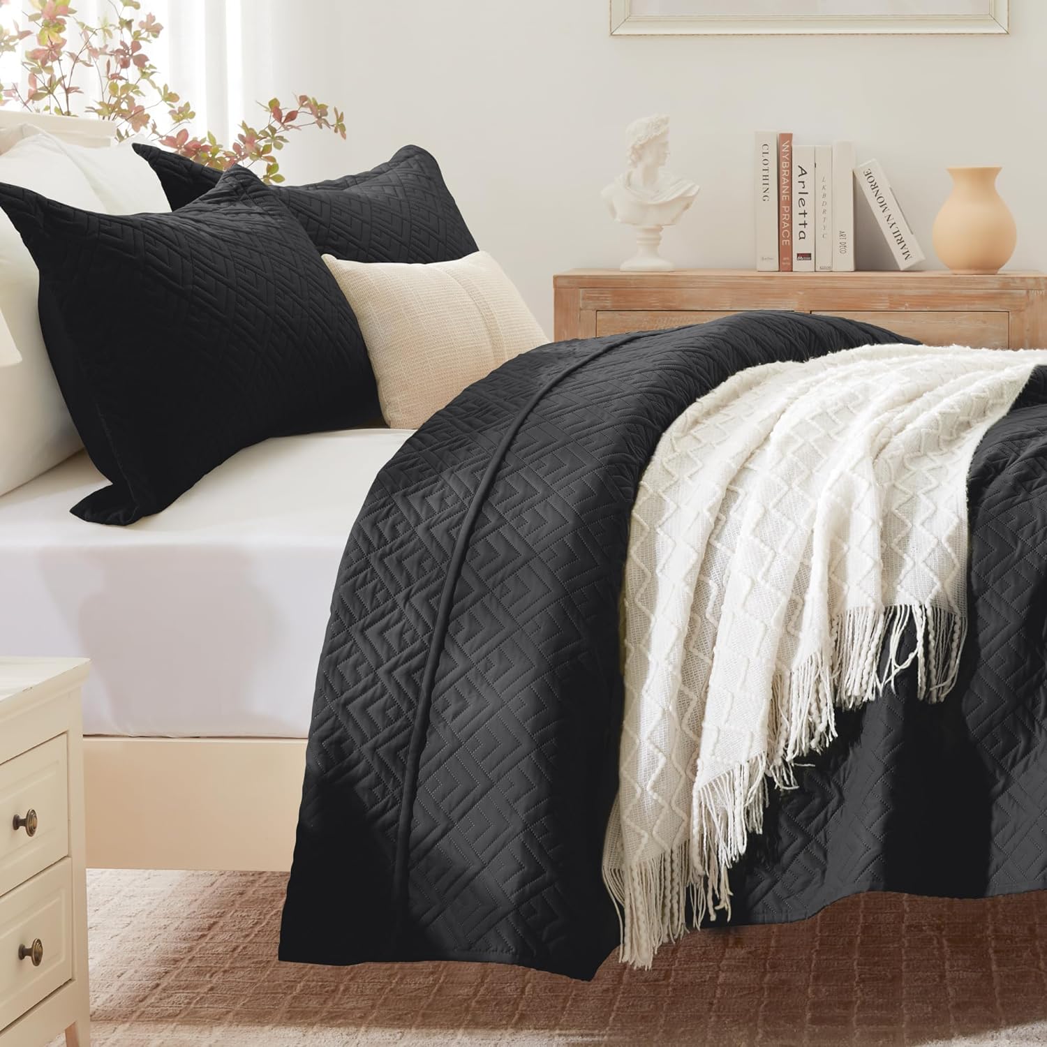 - Unique Design: The combination of solid color base and classic geometric pattern makes the quilt set more elegant and modern. Exquisite ultrasonic pressing process avoids thread and disconnection,keeping the quilt delicate.A premium bedding decorctive for your room.
