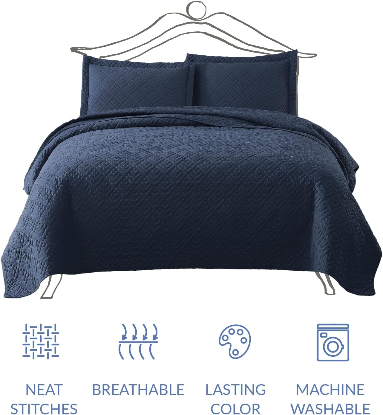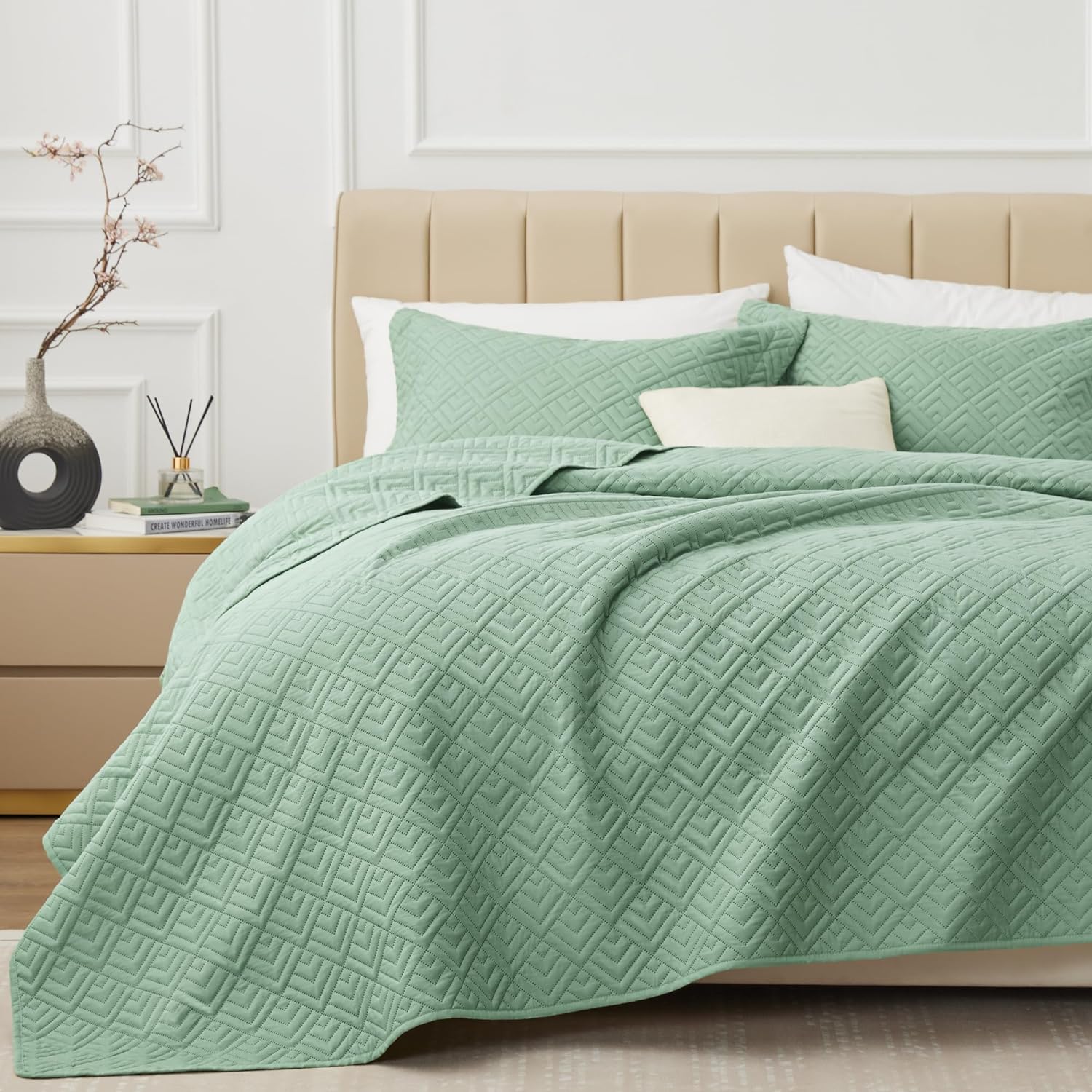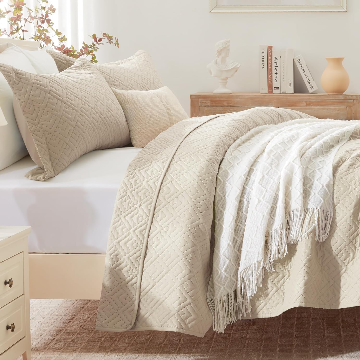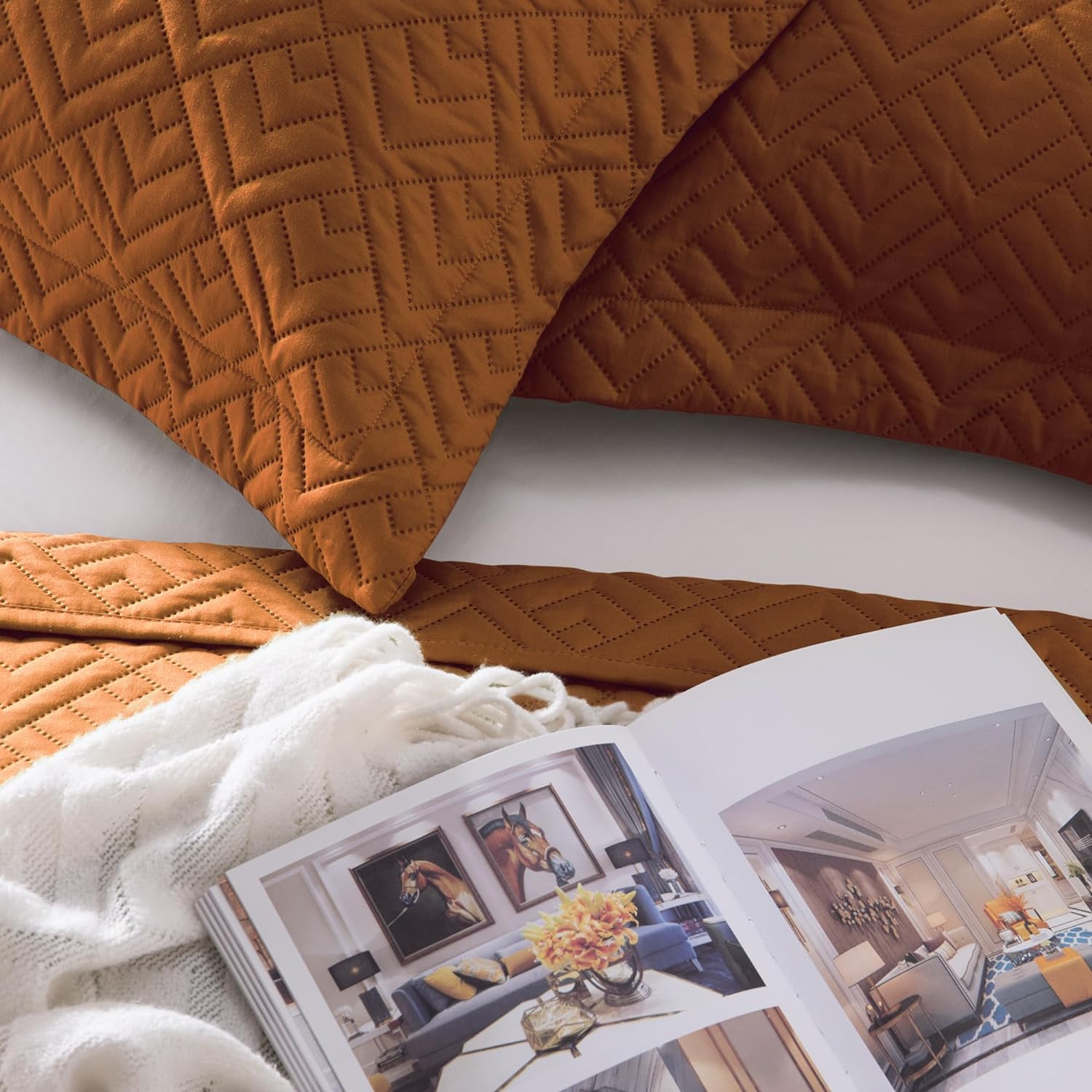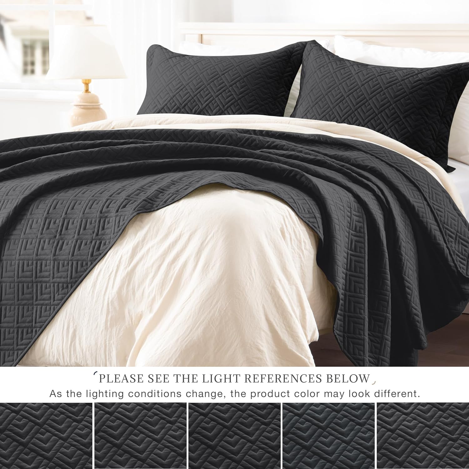 - Unique Design: The combination of solid color base and classic geometric pattern makes the quilt set more elegant and modern. Exquisite ultrasonic pressing process avoids thread and disconnection,keeping the quilt delicate.A premium bedding decorctive for your room.