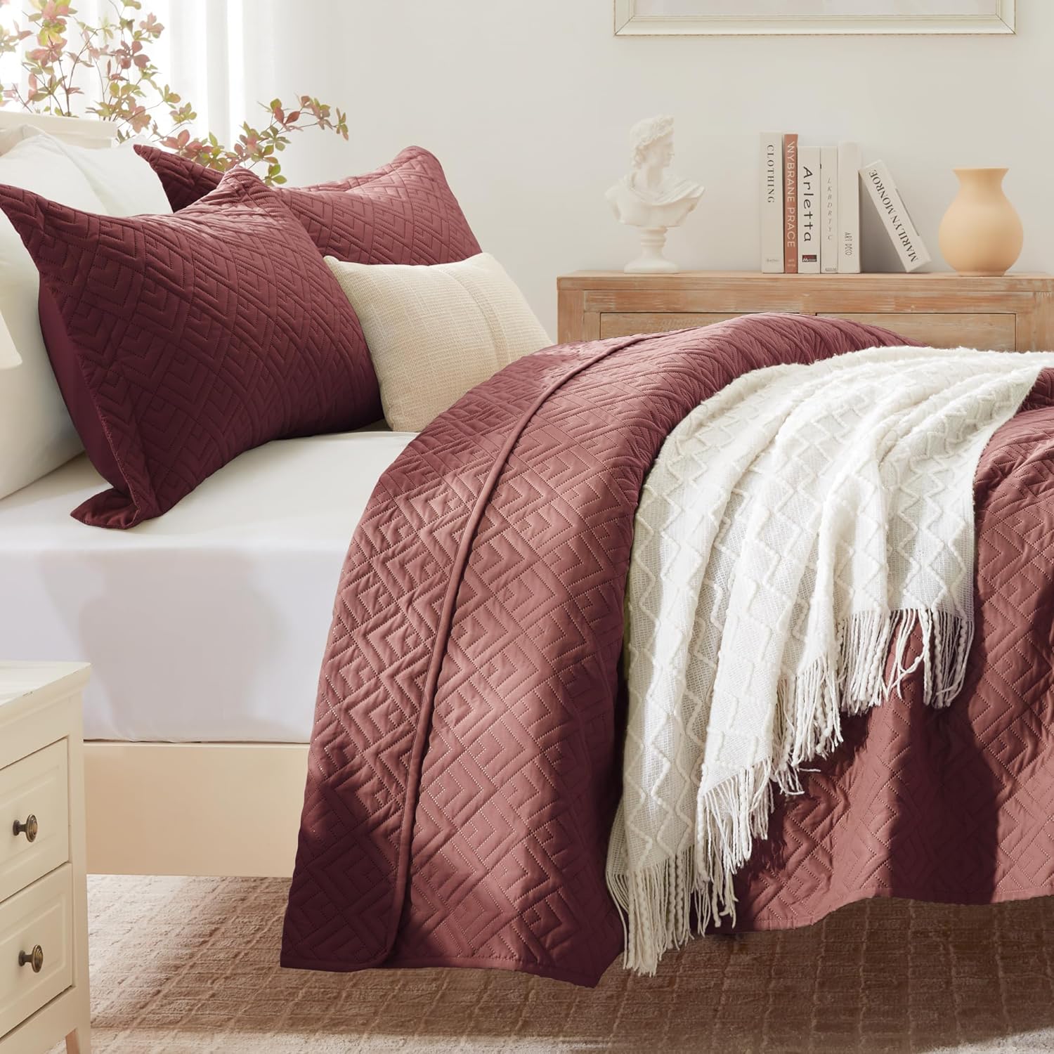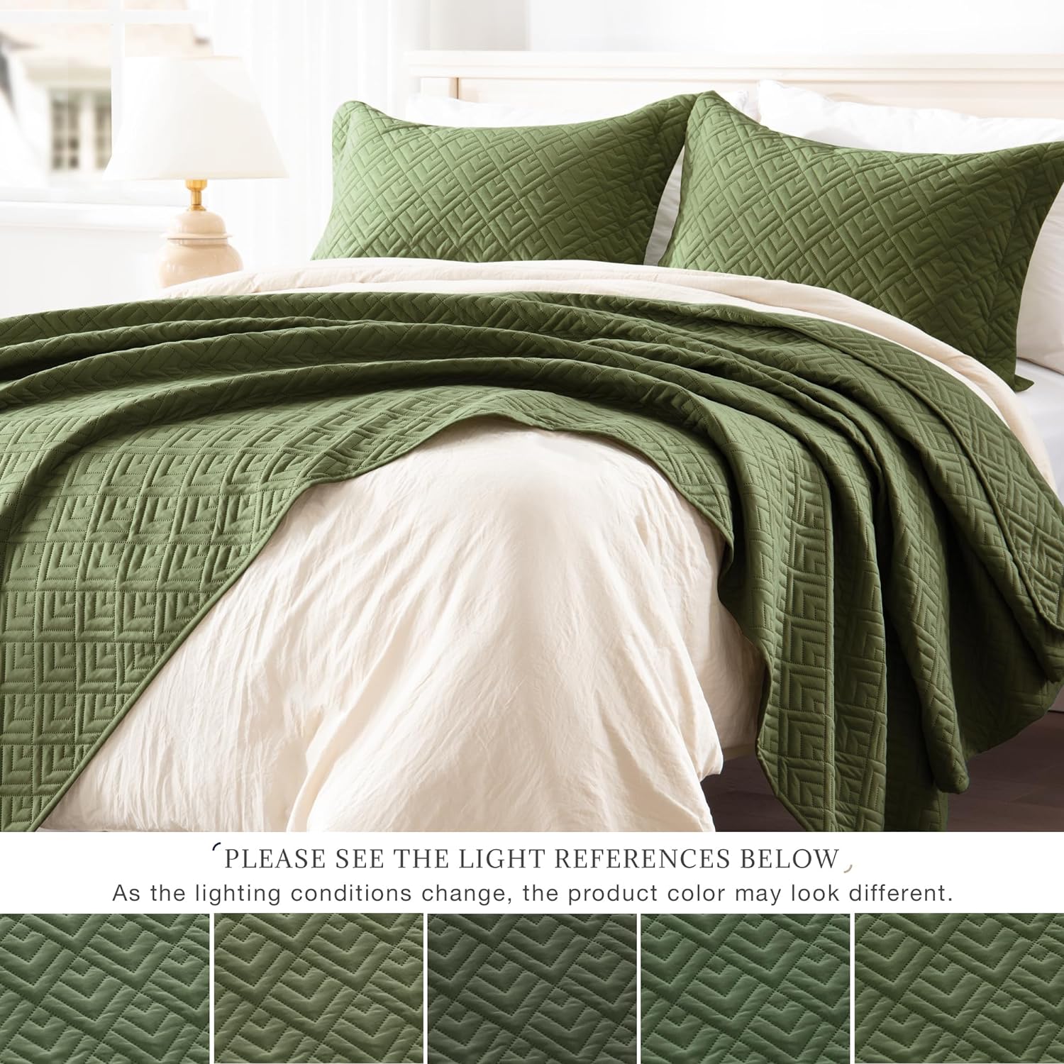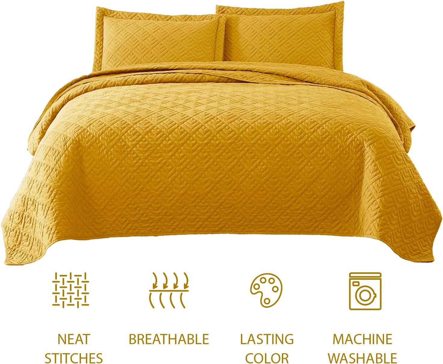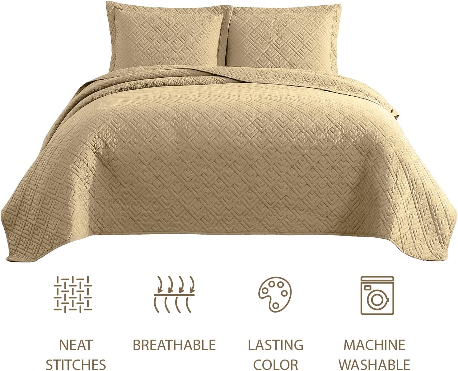 - Unique Design: The combination of solid color base and classic geometric pattern makes the quilt set more elegant and modern. Exquisite ultrasonic pressing process avoids thread and disconnection,keeping the quilt delicate.A premium bedding decorctive for your room.