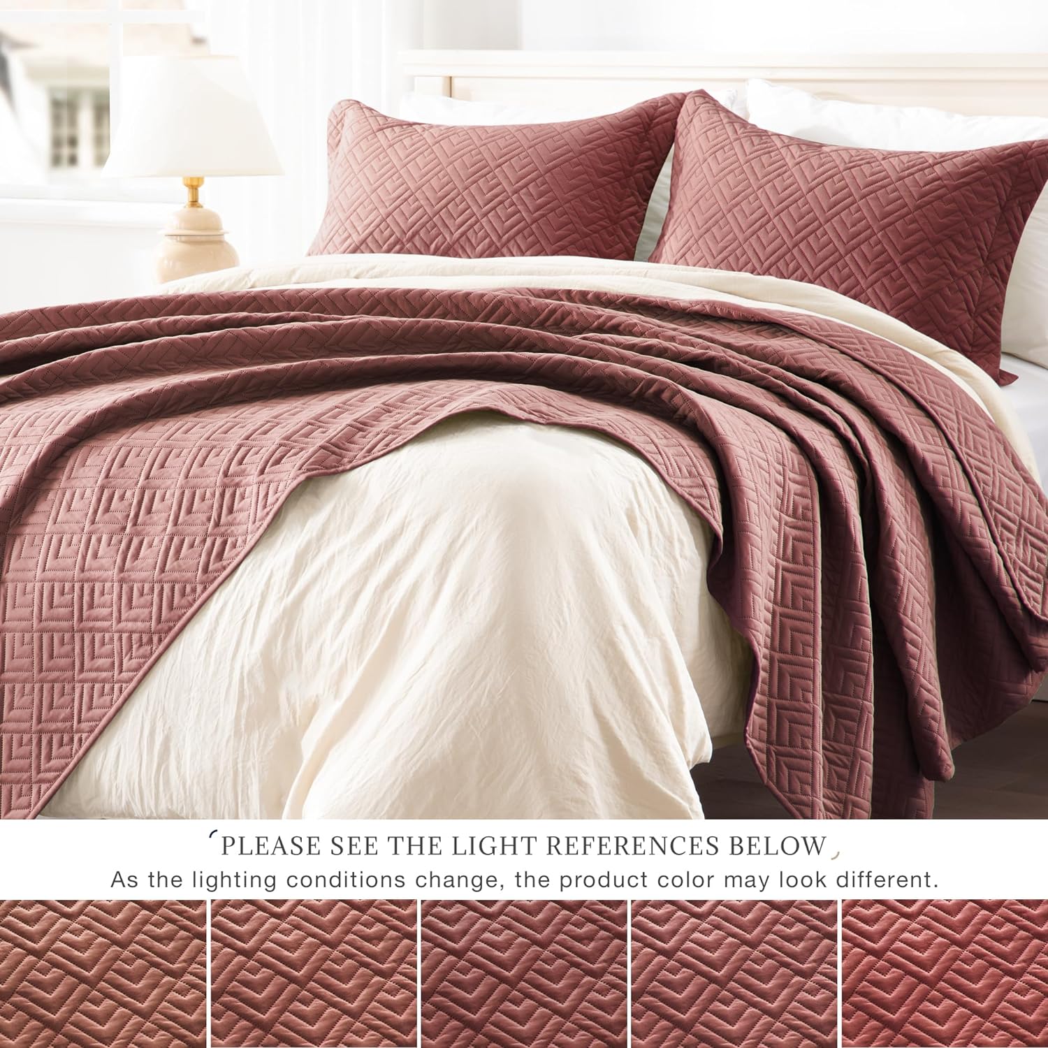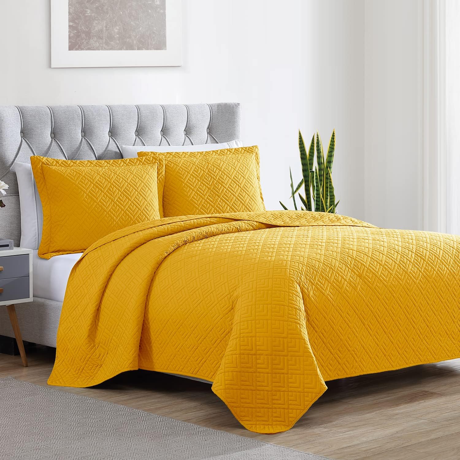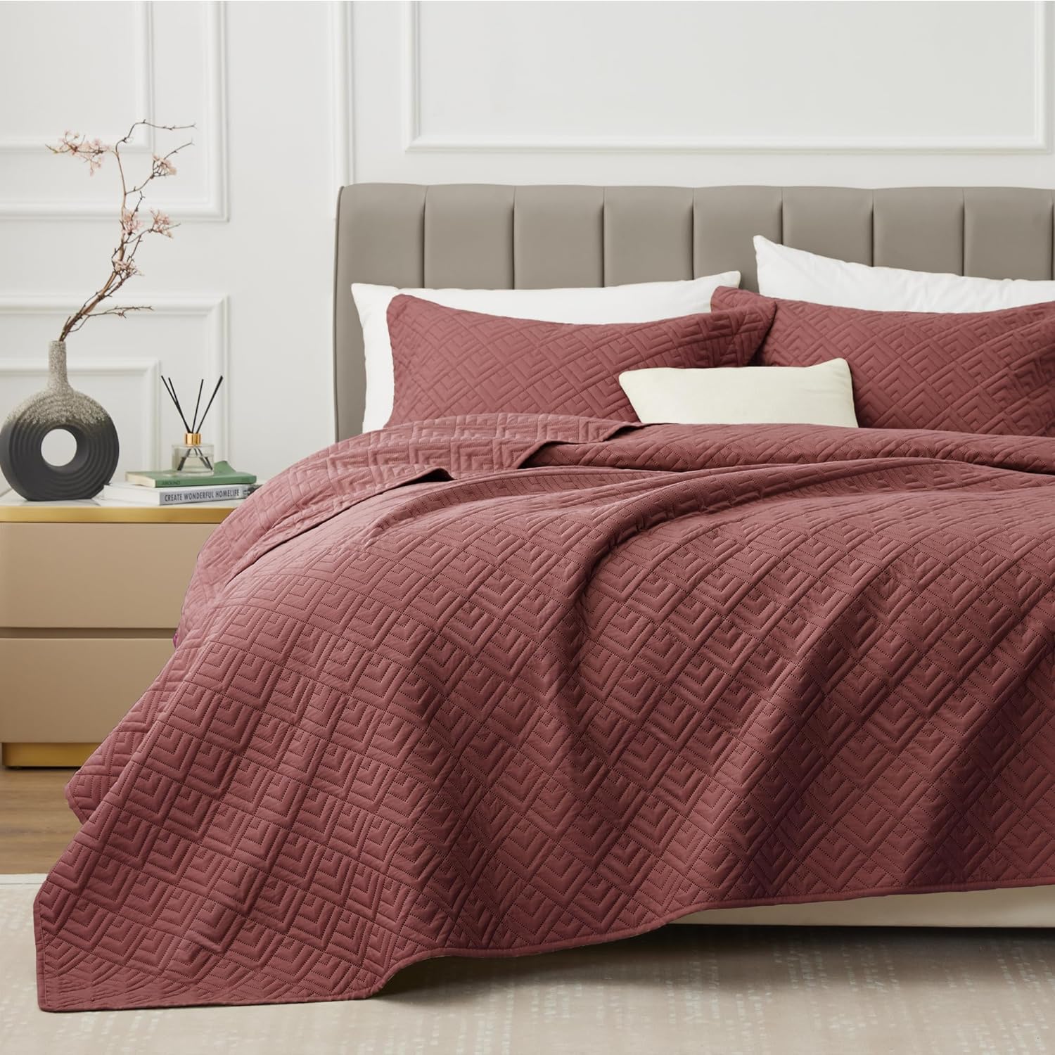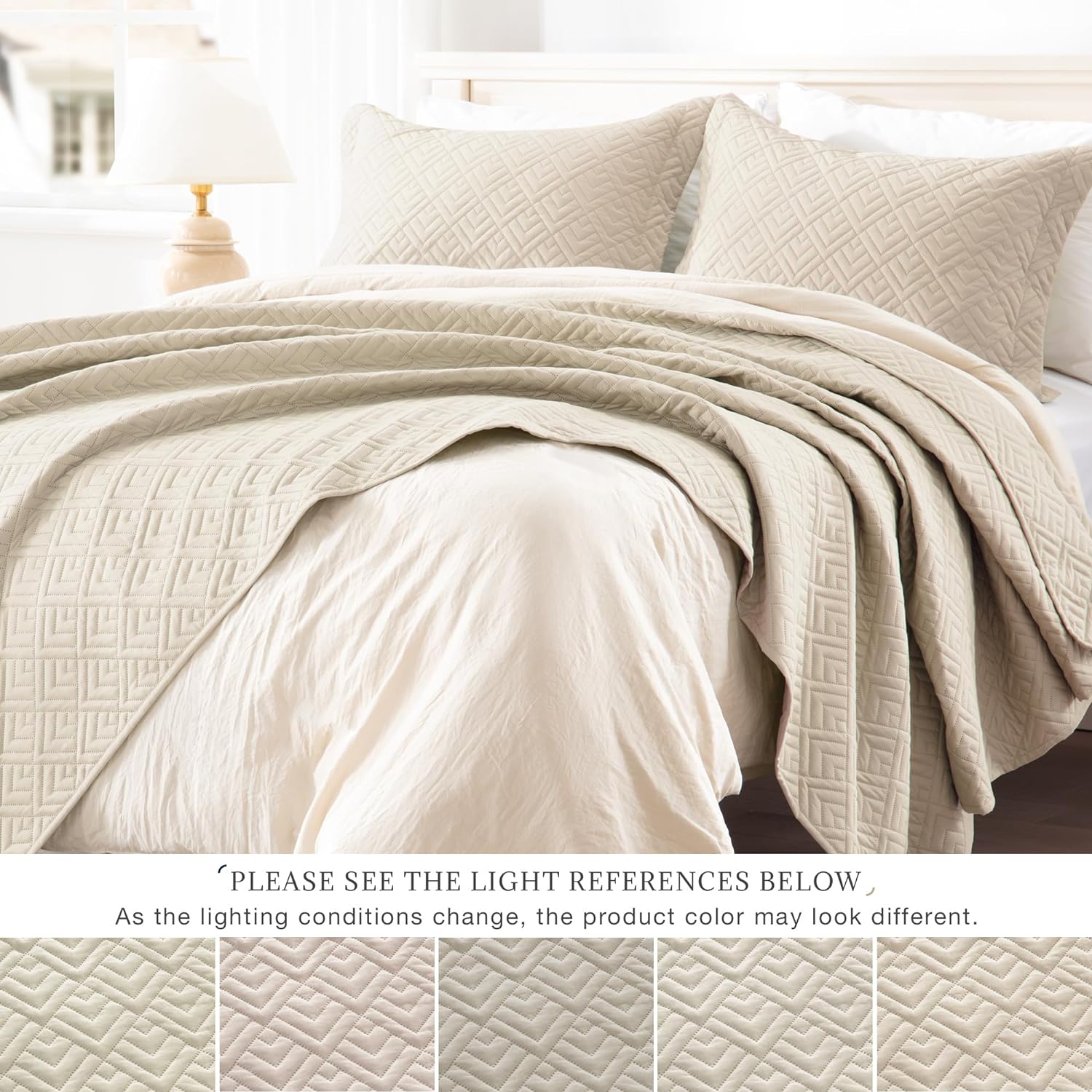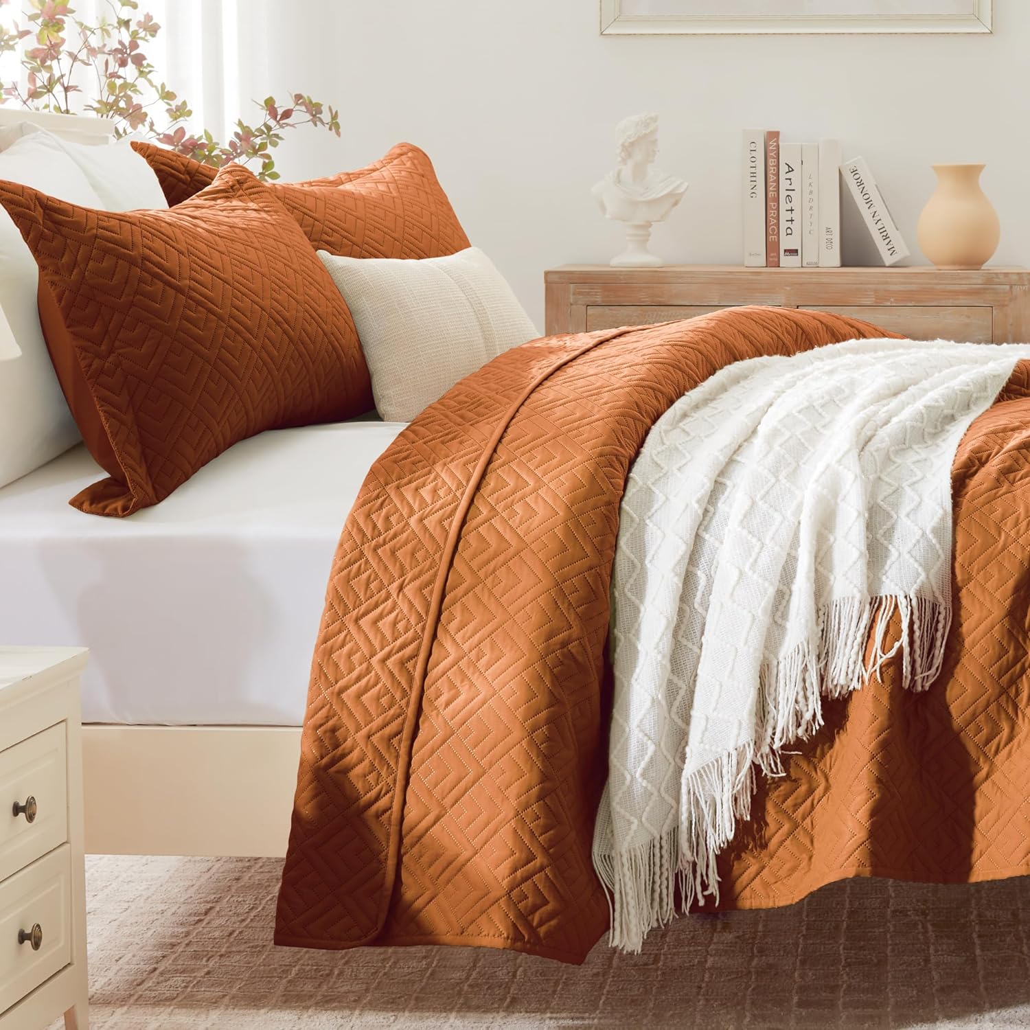 - Unique Design: The combination of solid color base and classic geometric pattern makes the quilt set more elegant and modern. Exquisite ultrasonic pressing process avoids thread and disconnection,keeping the quilt delicate.A premium bedding decorctive for your room.
