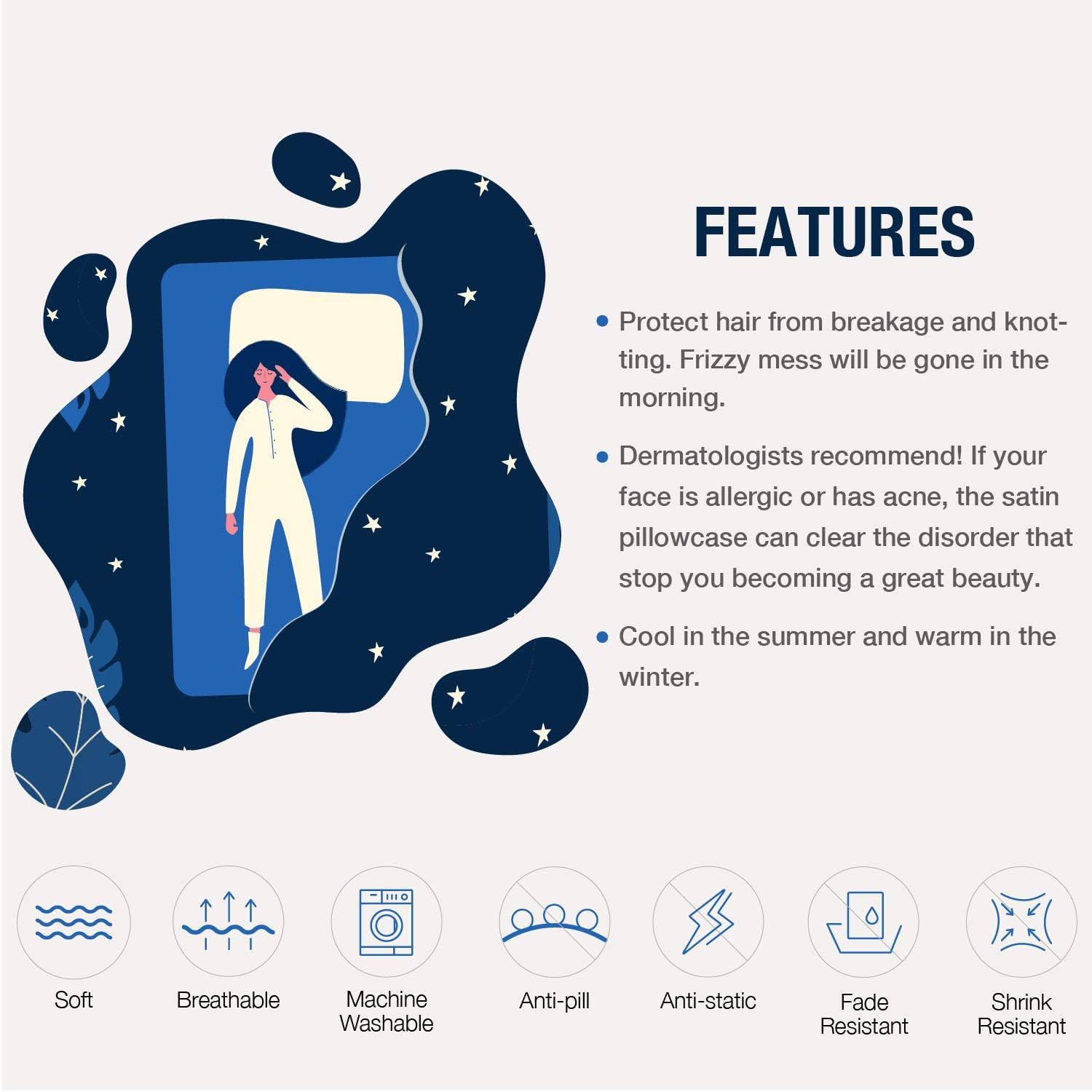 - Nurture Hair: Satin pillowcase can protect you and family hair from tugs and knotting. Frizzy mess will be gone in the morning!