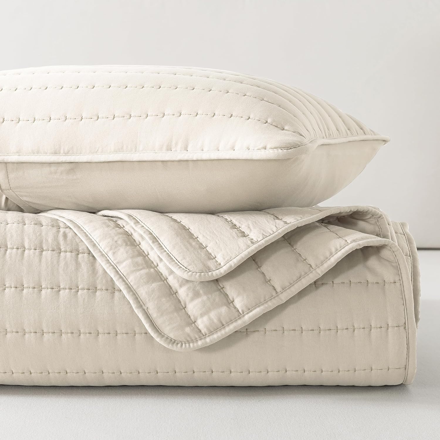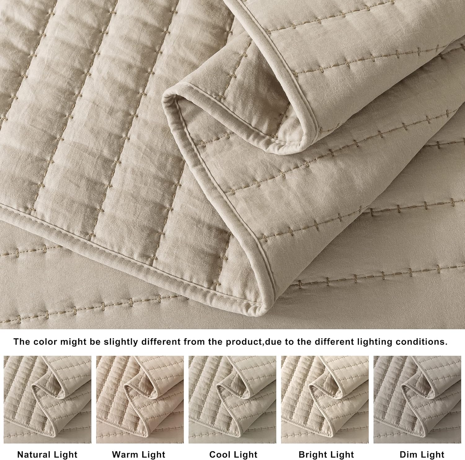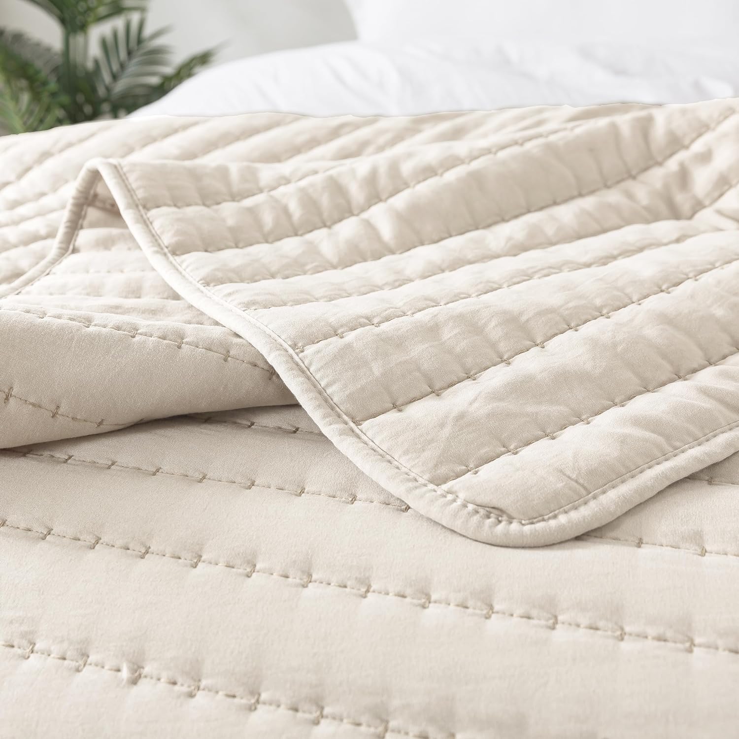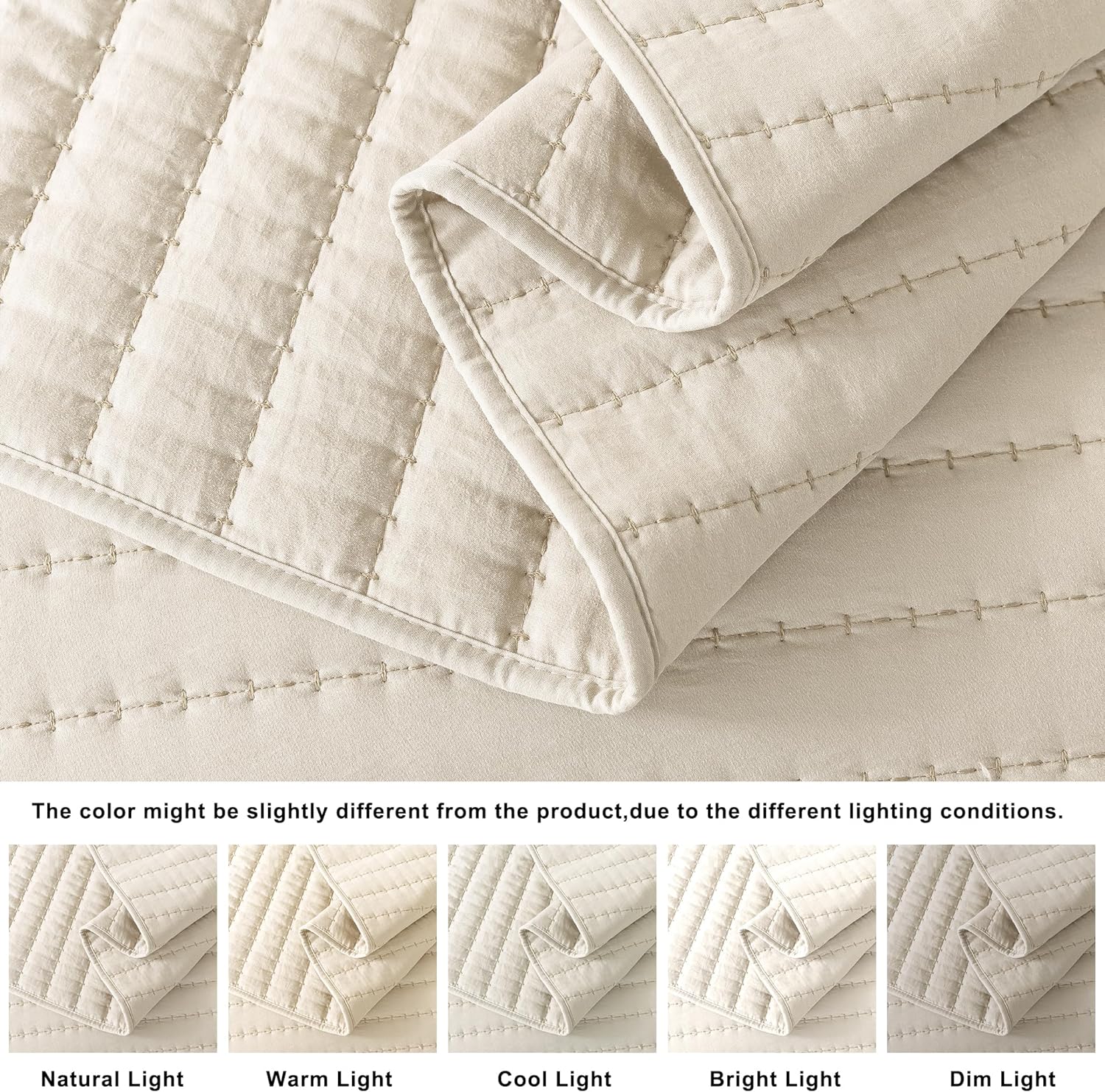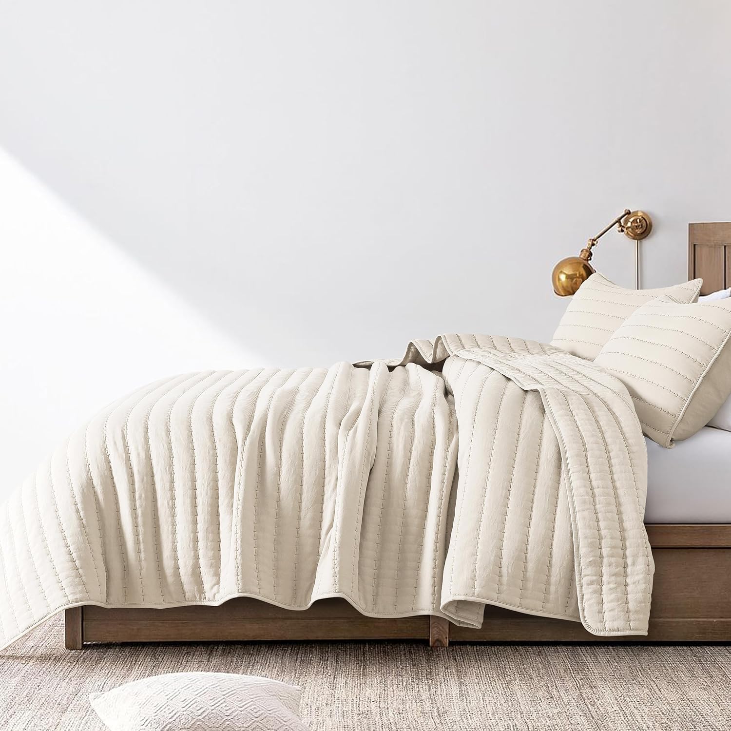 ROARINGWILD Ivory Queen Size Quilt Bedding Sets with 2 Pillow Shams, Full Lightweight Soft Bedspread Coverlet, Quilted Blanket Thin Comforter Bed Cover for All Season, 3 Pieces, 90x90 inches