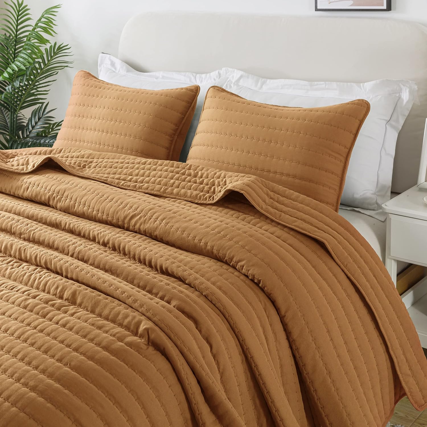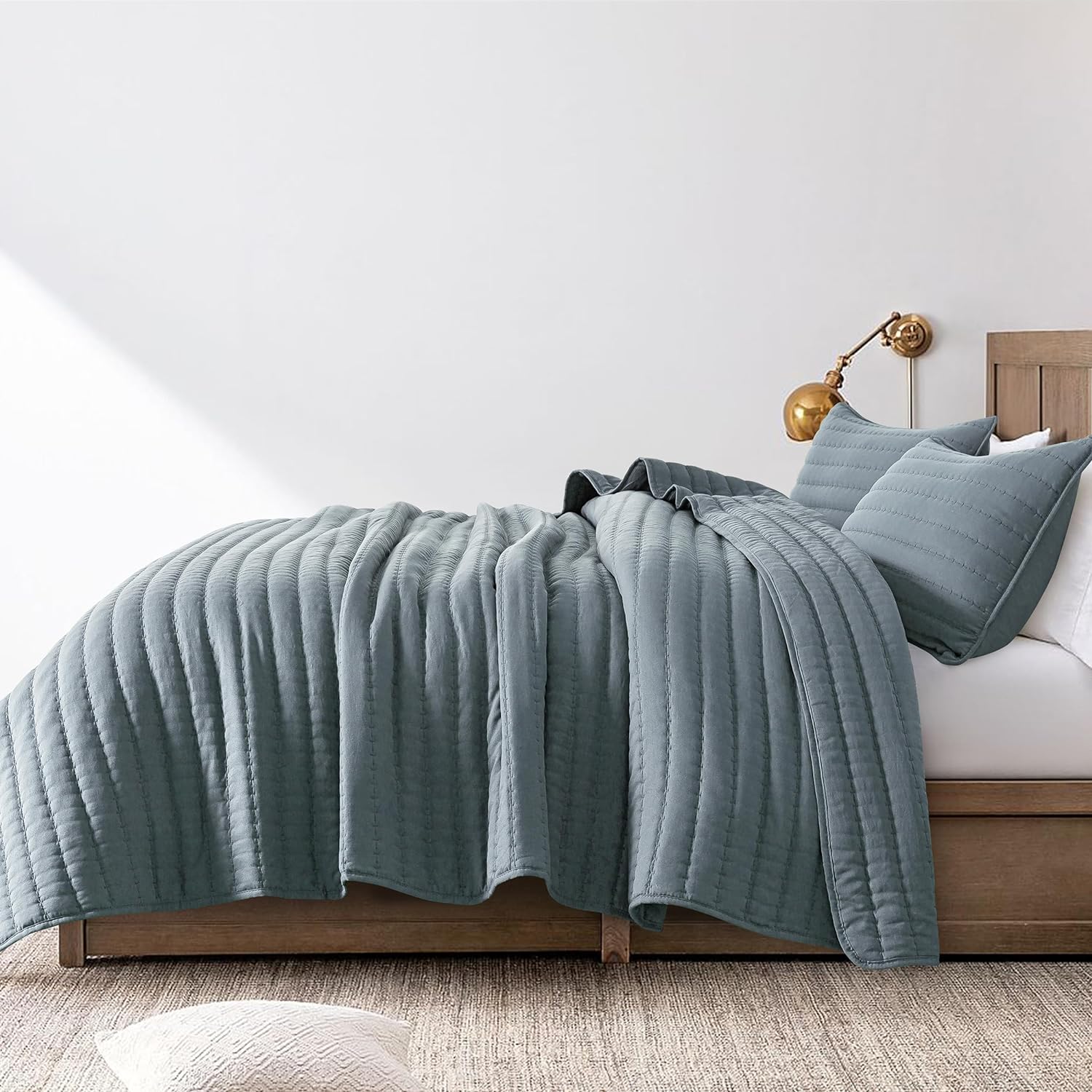 - High material: 100% microfiber polyester, more durable, soft and cozy, skin friendly quilt sets, lightweight quilt queen size bedspread coverlet set.