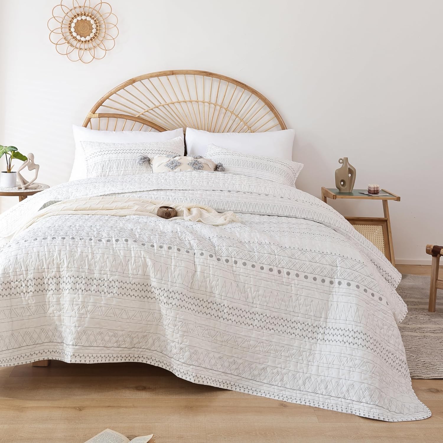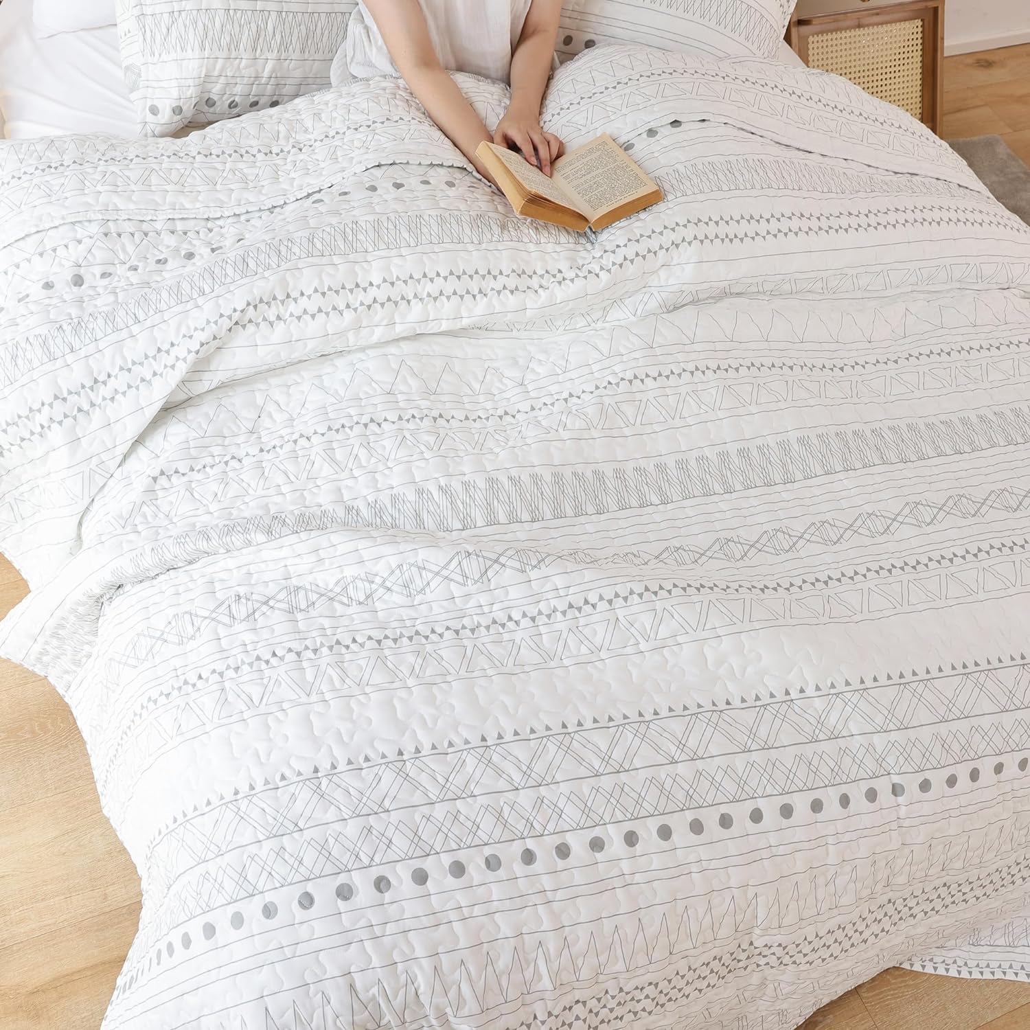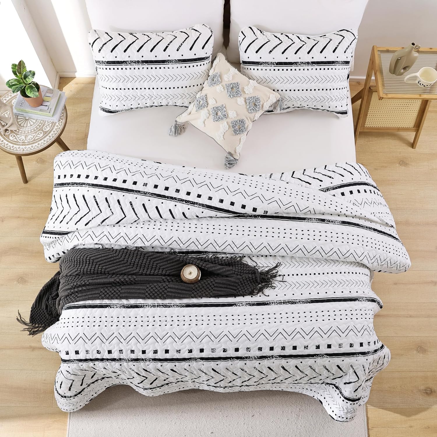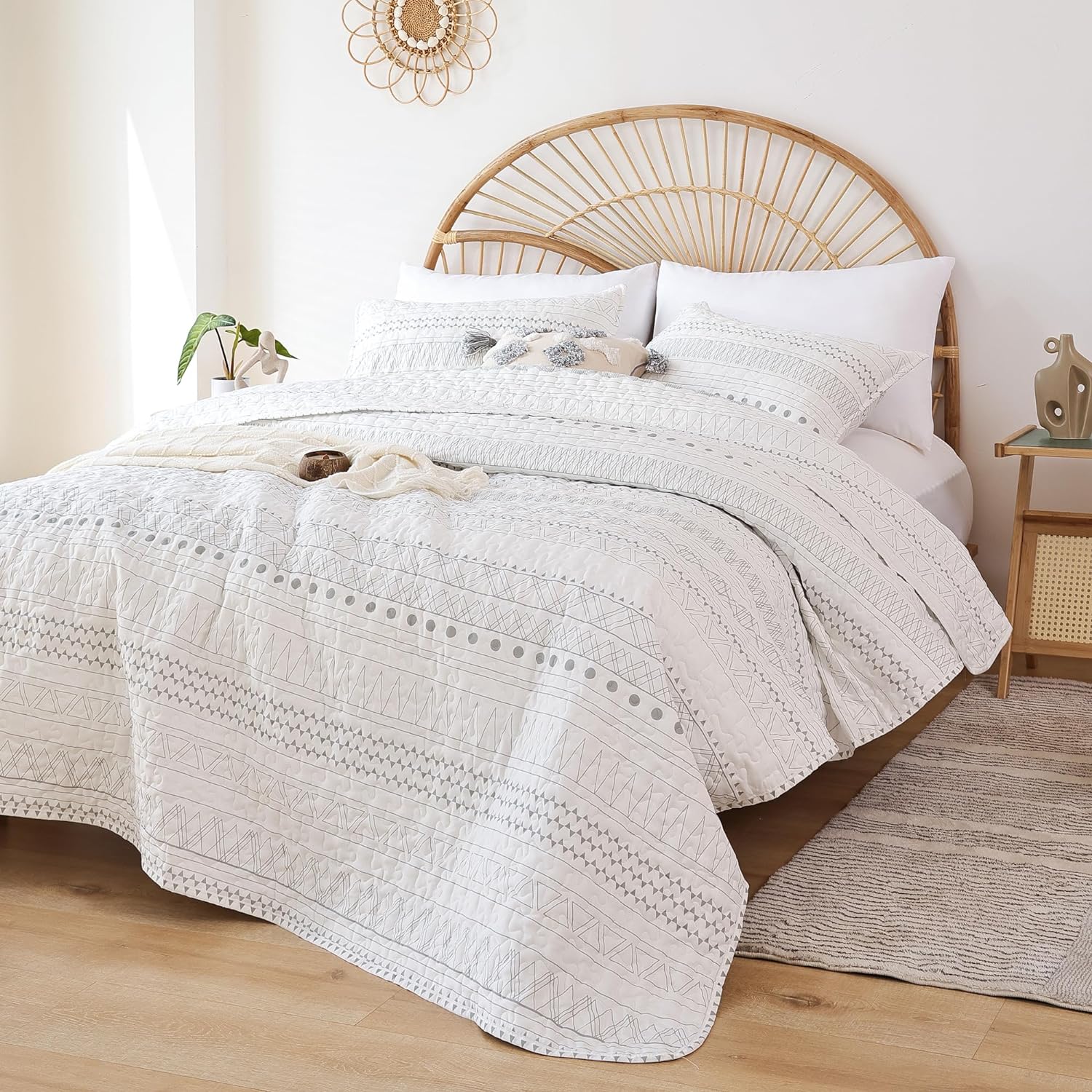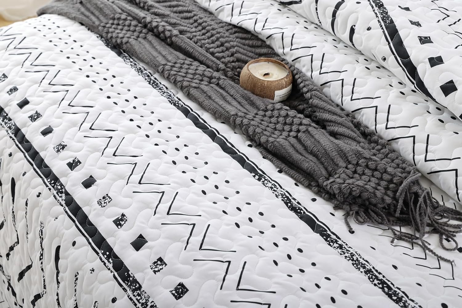 - UNIQUE PATTERN:The quilts queen size design with boho style featuring white geometric printed and multiple elements which perfectly blends fashion and abstract art,add an extra layer of modern style to match your room décor and brighten your rooms,perfect as a great gift idea for men and women at special festival.