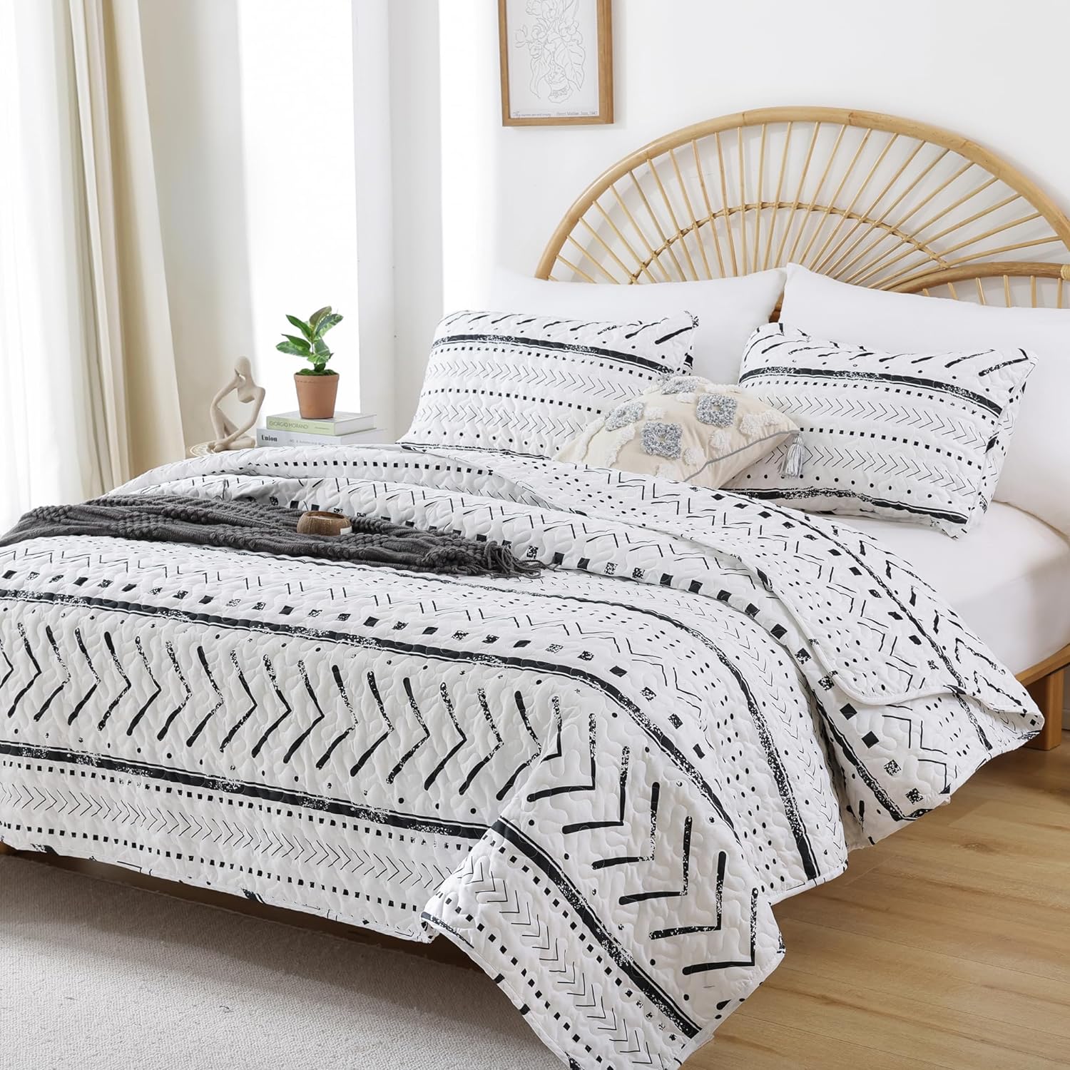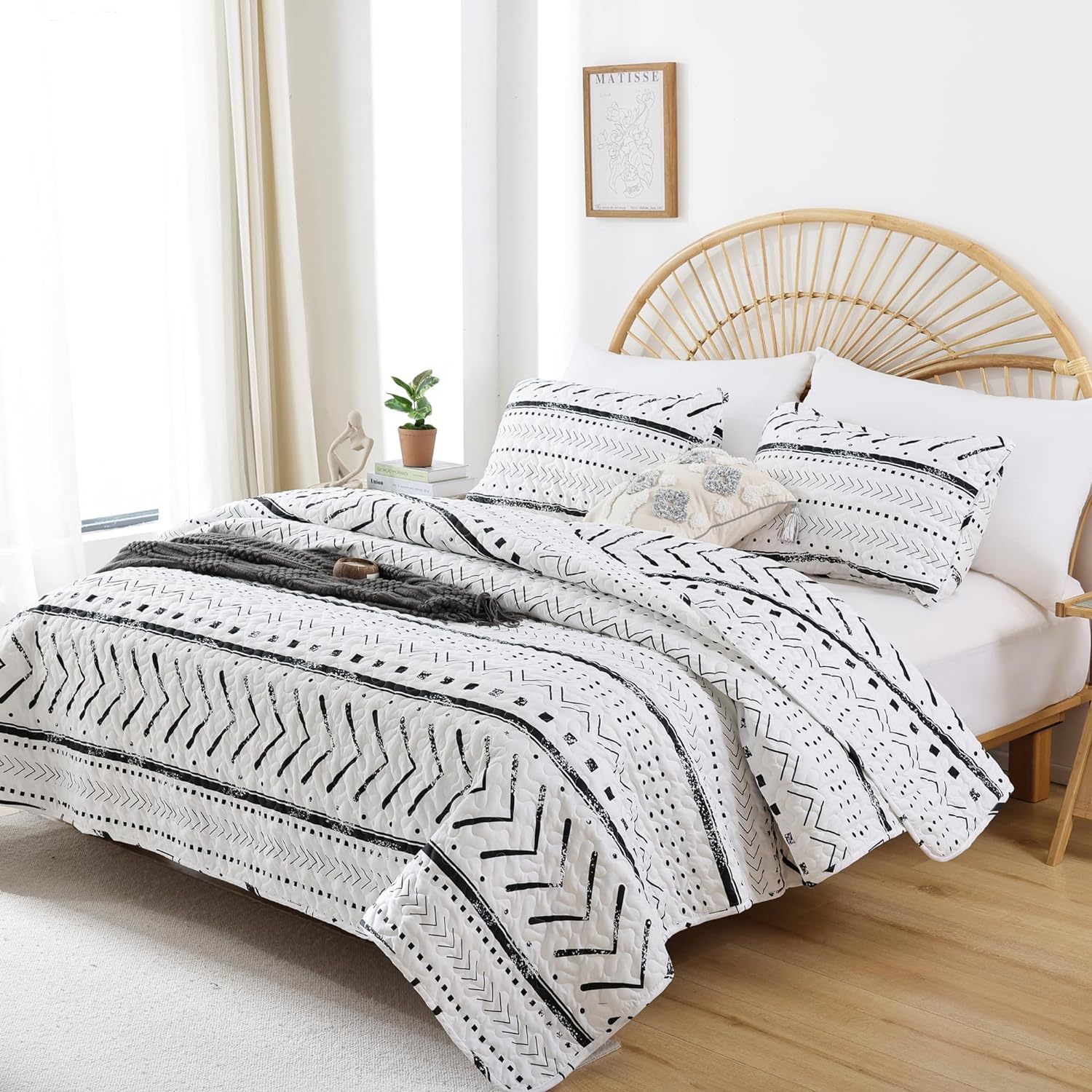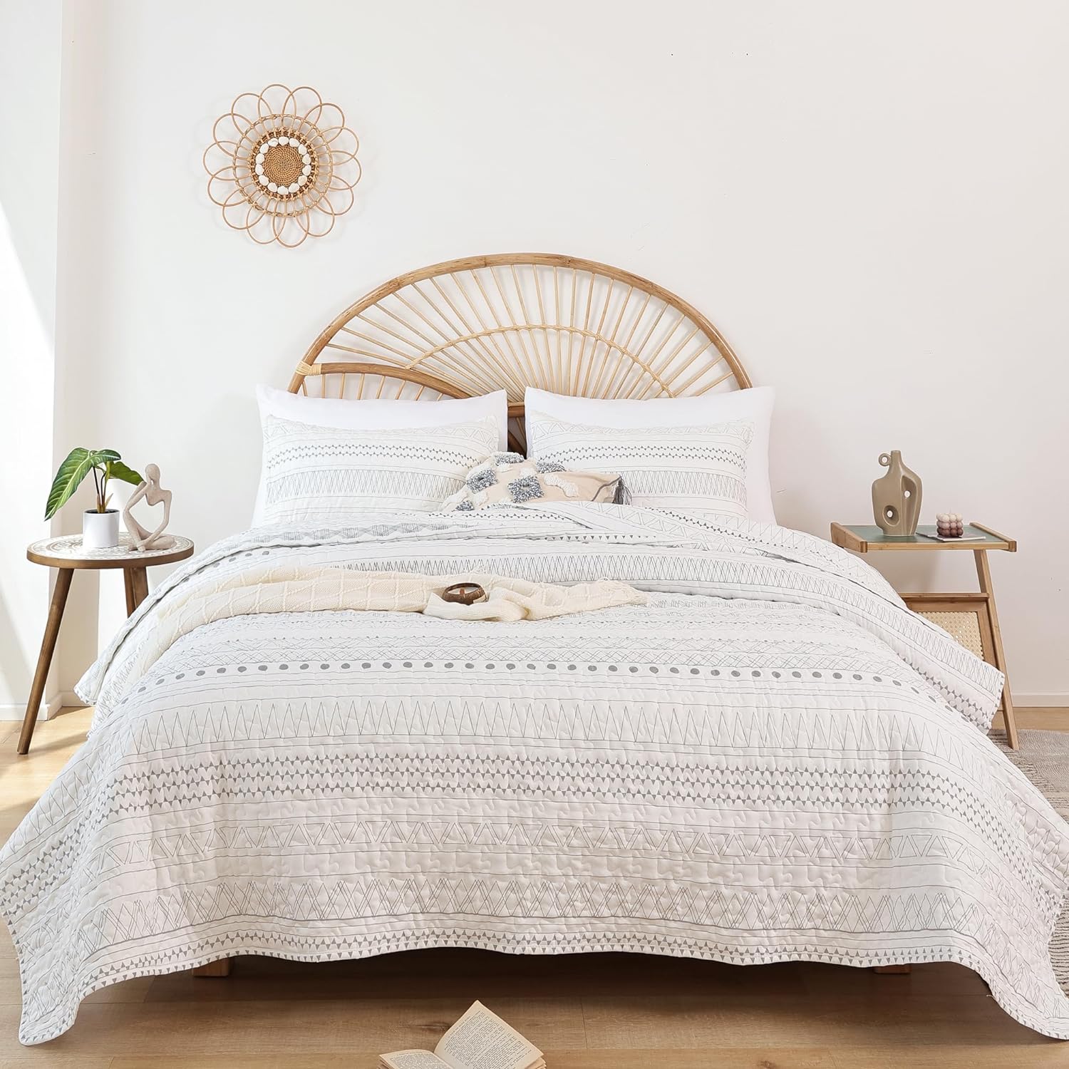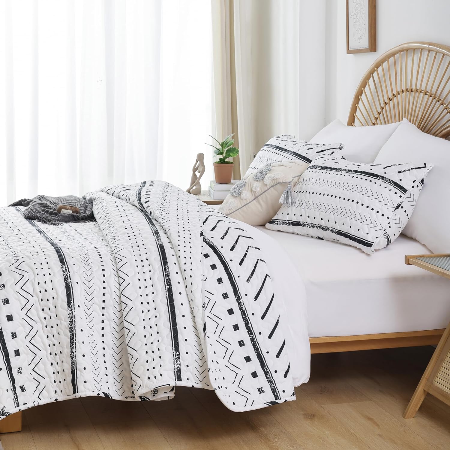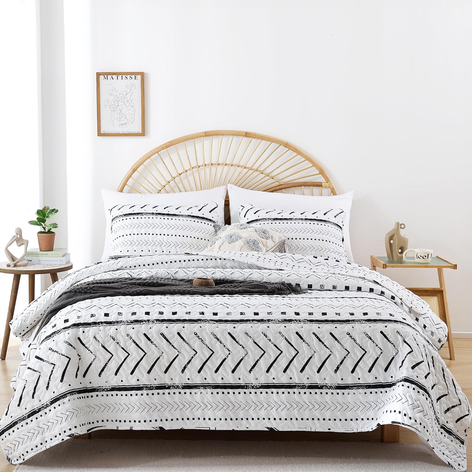 - UNIQUE PATTERN:The quilts queen size design with boho style featuring white geometric printed and multiple elements which perfectly blends fashion and abstract art,add an extra layer of modern style to match your room décor and brighten your rooms,perfect as a great gift idea for men and women at special festival.