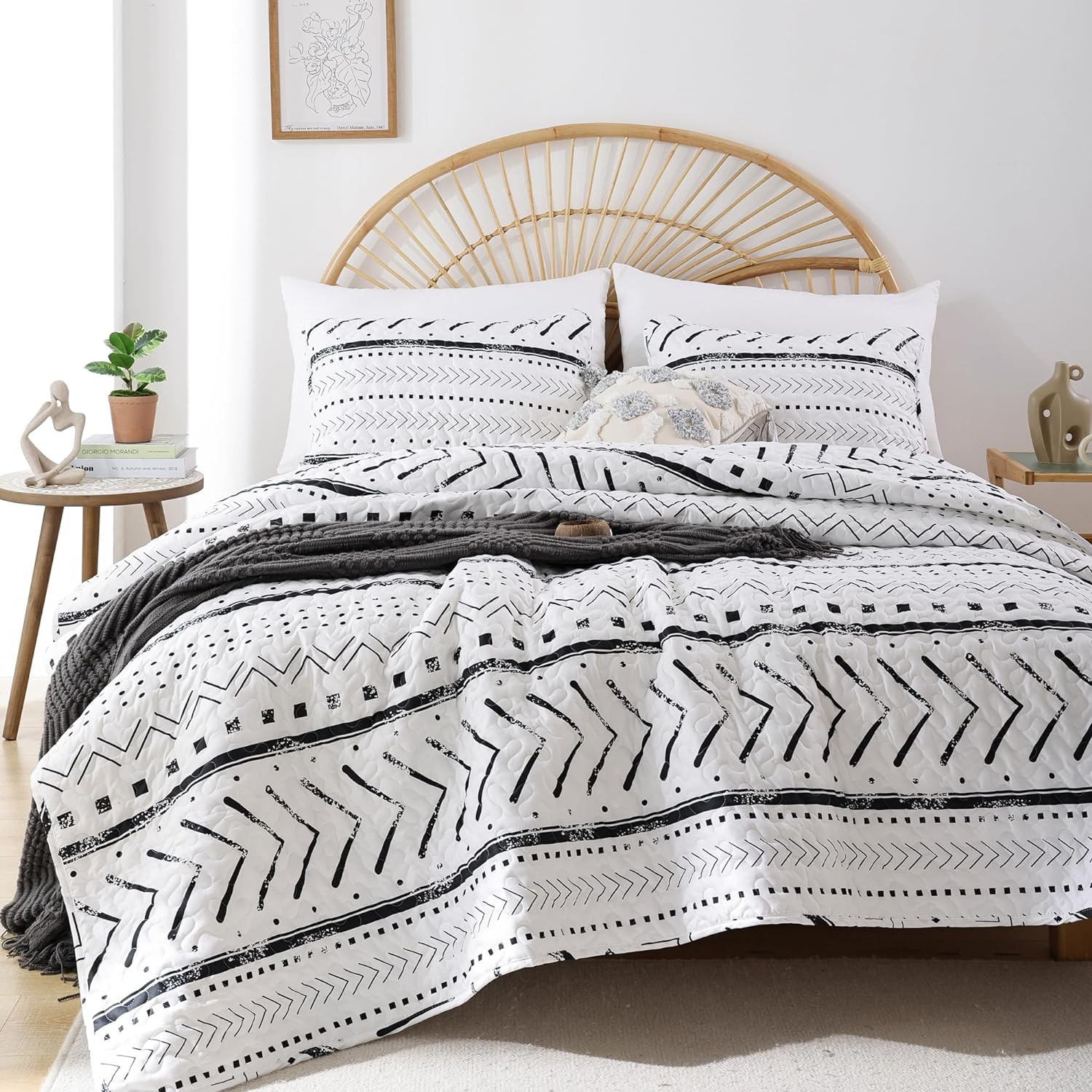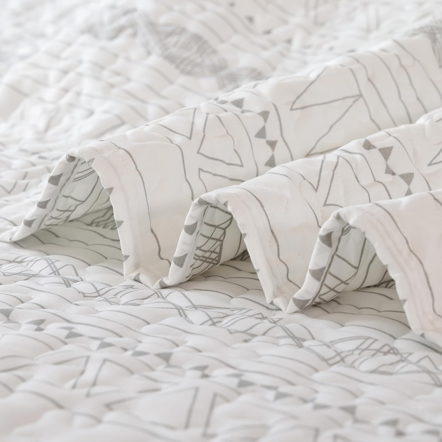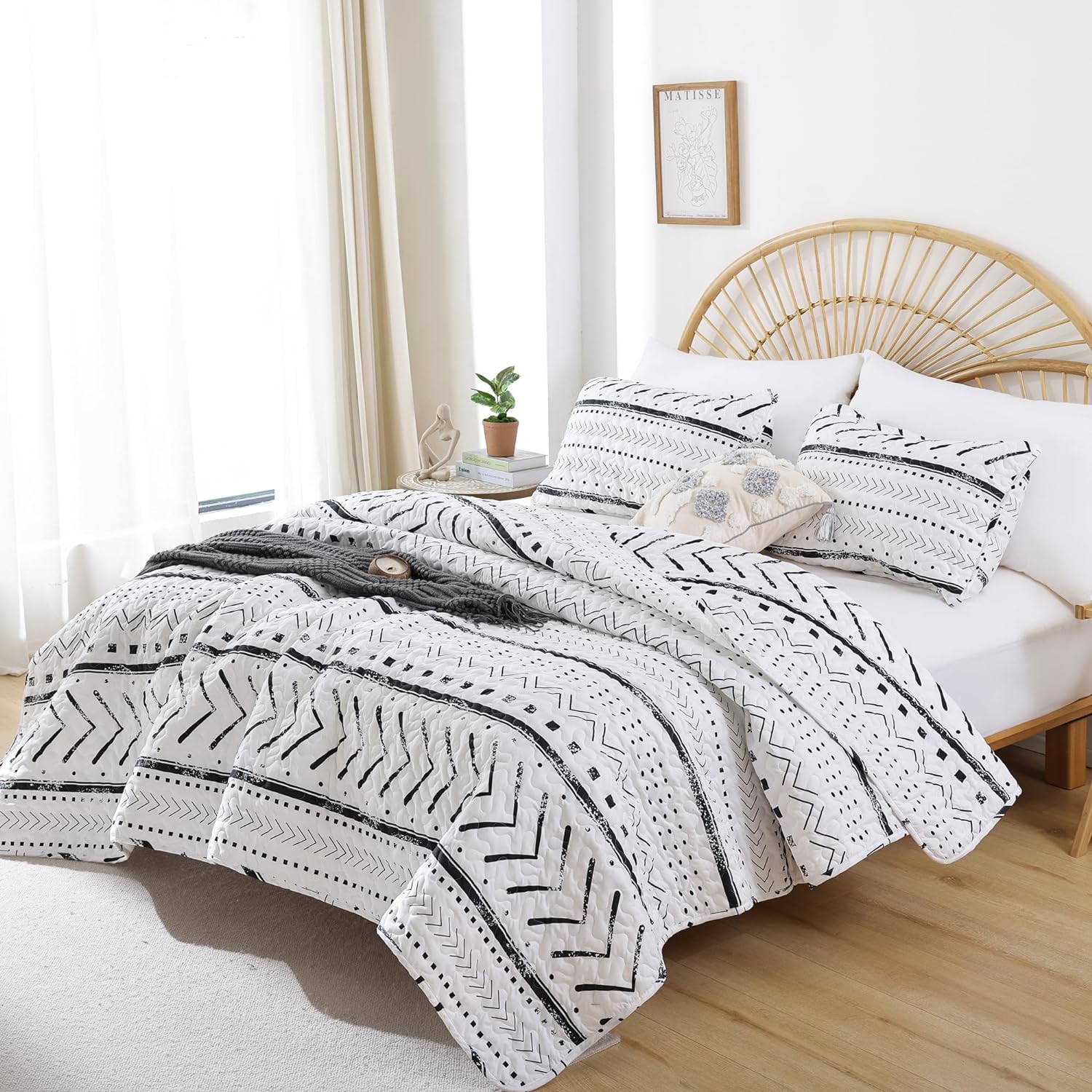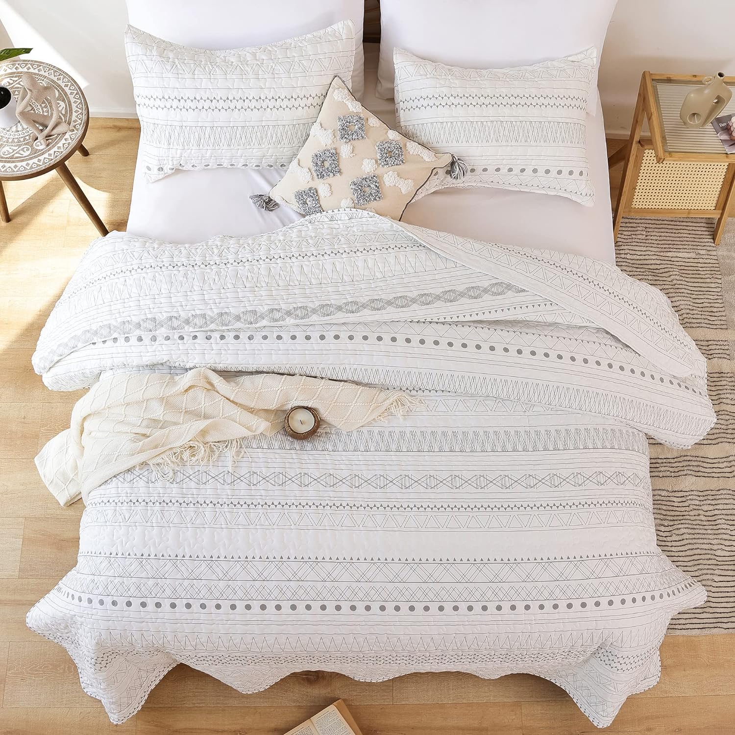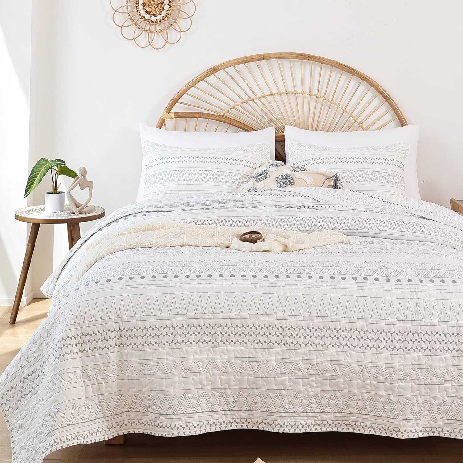 - UNIQUE PATTERN:The quilts queen size design with boho style featuring white geometric printed and multiple elements which perfectly blends fashion and abstract art,add an extra layer of modern style to match your room décor and brighten your rooms,perfect as a great gift idea for men and women at special festival.